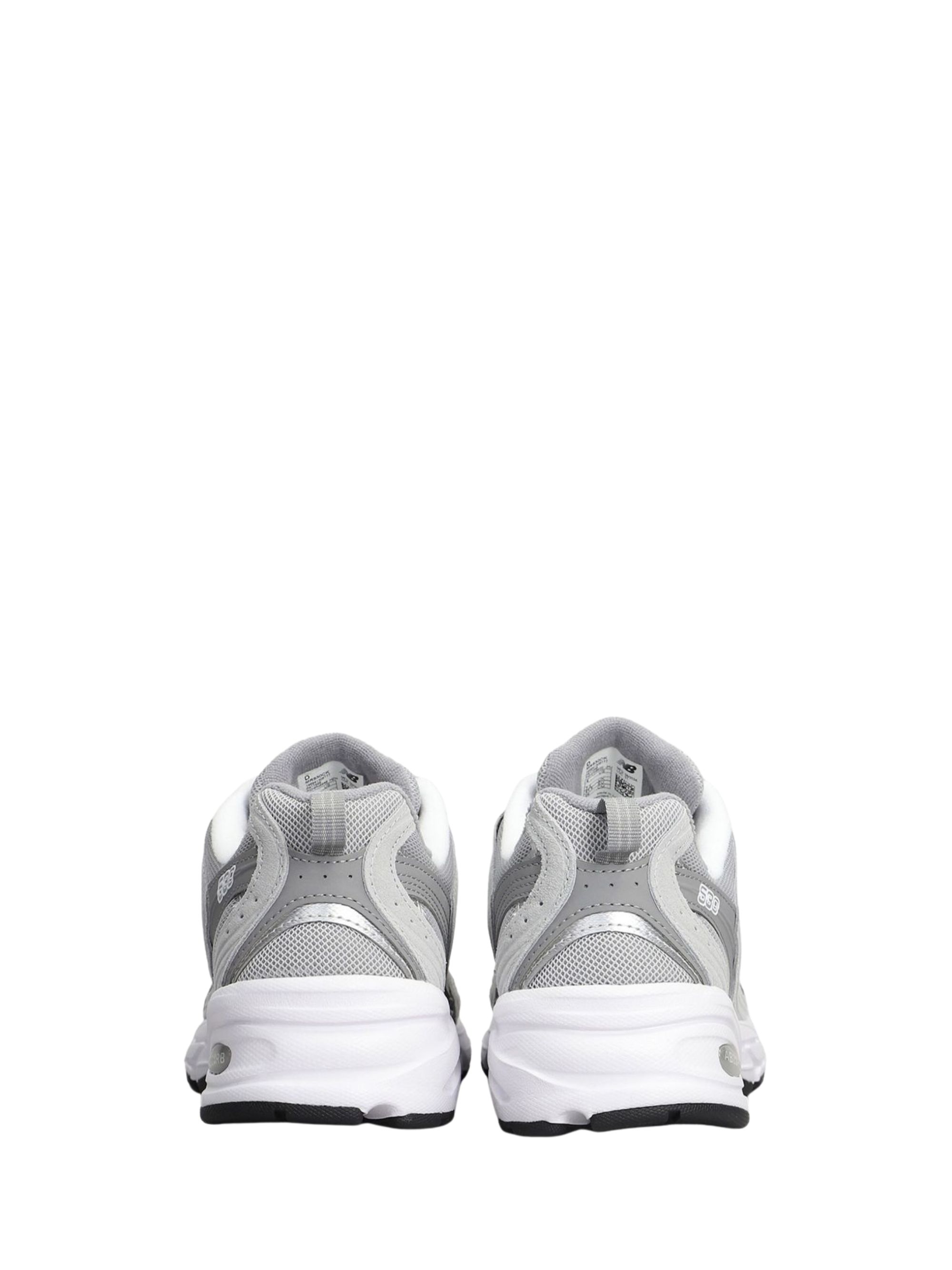 Sneaker 530 di NEW BALANCE grigia in mesh, caratterizzata da tacco ammortizzato, logo laterale, chiusura con lacci e suola in gomma.
