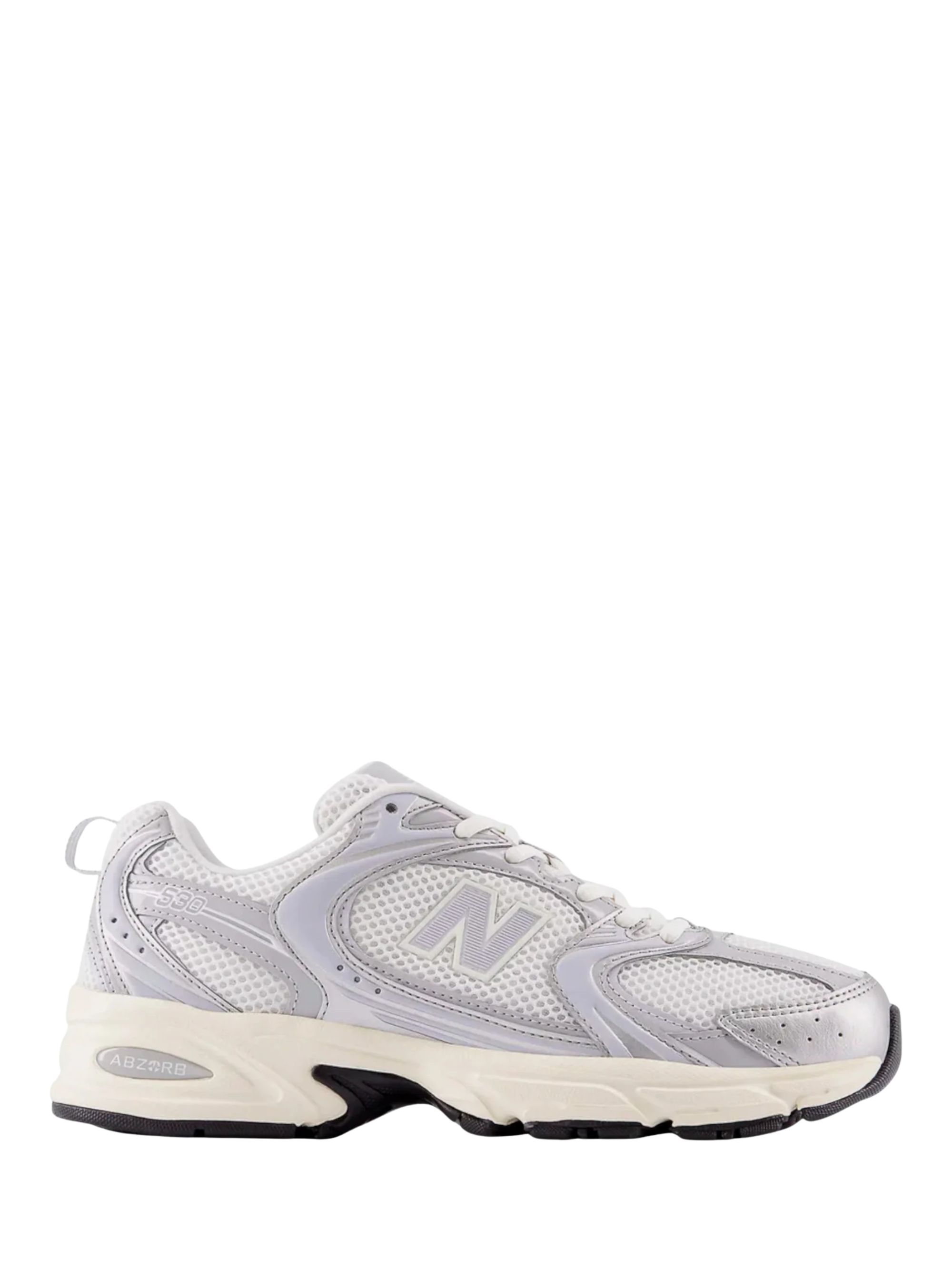 Sneaker 350 di NEW BALANCE grigia in mesh, caratterizzata da chiusura con lacci, punta tonda, intersuola ABZORB, tallone e linguetta logati, dettagli riflettenti e suola in gomma.