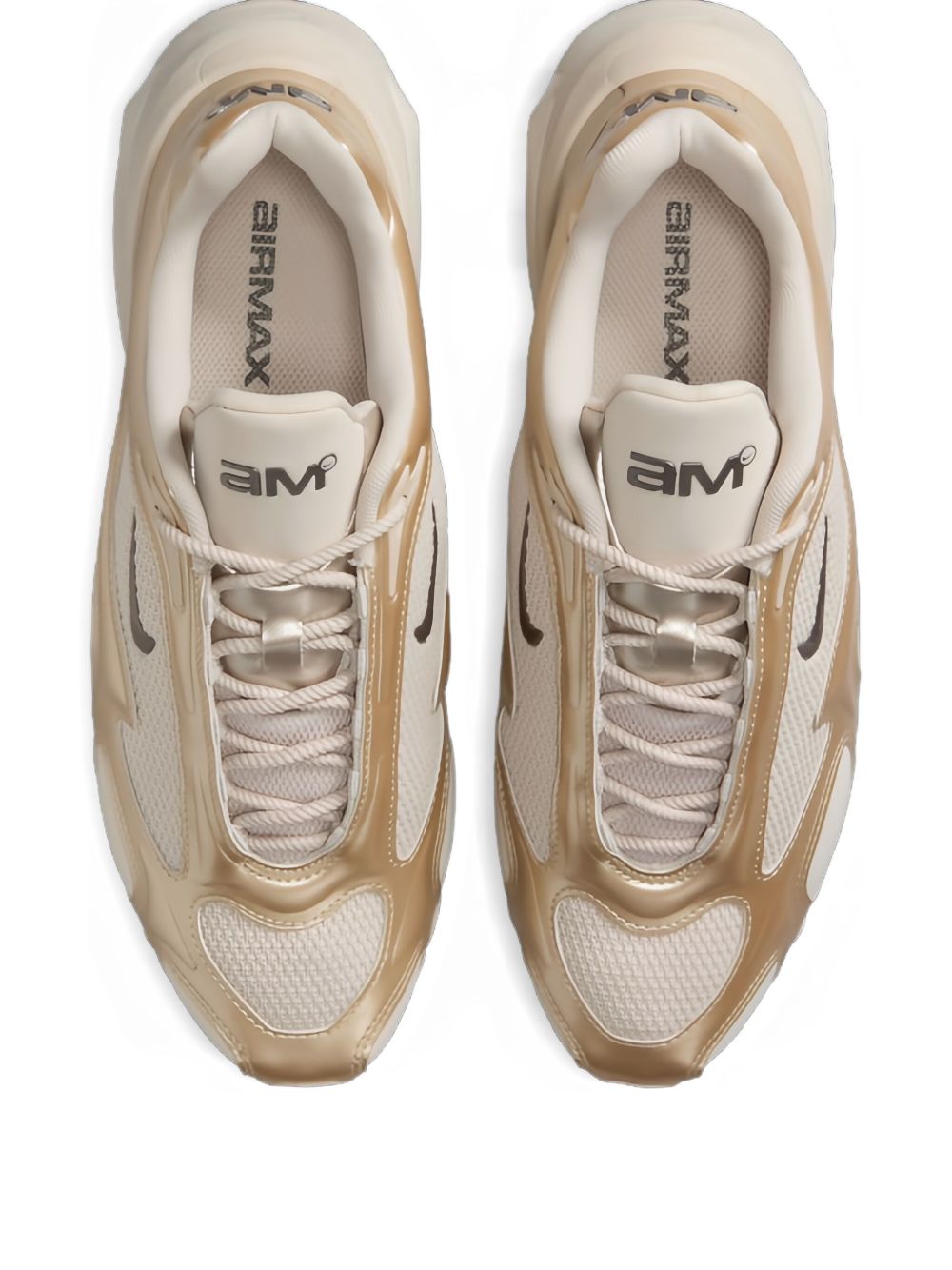 Sneaker Air Max Muse di NIKE beige metalizzato in pelle con inserti in rete bianca e suola chunky.