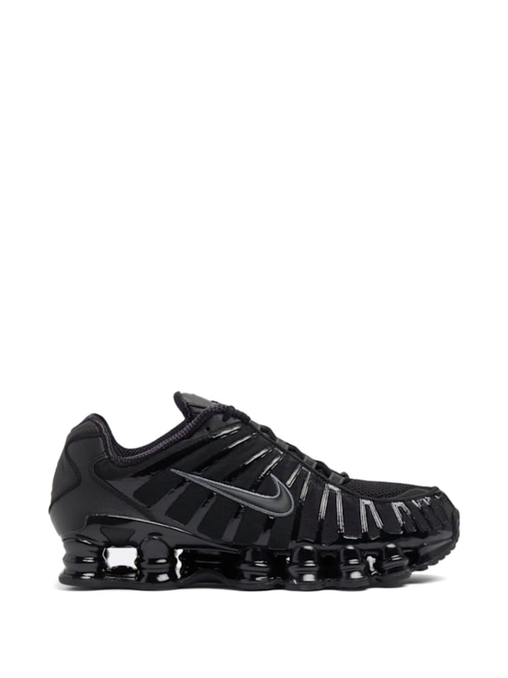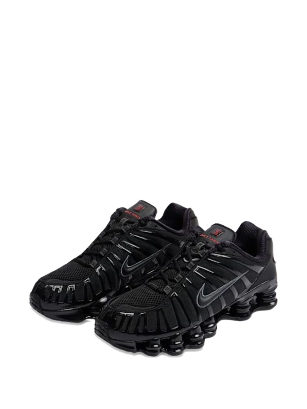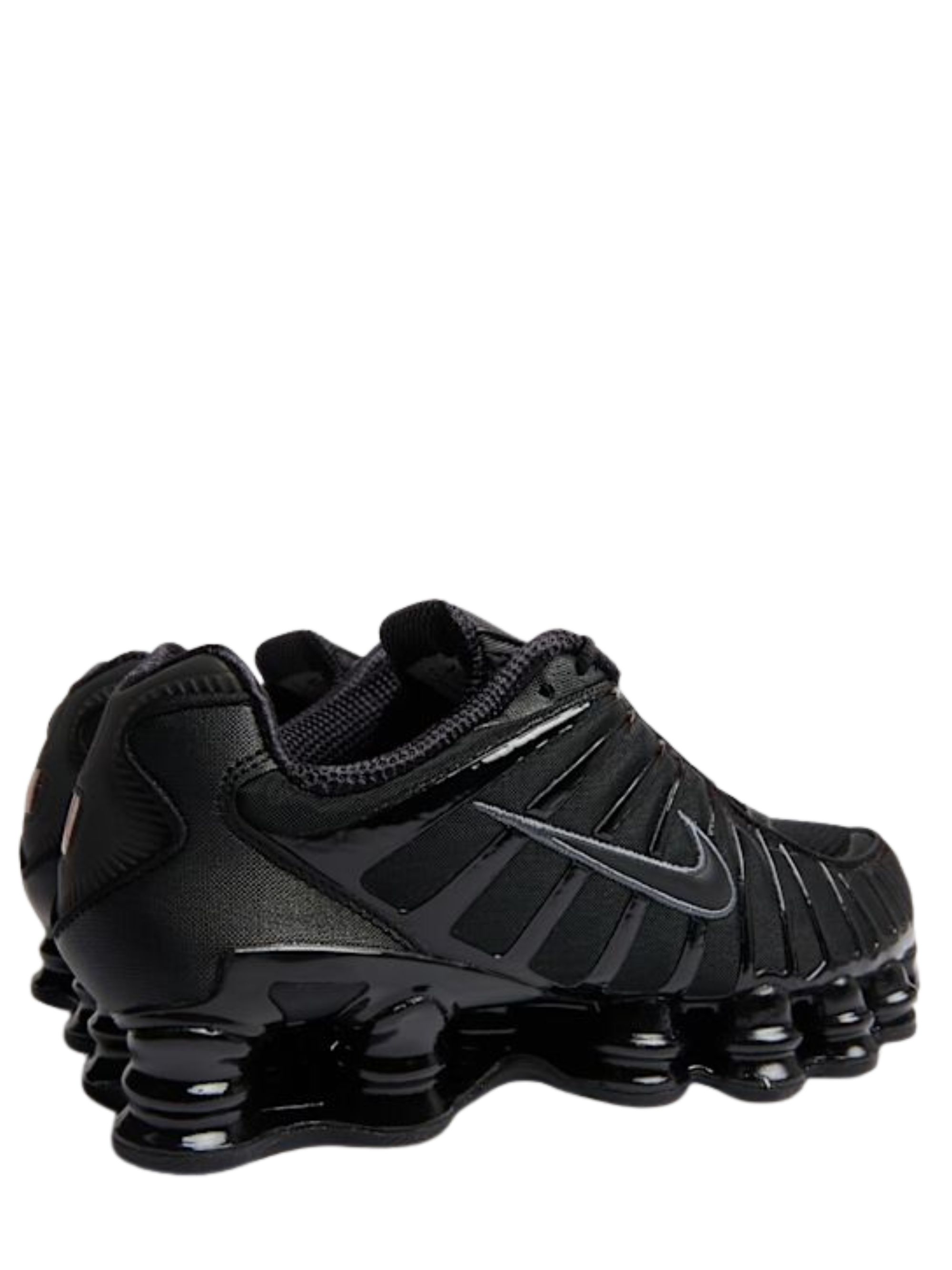 Sneaker Shox TL di NIKE nera in pelle, caratterizzata da suola ammortizzata, chiusura con lacci e logo laterale.