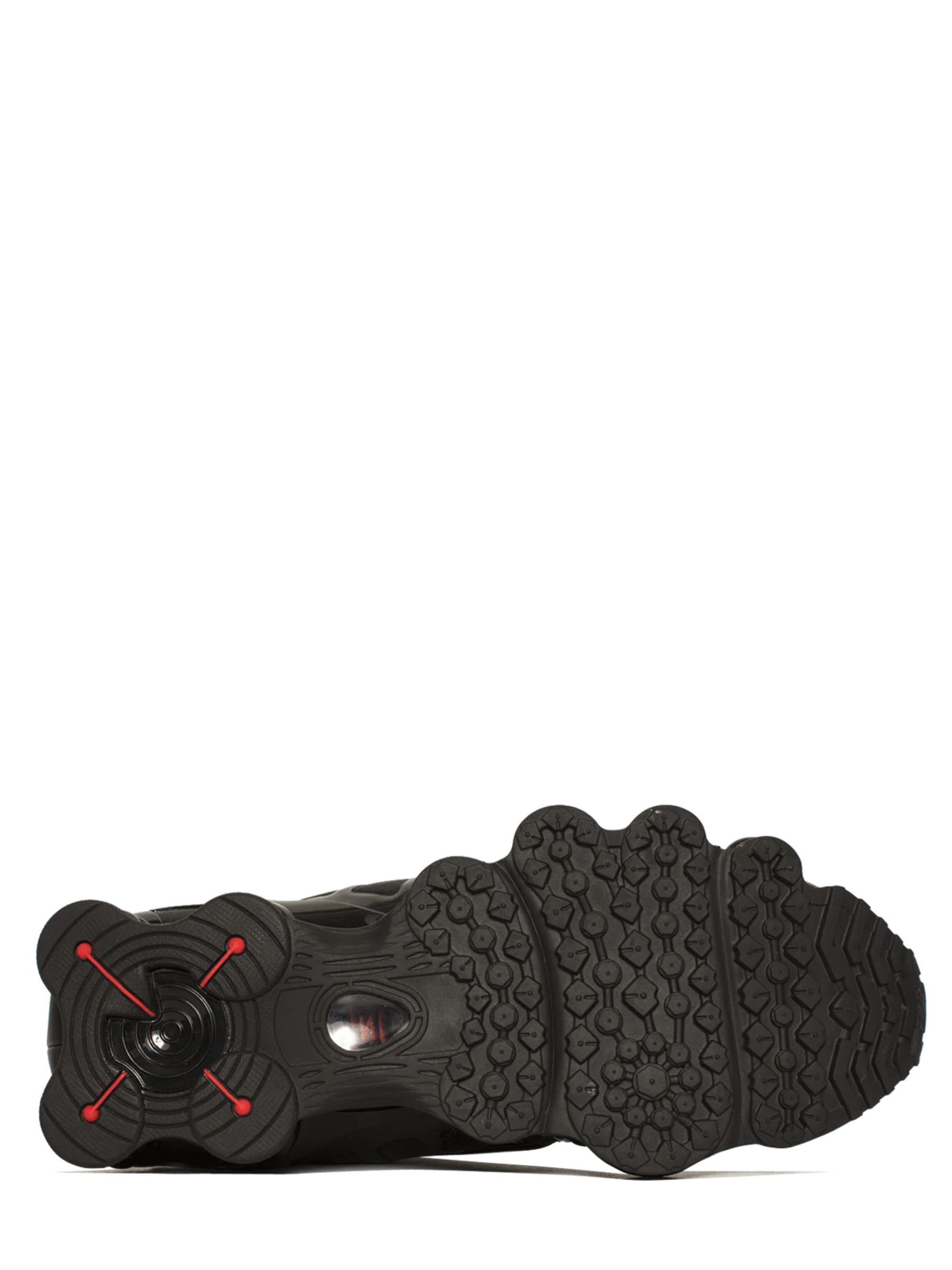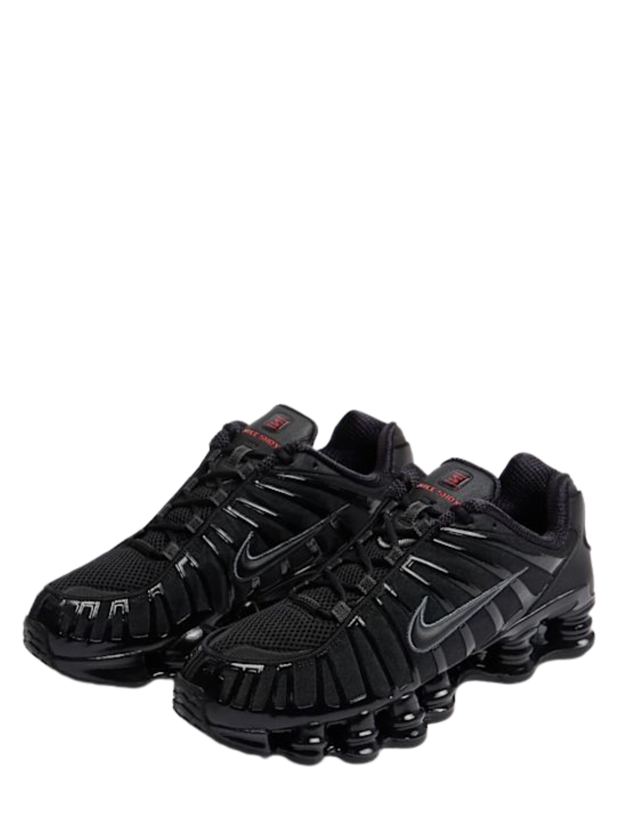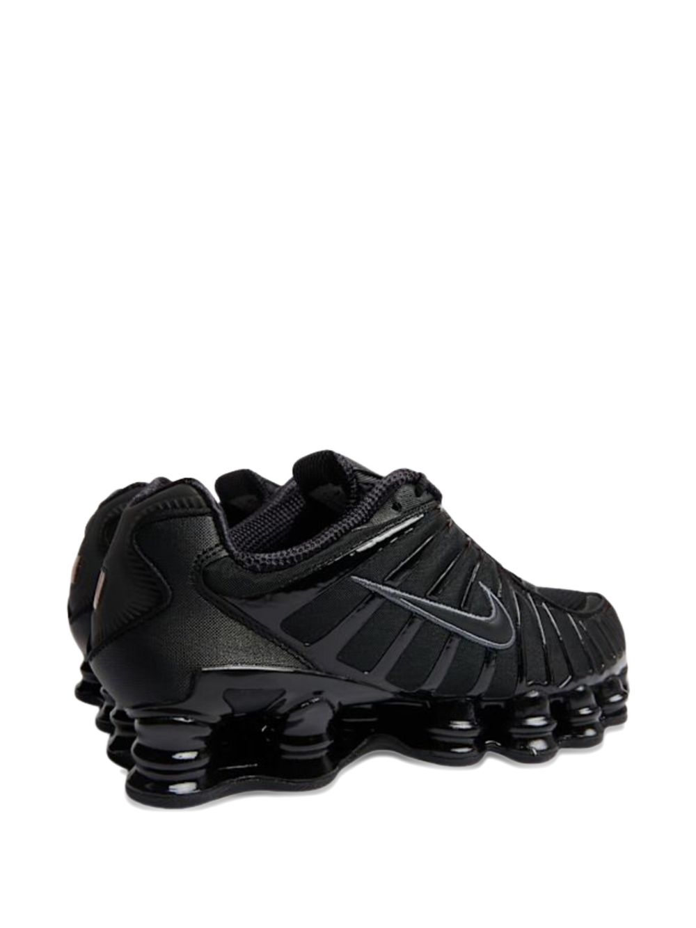 Sneaker Shox TL di NIKE nera in pelle, caratterizzata da suola ammortizzata, chiusura con lacci e logo laterale.