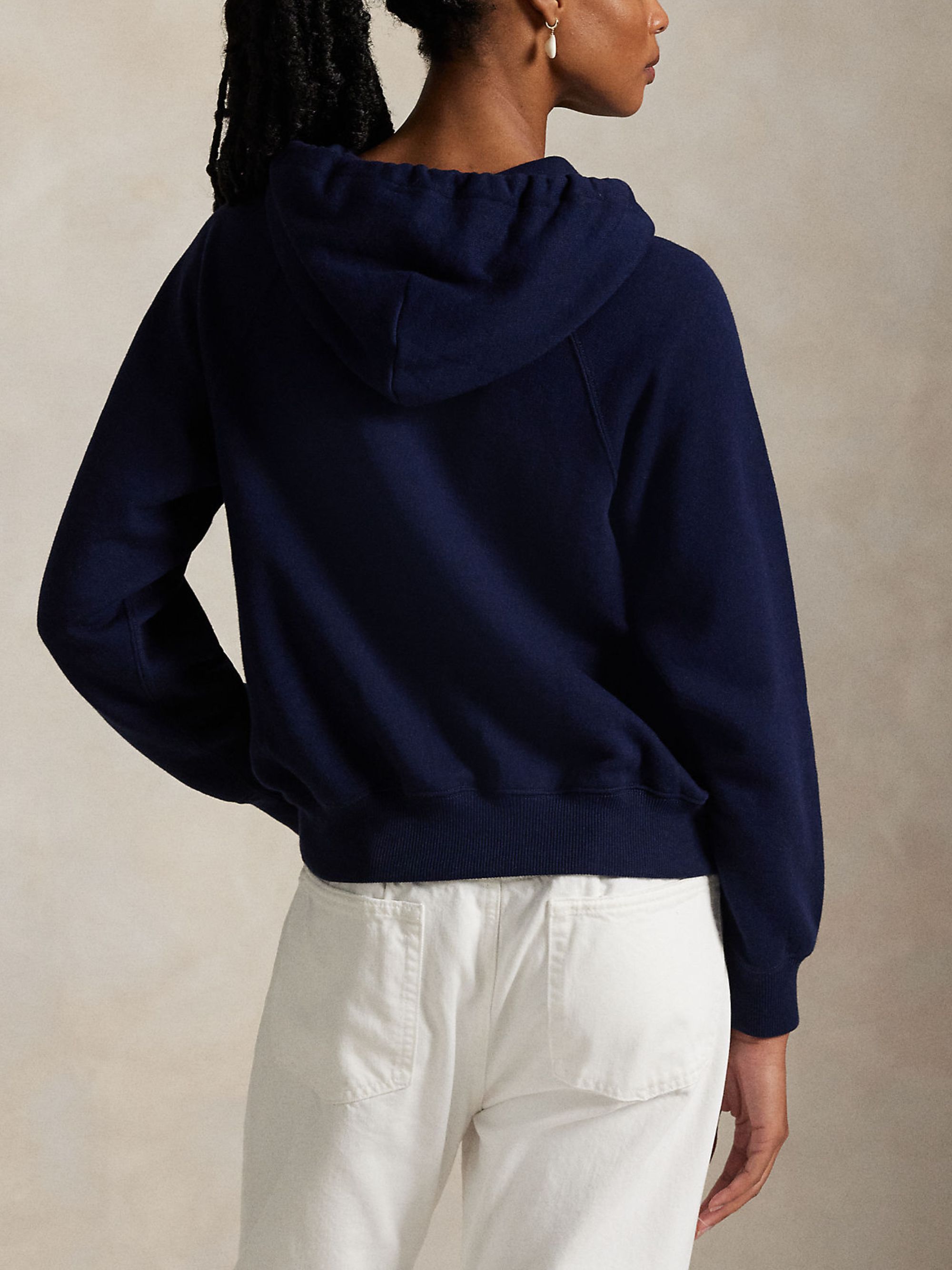 Felpa con logo di RALPH LAUREN blu in cotone, caratterizzata da cappuccio con coulisse, tasca a marsupio, finiture a coste e logo.