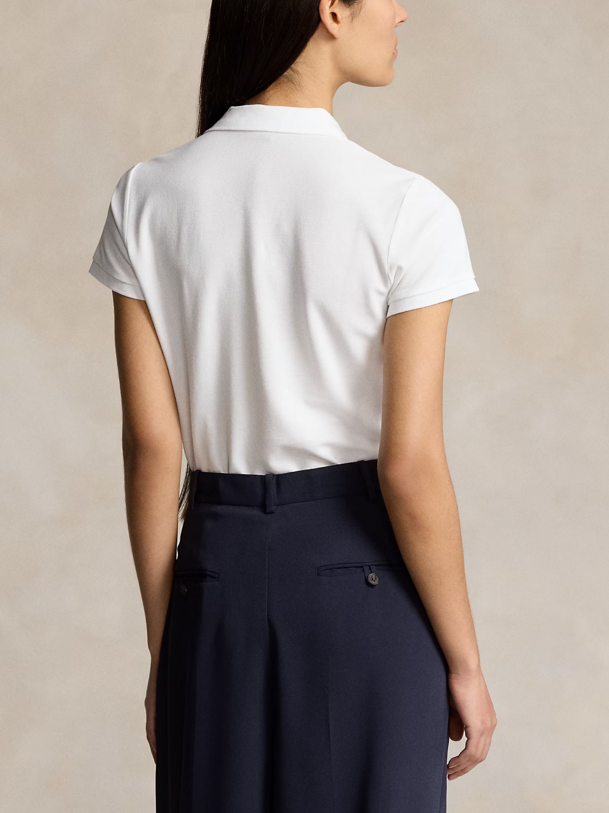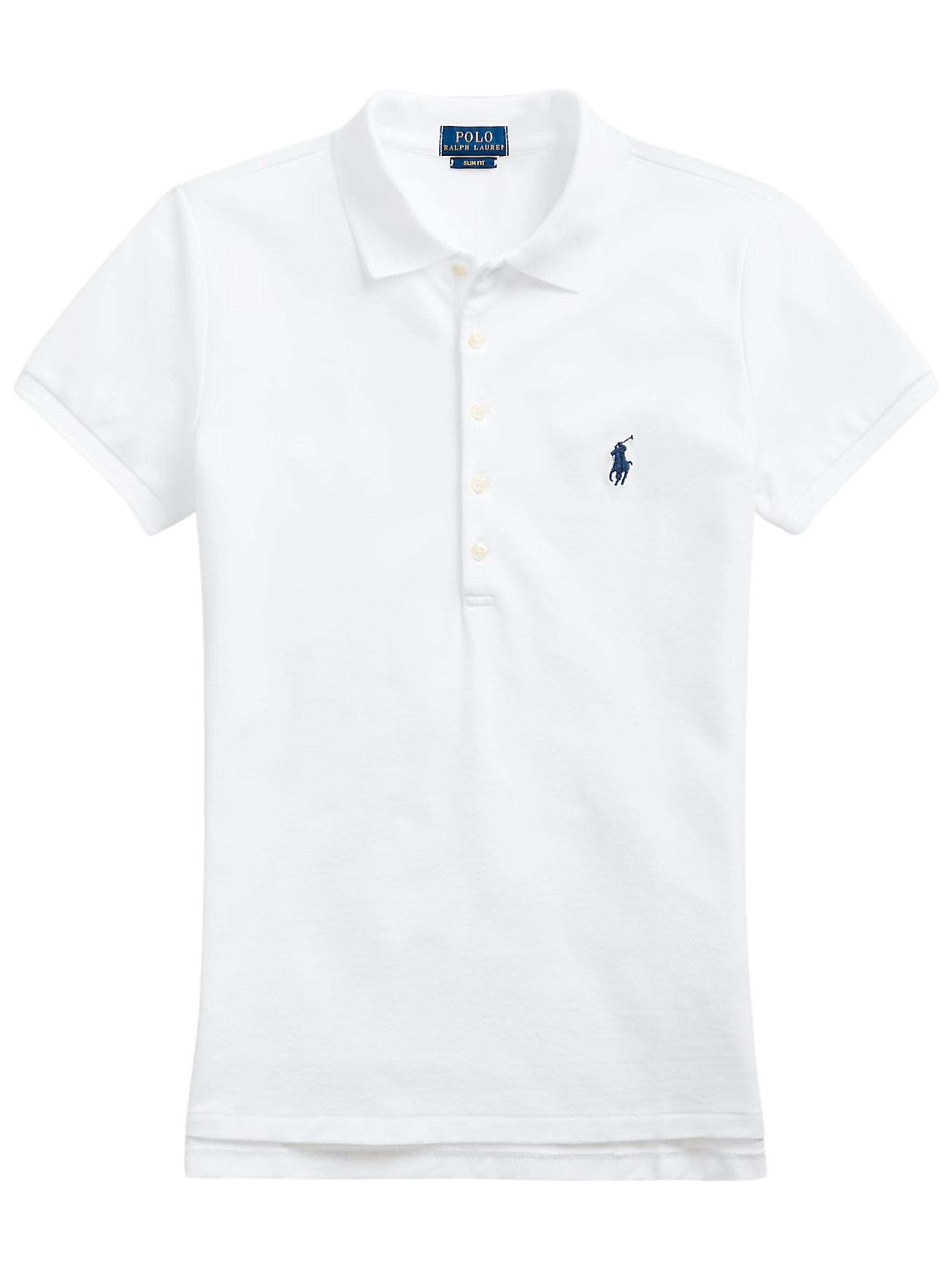 Polo Slim Fit di RALPH LAUREN bianca in cotone, caratterizzata da colletto classico, maniche corte, chiusura con bottoni e logo a contrasto.