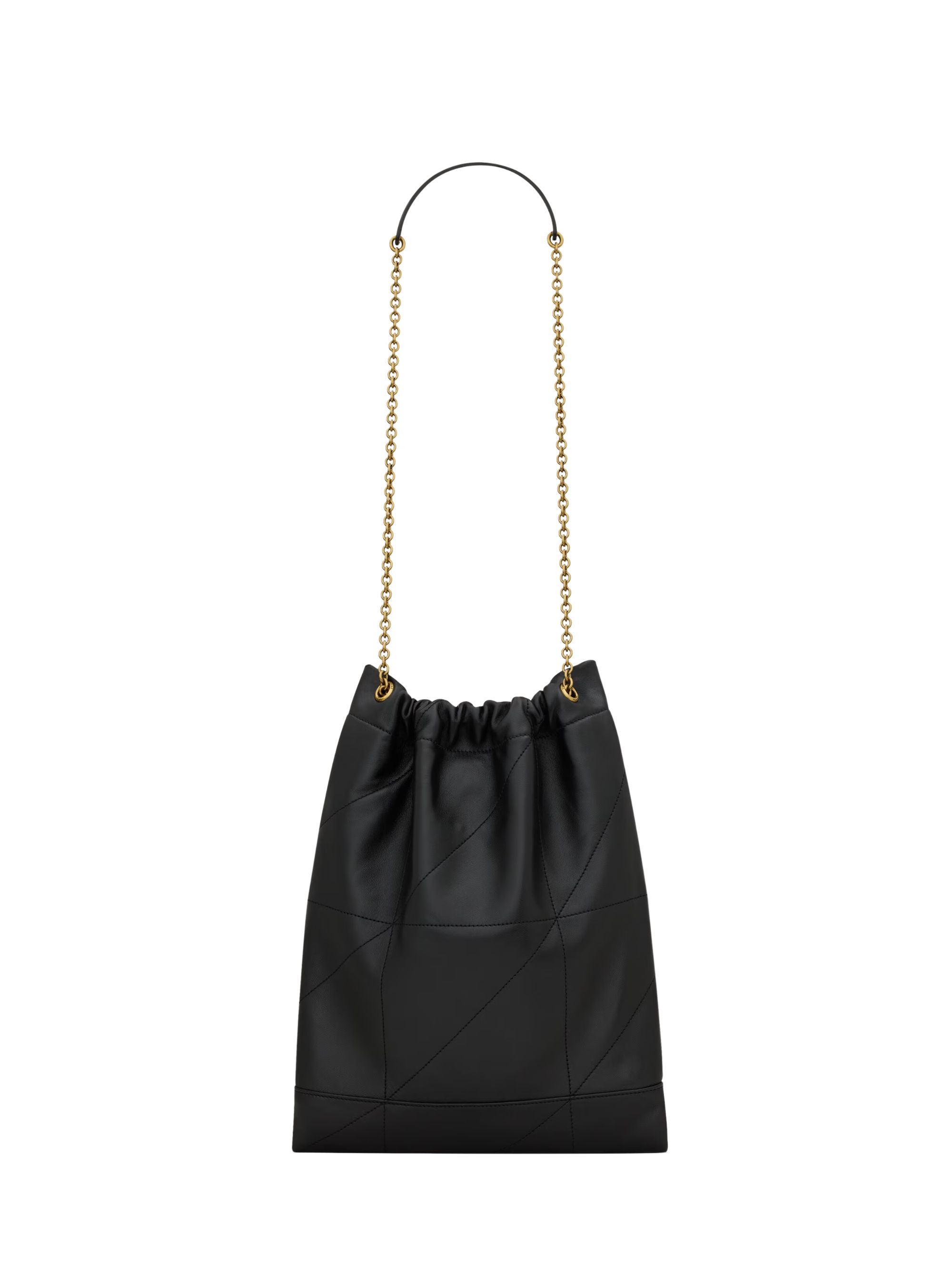 Borsa Jamie Pochon di SAINT LAURENT nera in pelle, caratterizzata da hardware bronzo, chiusura magnetica, catena con coulisse e logo. Dimesnioni: 27 x 34 x 3 CM.