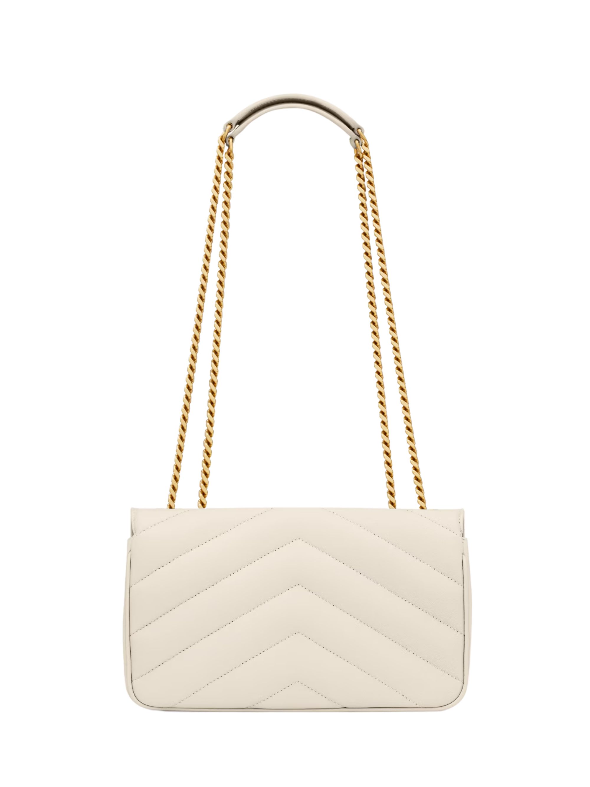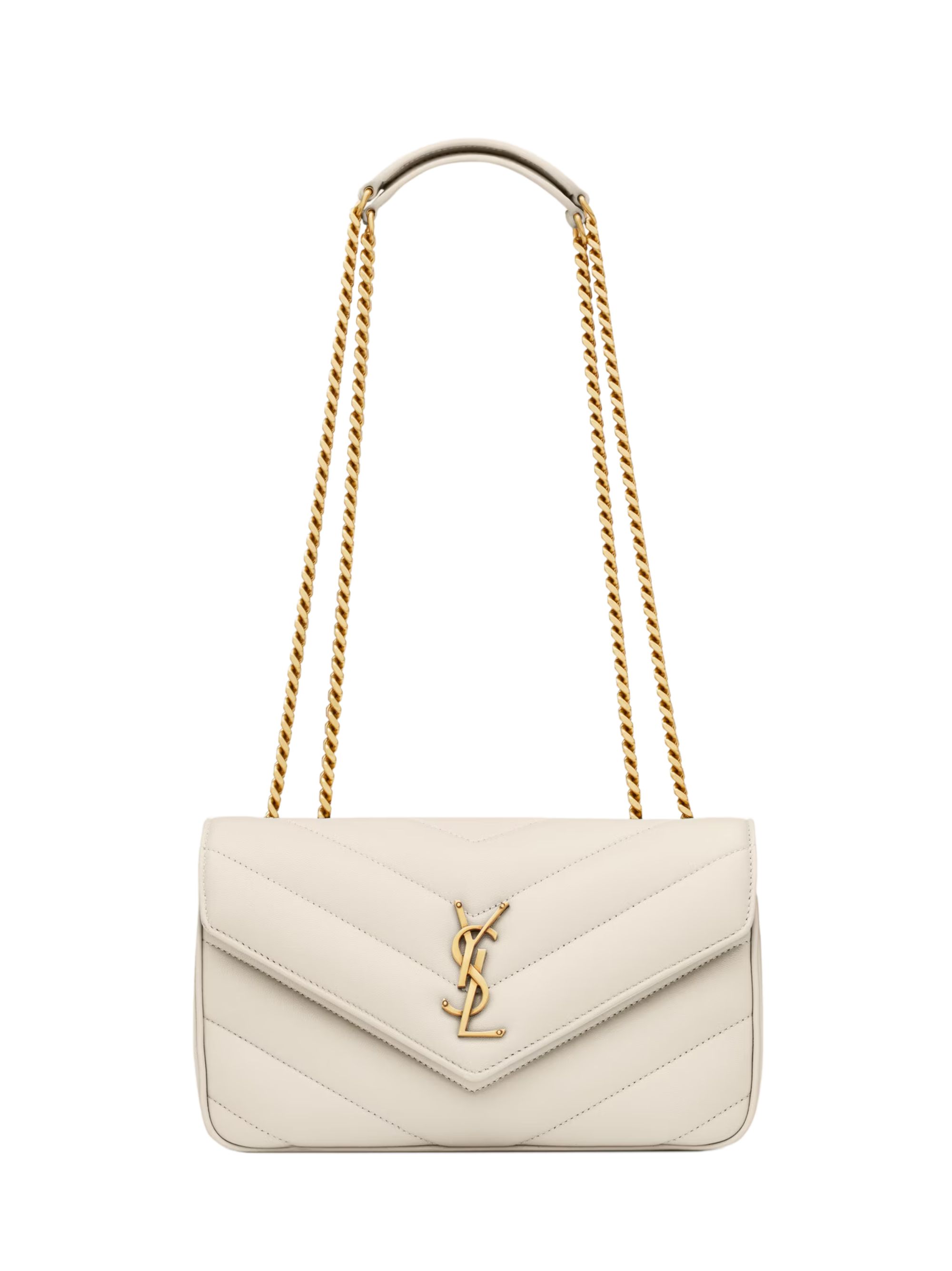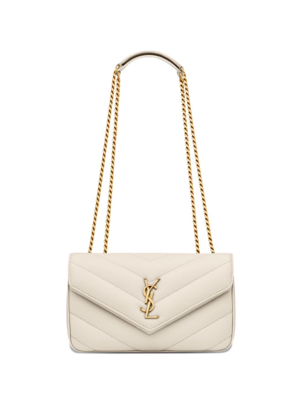 Borsa LouLou di SAINT LAURENT bianca in pelle trapuntata, caratterizzata da hardware in bronzo, chiusura magnetica, tracolla a catena scorrebole, fodera in cotone e logo YSL. Dimensioni: 24 x 14 x 6 CM.