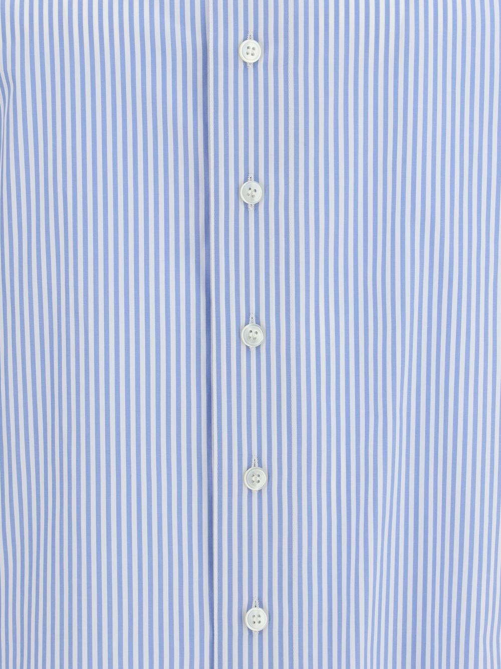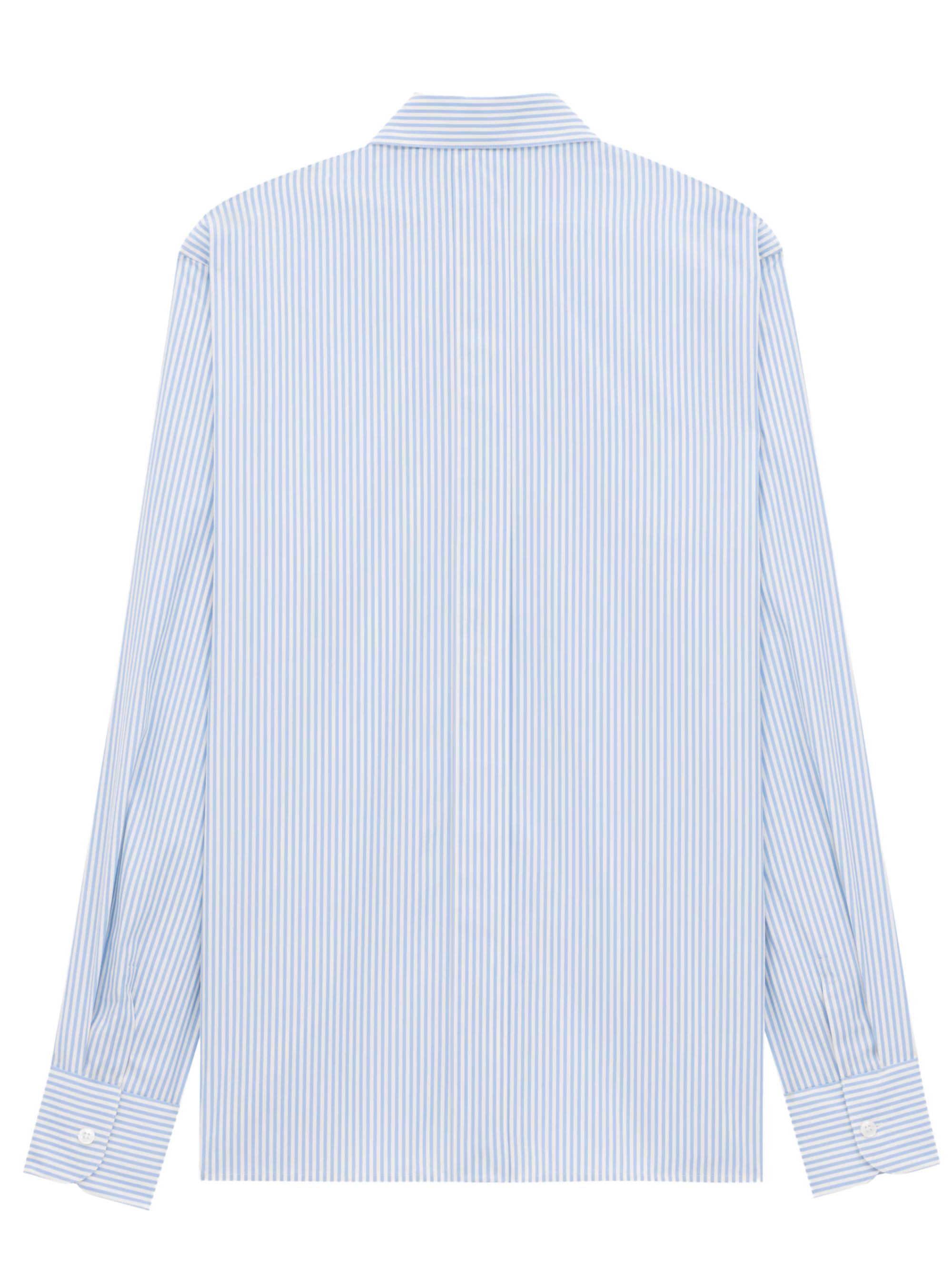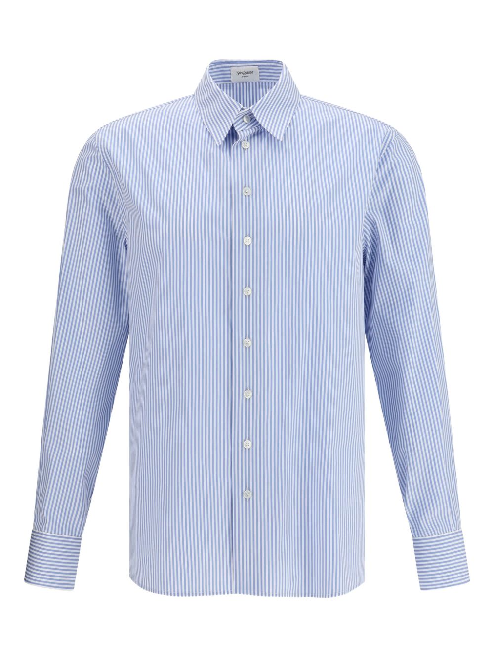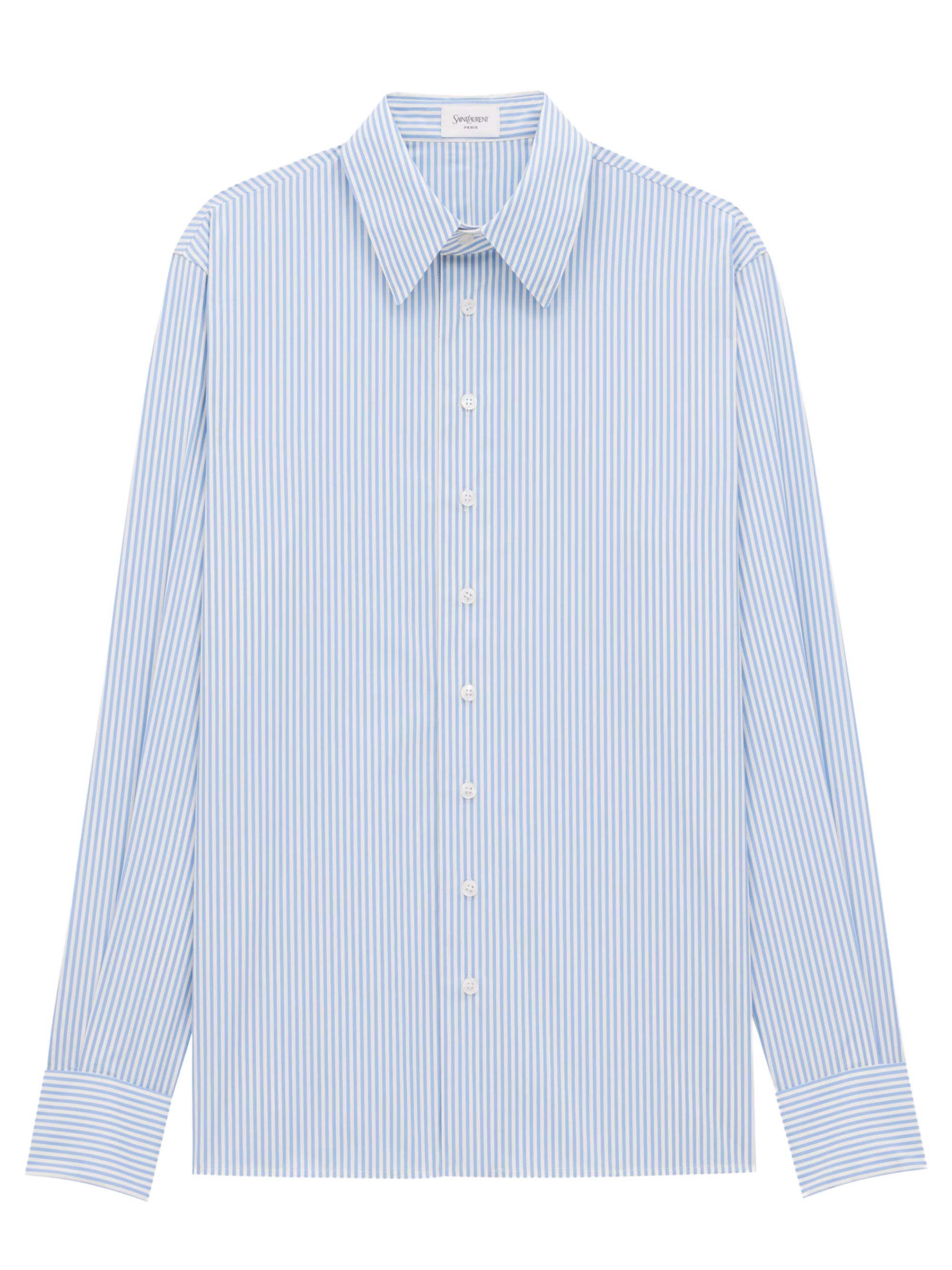 Camicia Oxford di SAINT LAURENT a righe blu e bianca in cotone con colletto a punta, spalle dritte e chiusura con bottoni.