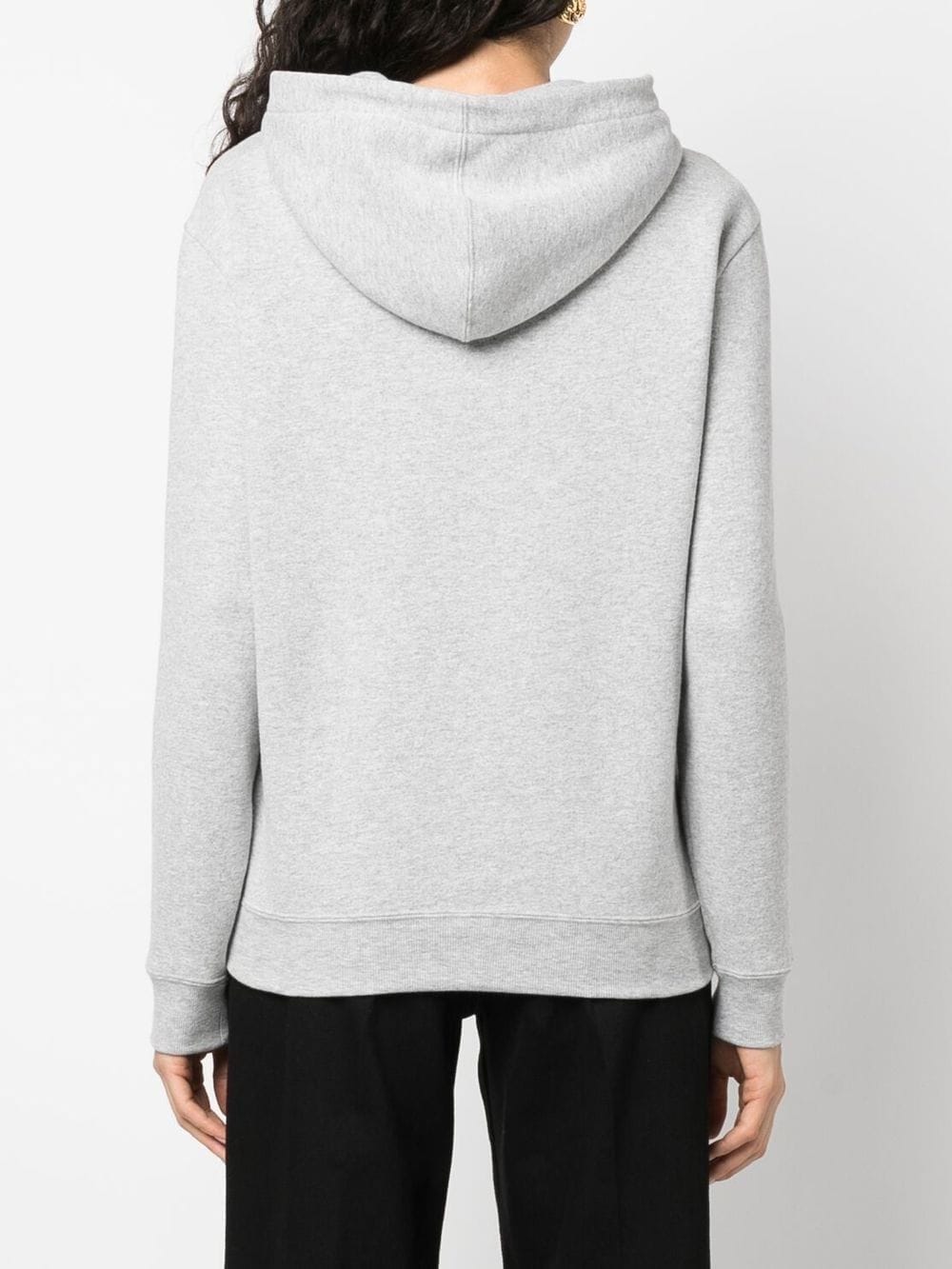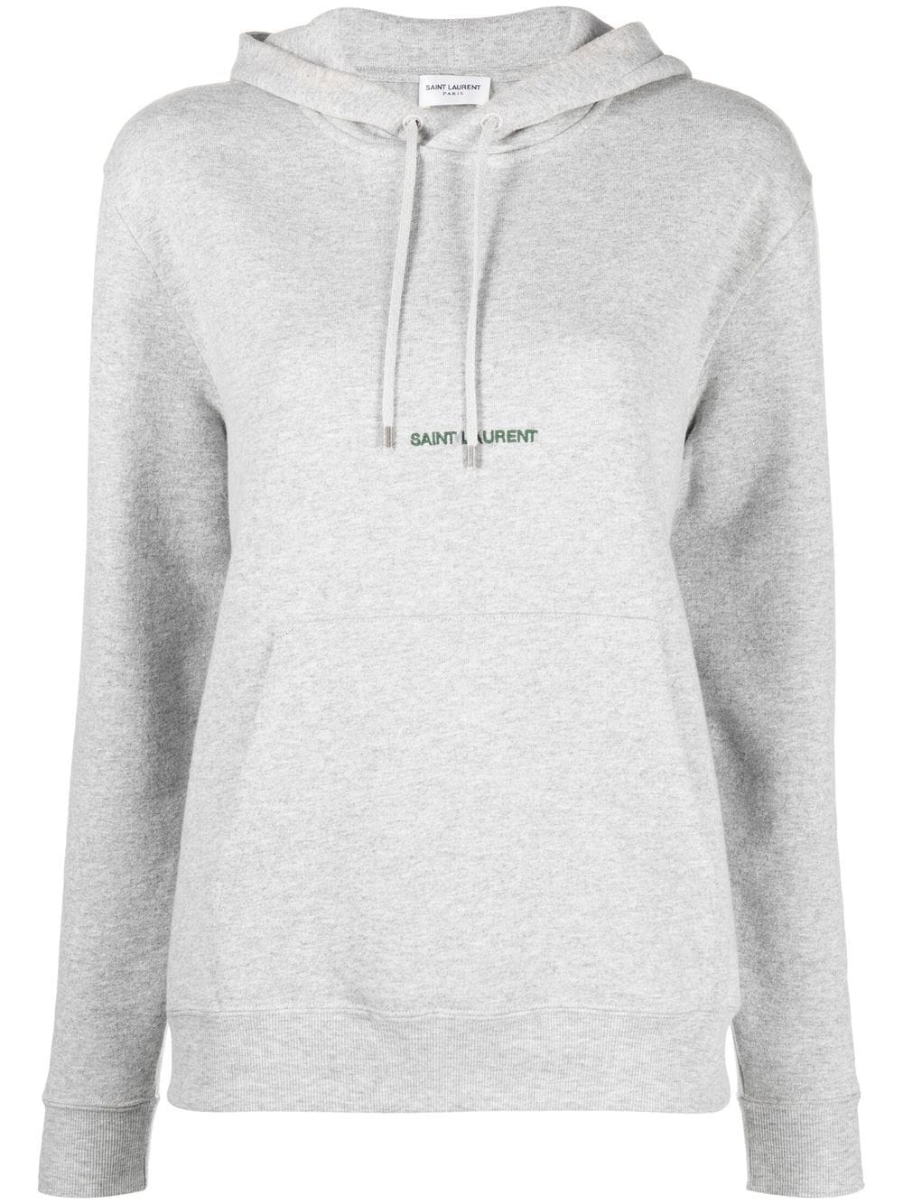 Felpa con logo di SAINT LAURENT colore grigio, in cotone, caratterizzata da logo frontale, cappuccio con coulisse, tasca frontale a marsupio, polsini a coste, maniche lunghe orlo dritto.