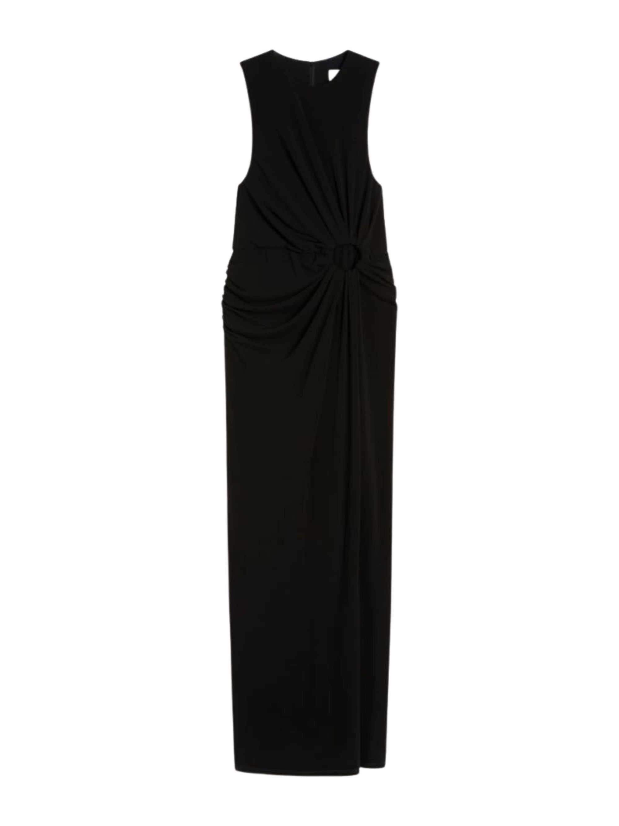 Abito lungo nero di SPORTMAX caratterizzato da drappeggio in vita con cut out, smanicato, girocollo, senza maniche e con spacco laterale.