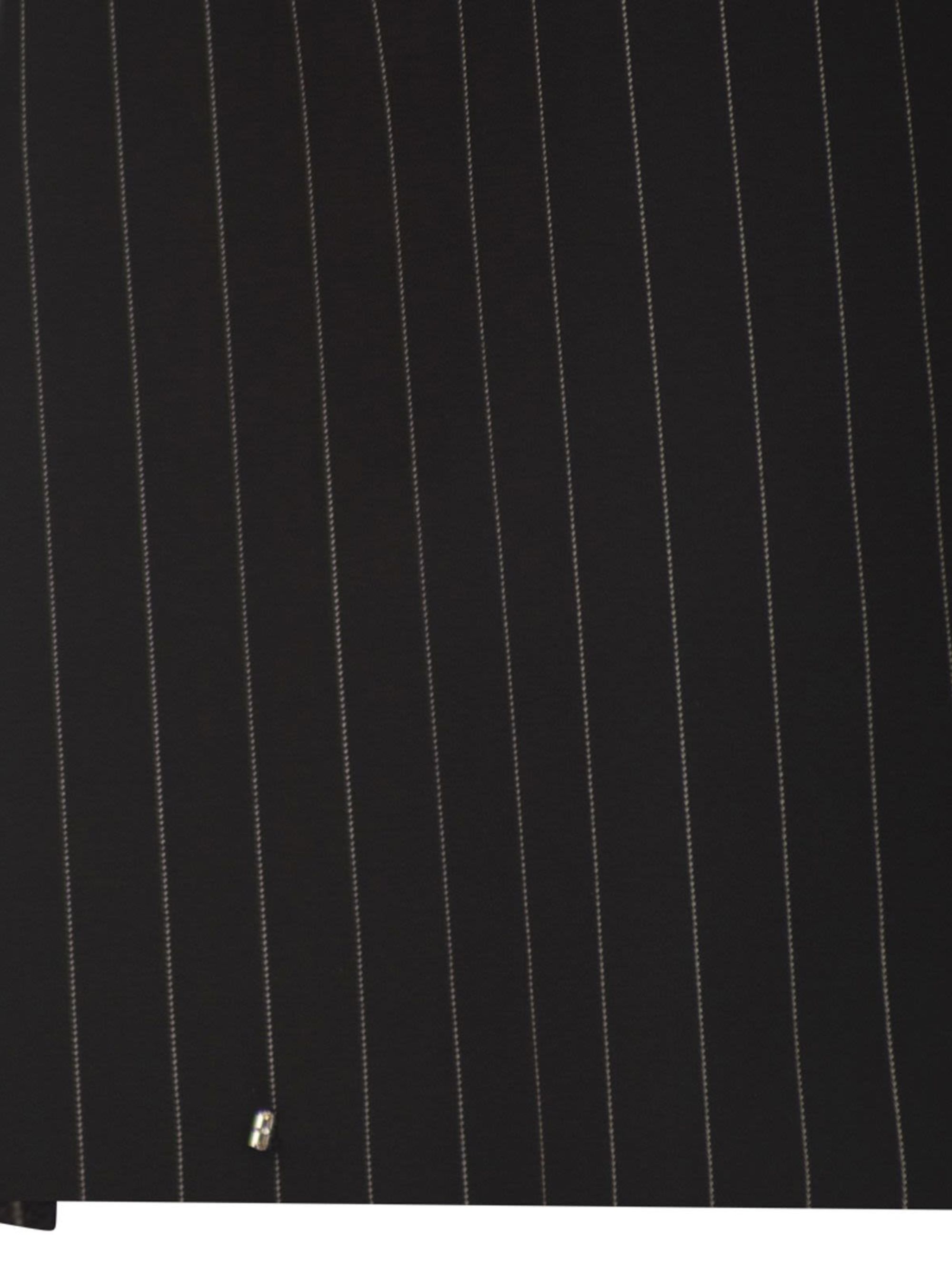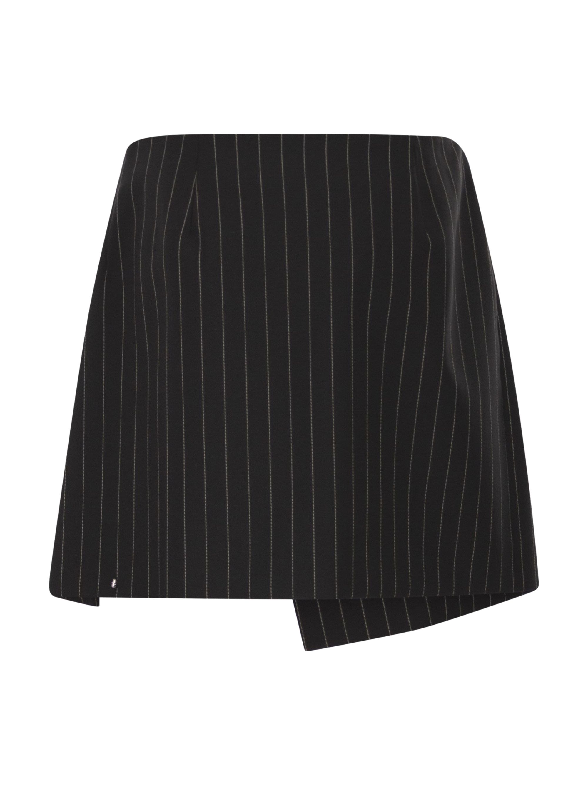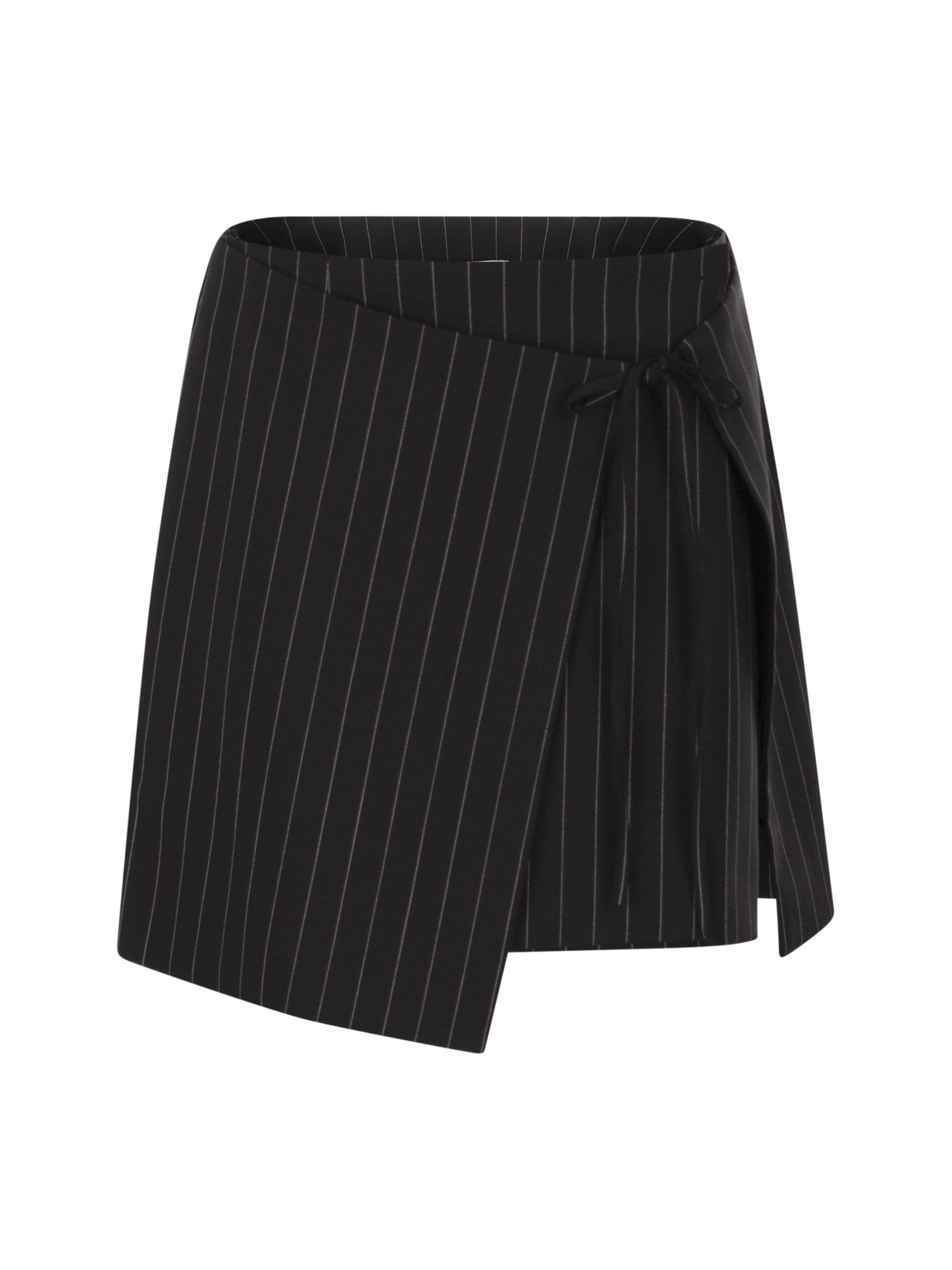Mini gonna nera di SPORTMAX caratterizzata dal motivo gessato, costruzione a doppio portafoglio con vita bassa, chiusura con bottoni automatici e lacci sul davanti.