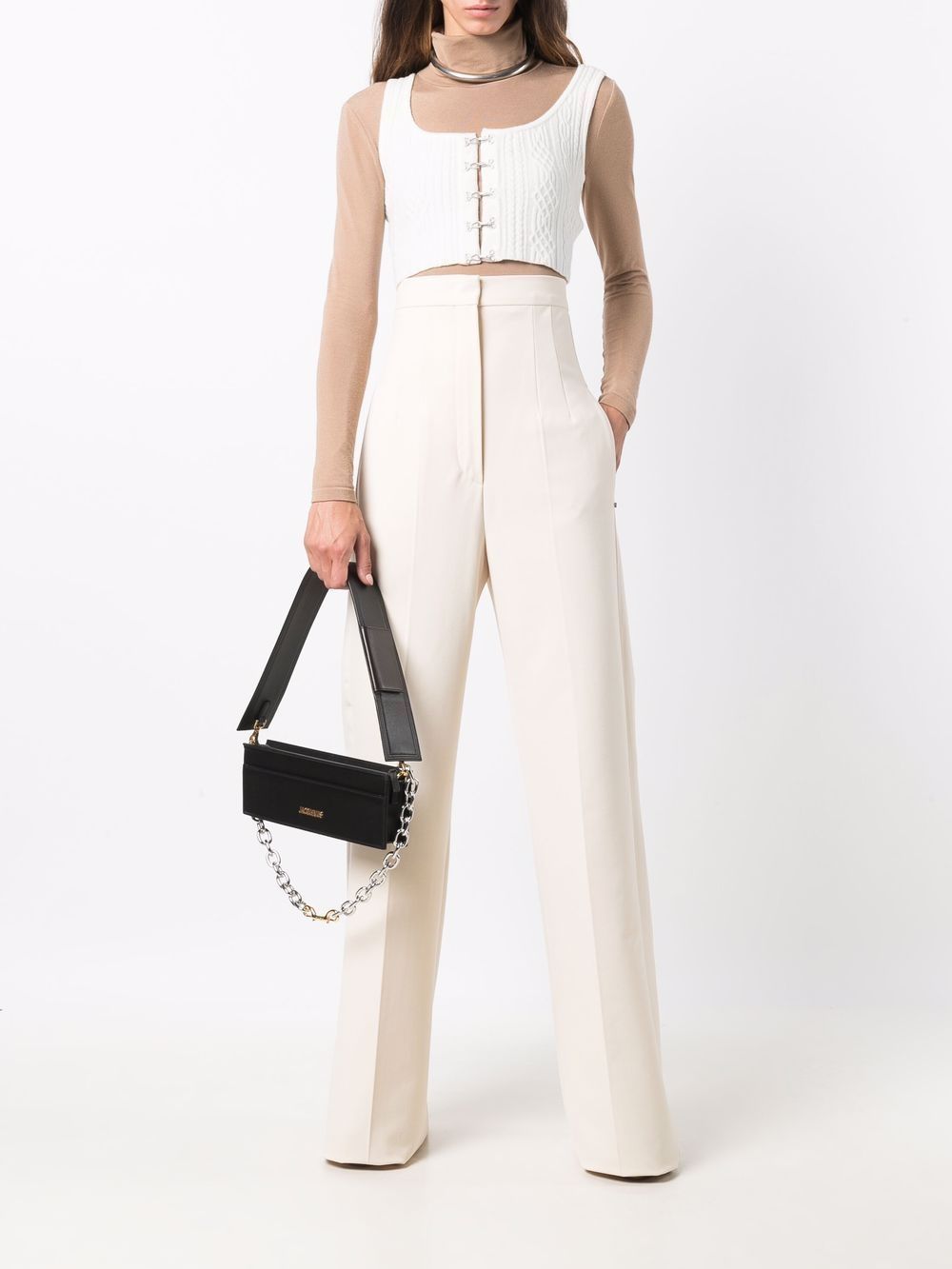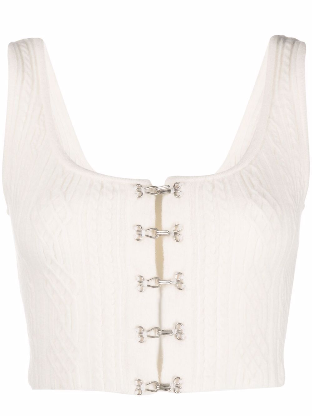 Top in misto lana di SPORTMAX colore bianco, caratterizzato da scollo a u, chiusura con ganci frontali e occhielli.
