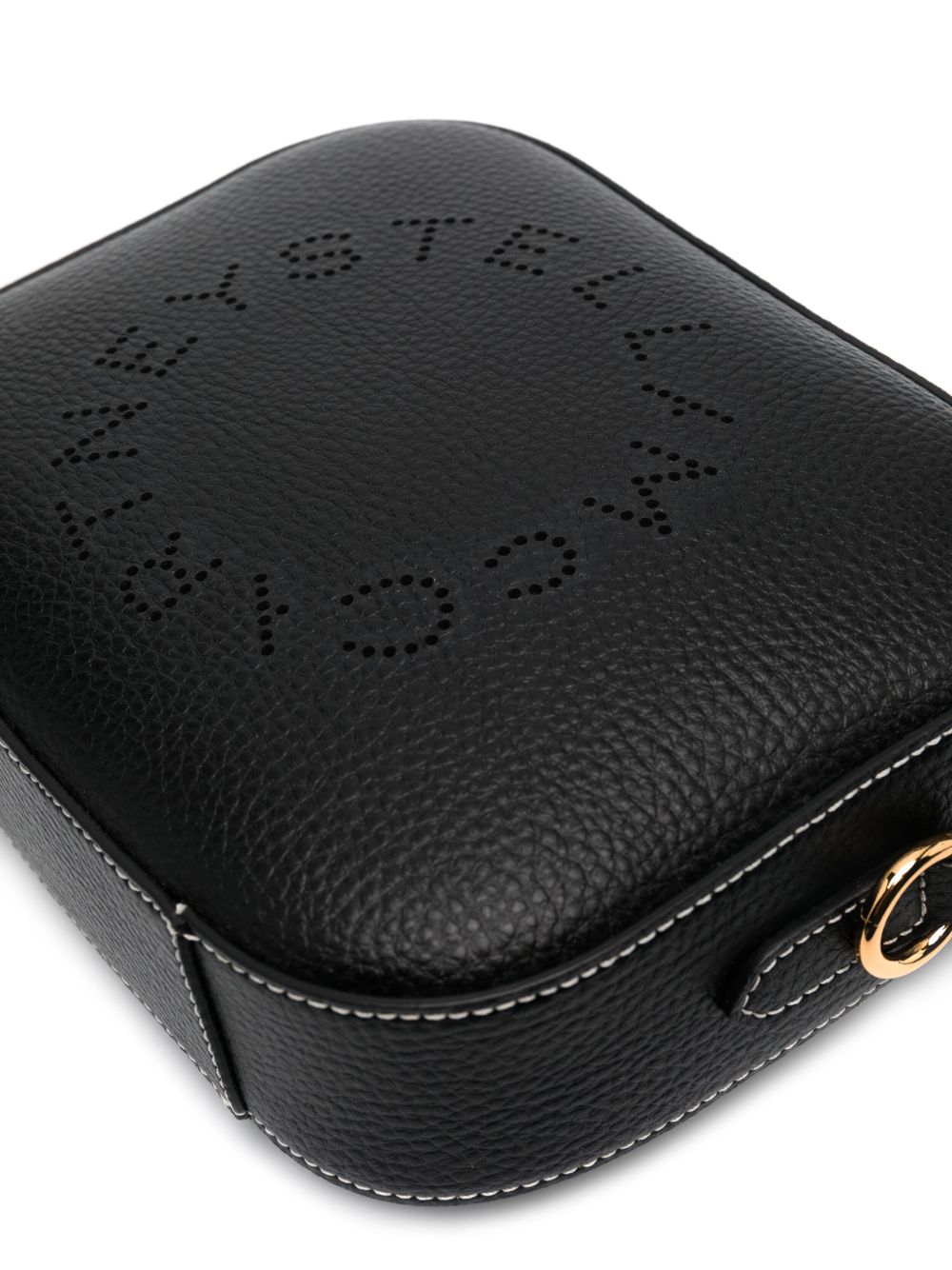 Borsa Camera di STELLA MCCARTNEY nera in ecopelle con tracolla in tessuto, logo marchiato e chiusura con zip.