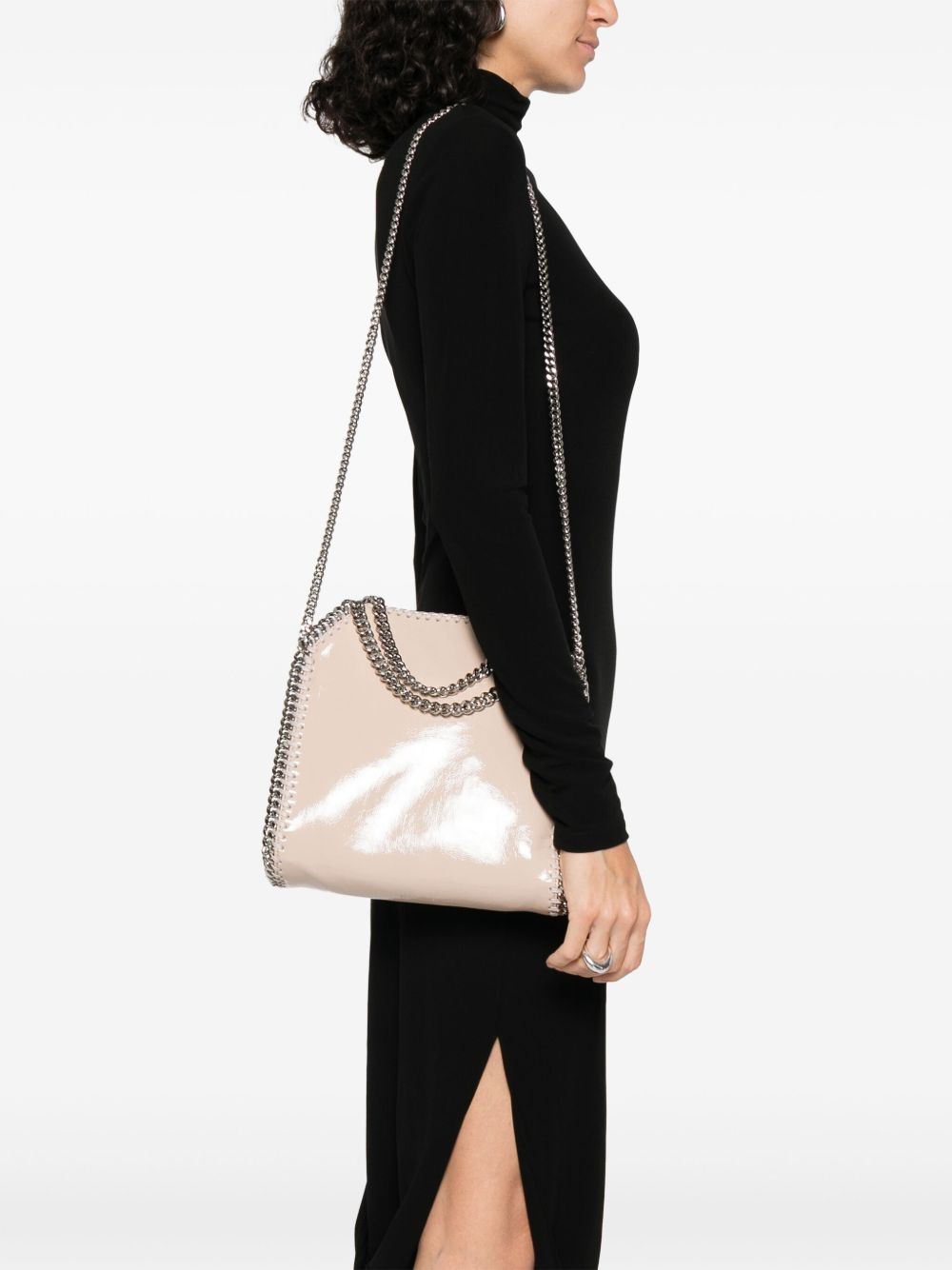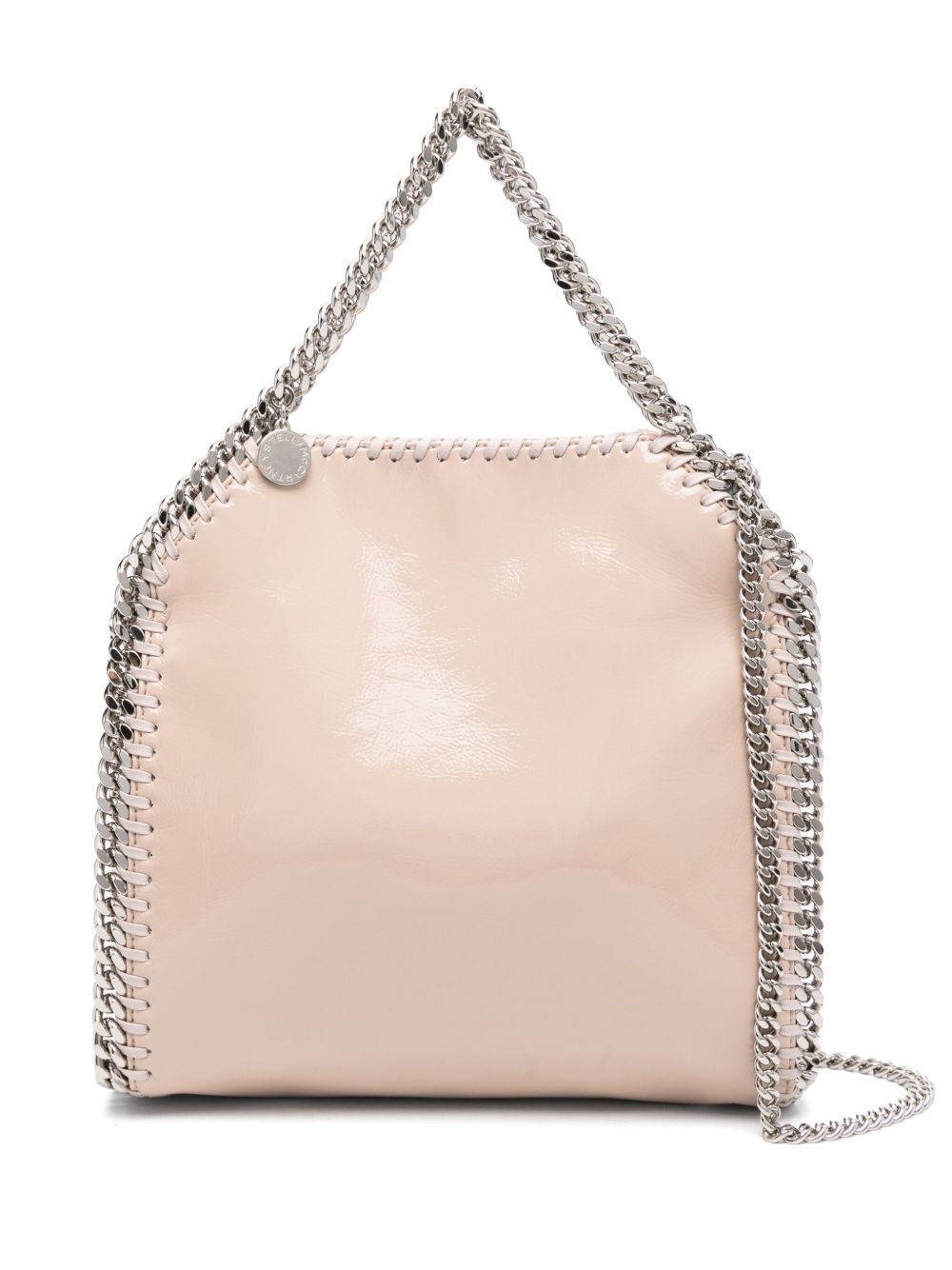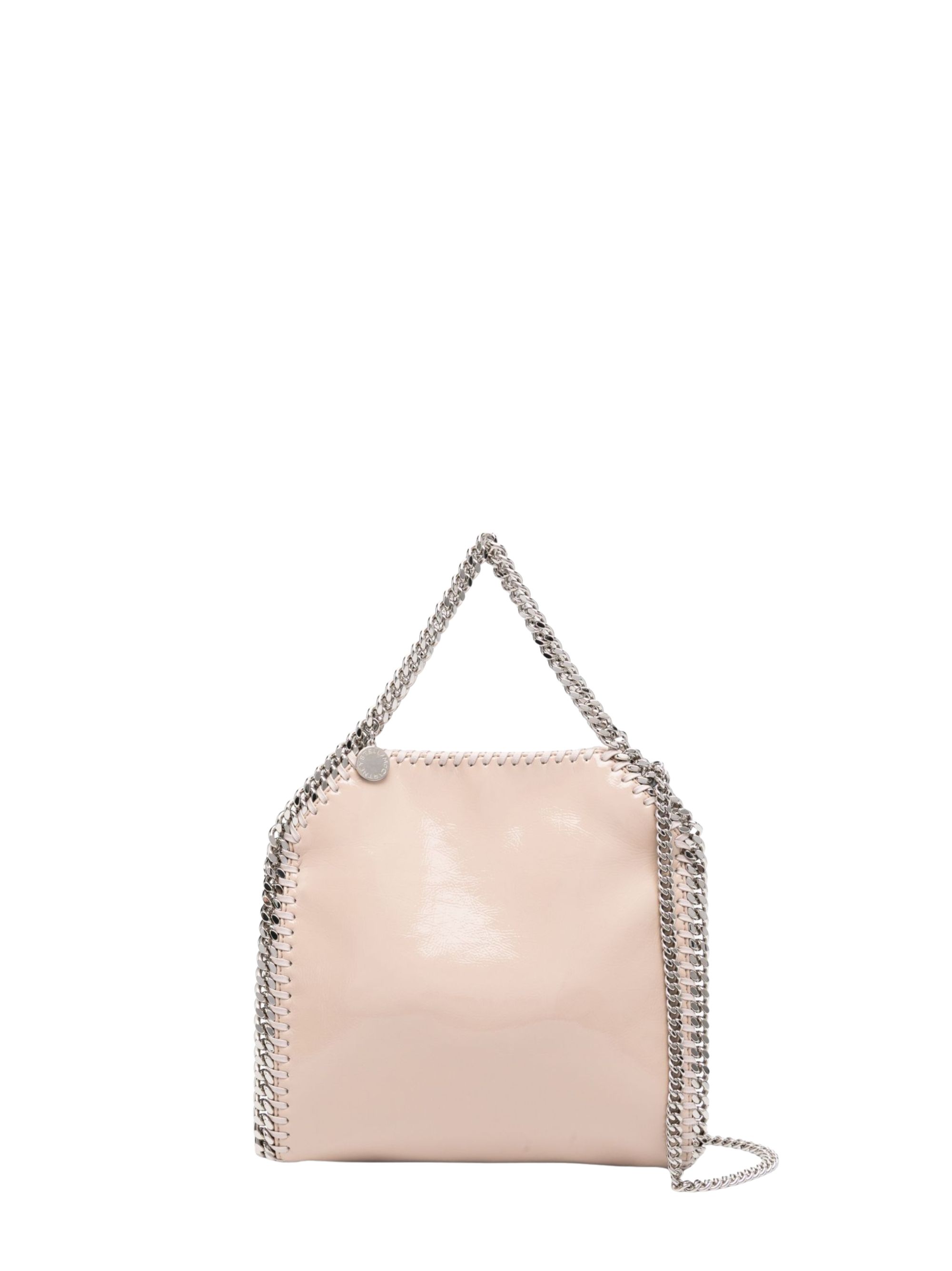Borsa Falabella di STELLA MCCARTNEY beige con catena in ottone riciclato e alluminio riciclabile con taglio a diamante, allacciatura in cotone biologico cerato, una maniglia superiore e una tracolla, uno scomparto principale, una tasca interna a bustina e chiusura magnetica a scatto.