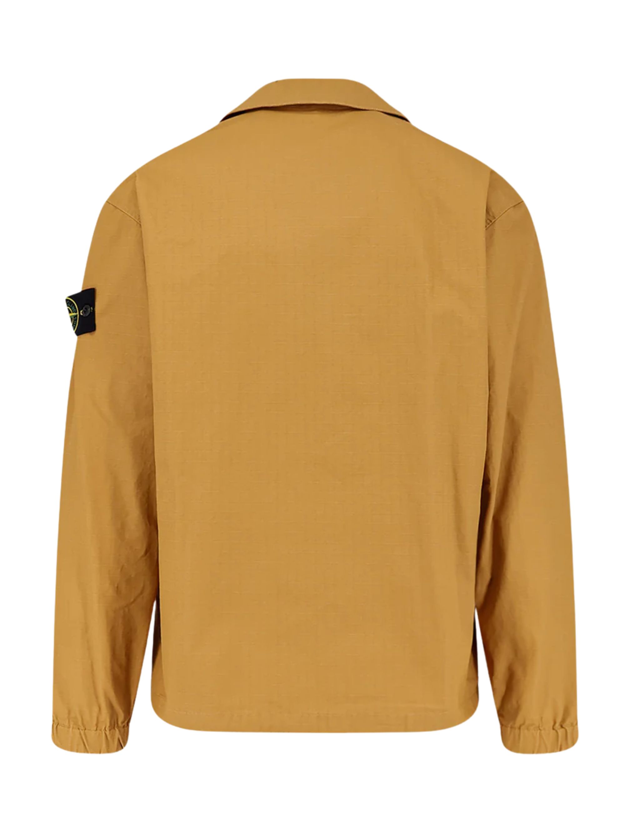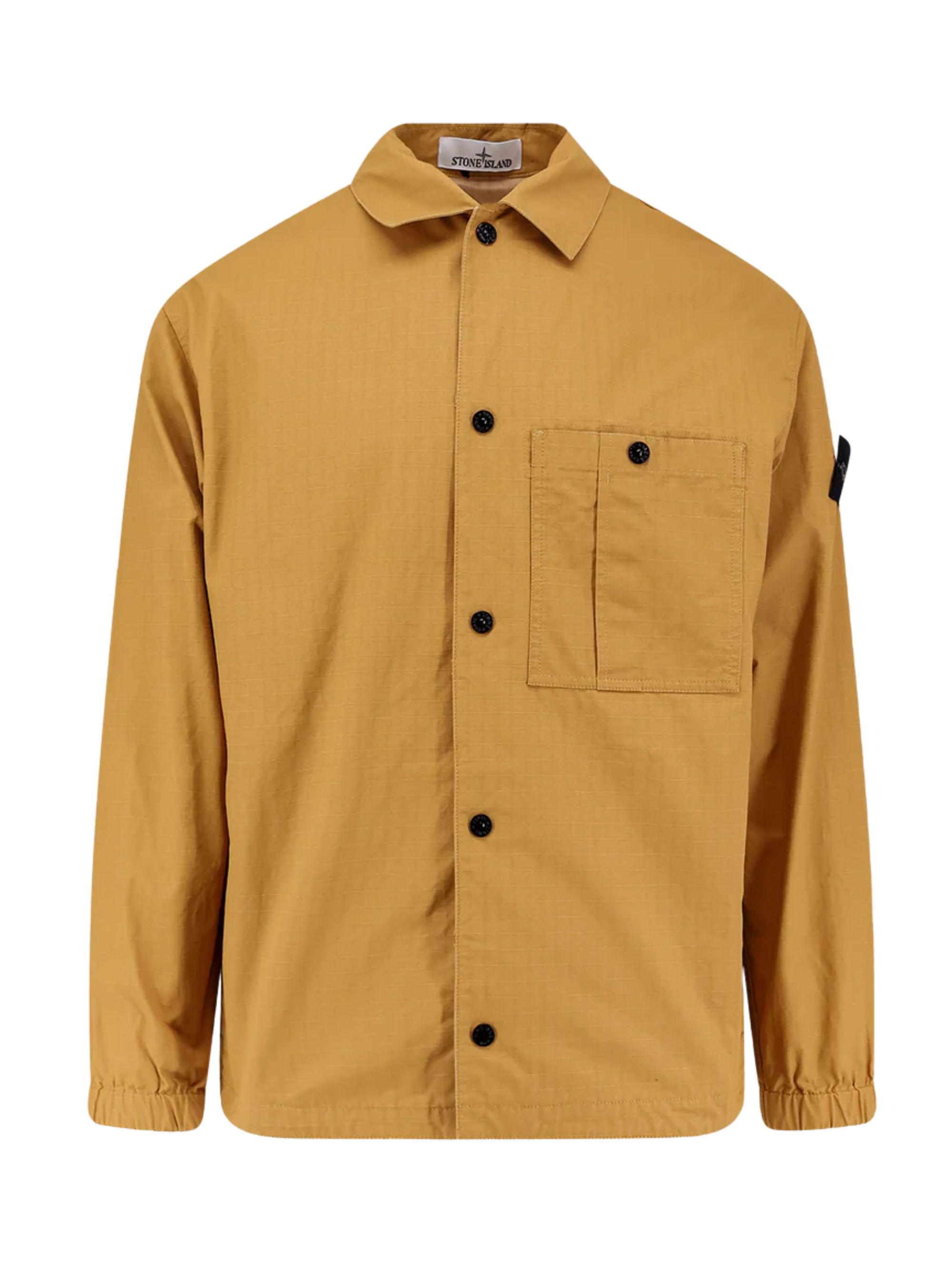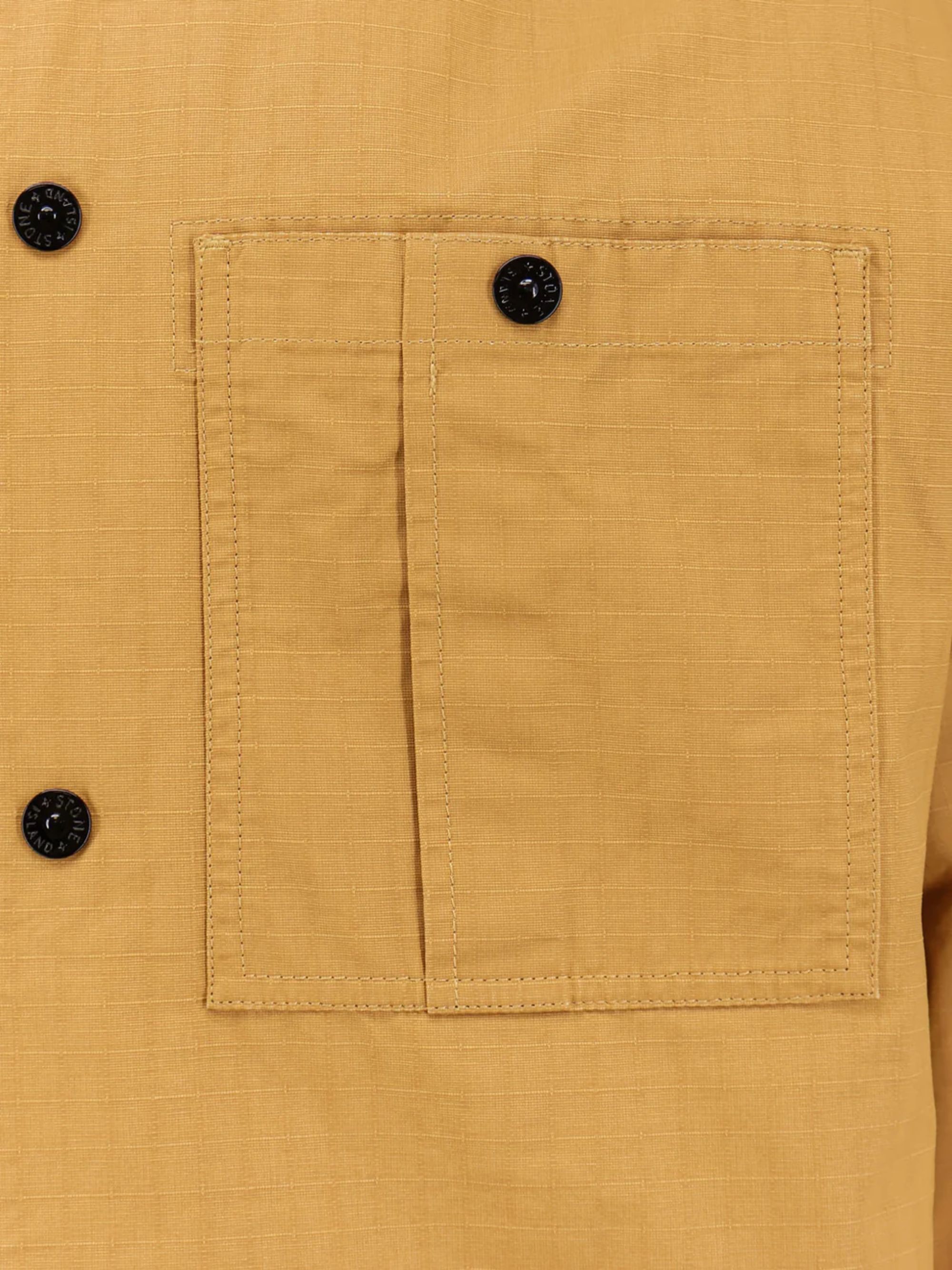 Camicia con logo di STONE ISLAND arancione in cotone, caratterizzata da maniche lunghe, colletto classico, patch logo sulla manica, chiusura con bottoni, due tasche laterali con bottone a pressione e tasca applicata sul petto.
