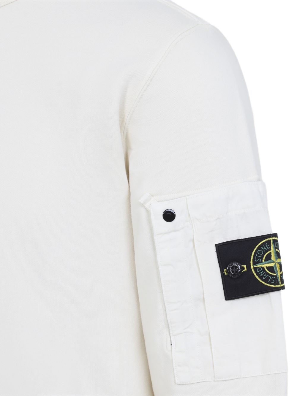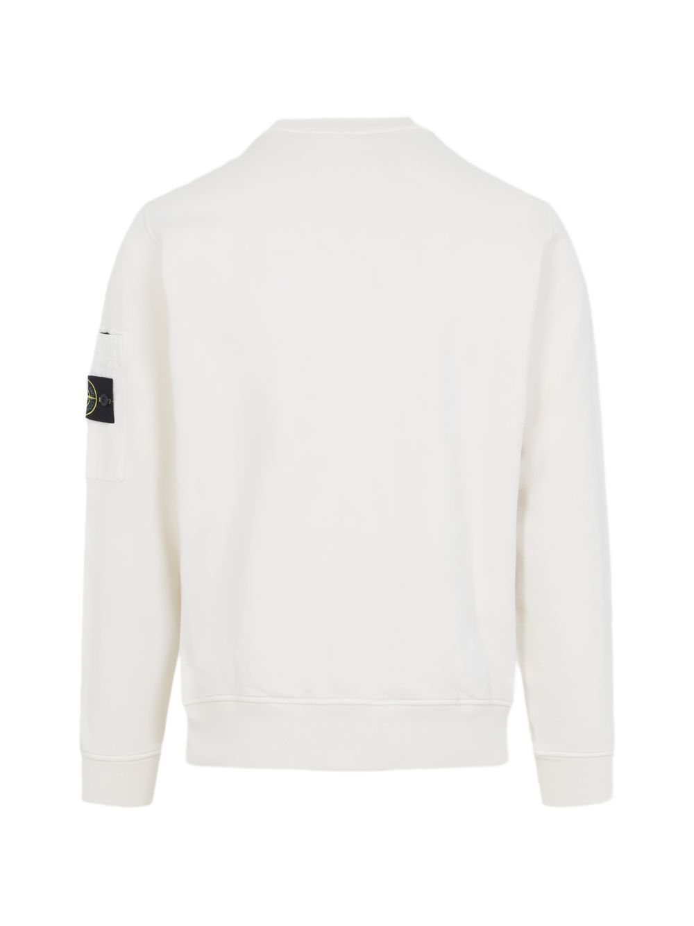 Felpa con logo di STONE ISLAND beige in cotone, caratterizzata da finiture a coste, girocollo e logo sulla manica.