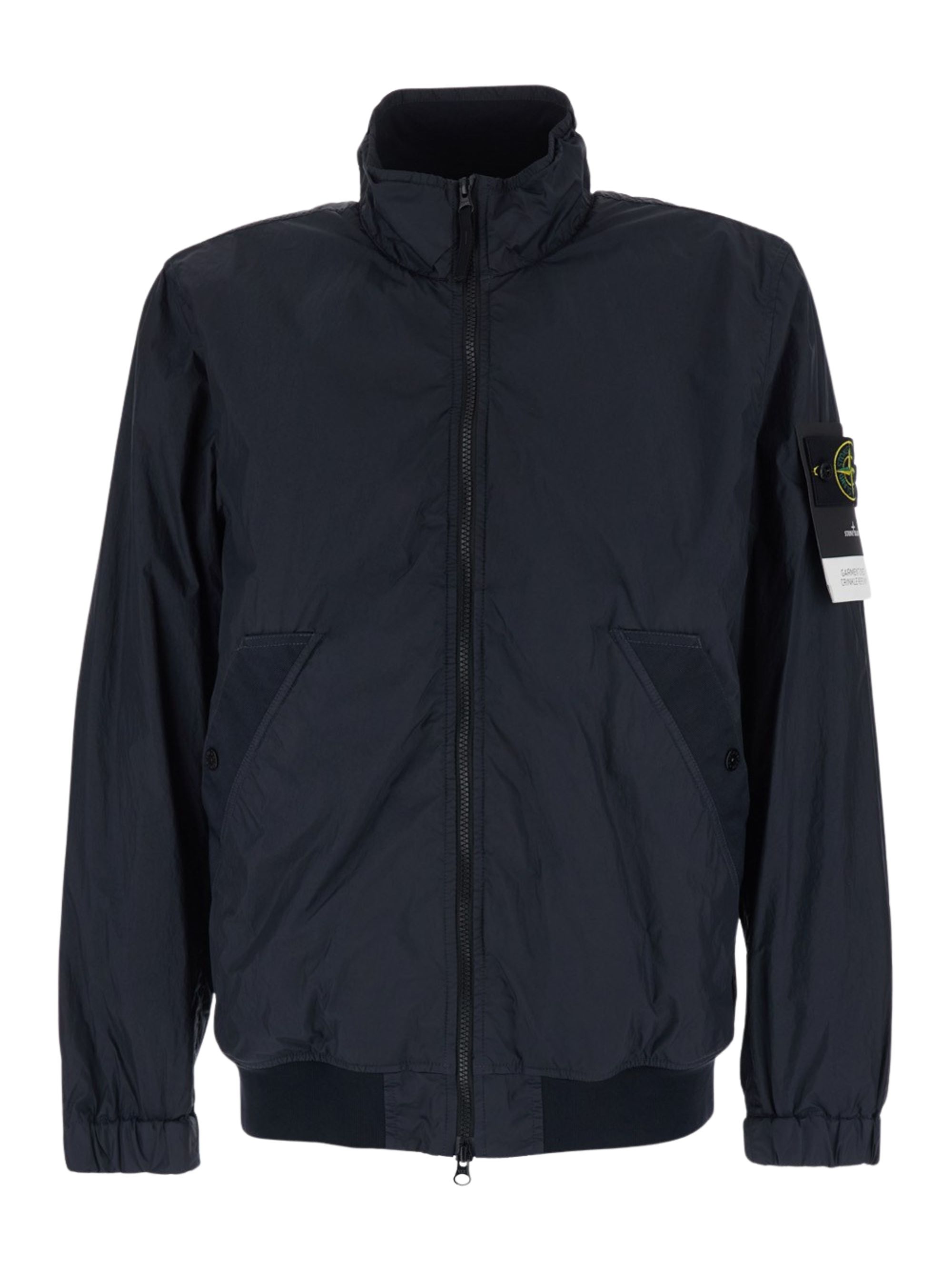 Giacca Crinkle Reps NY di STONE ISLAND blu in tessuto tecnico, caratterizzato da collo alto, due tasche con bottoni laterali, patch logo sulla manica, orlo e polsini elasticizzati, vestibilità regolare.