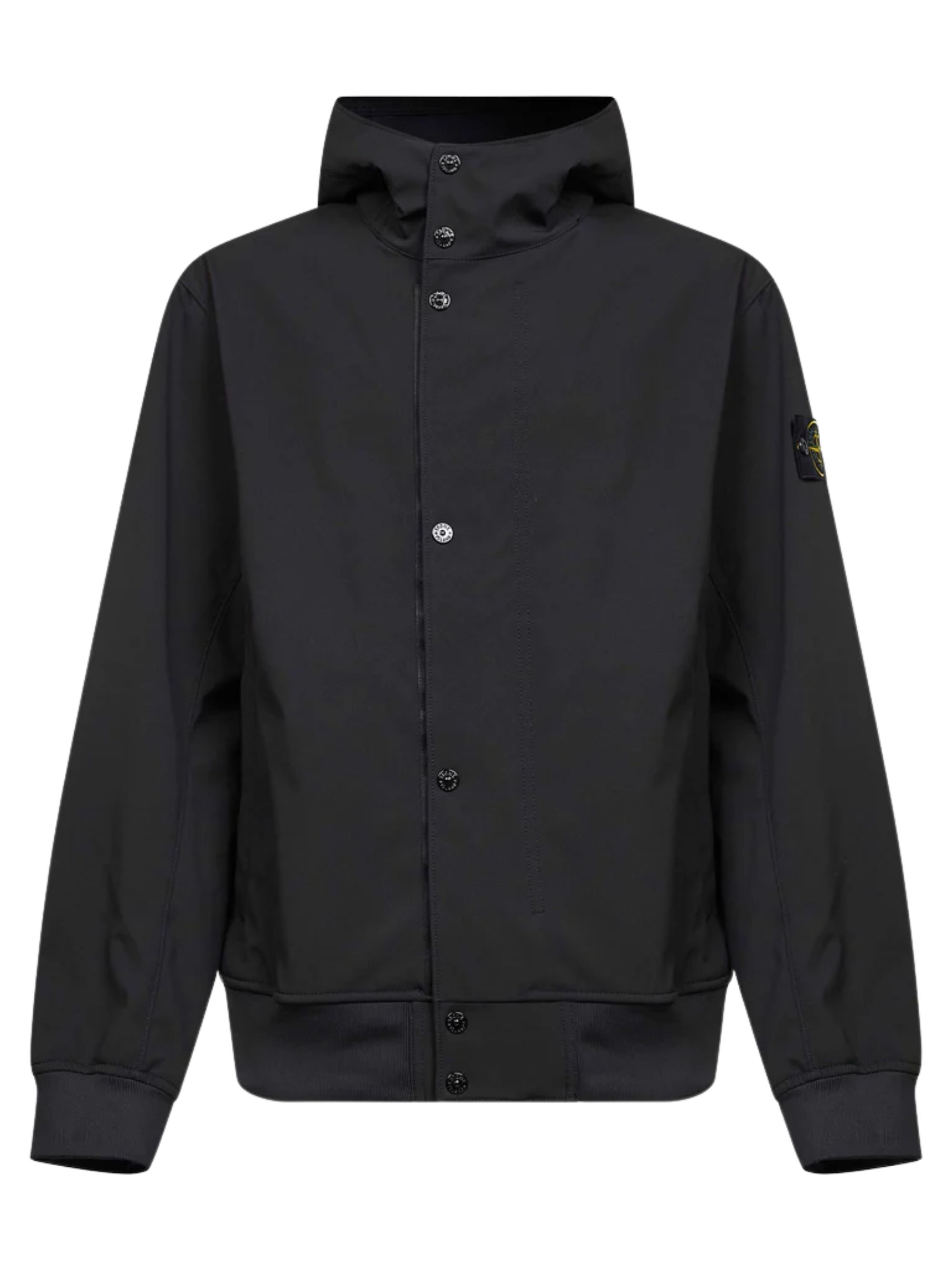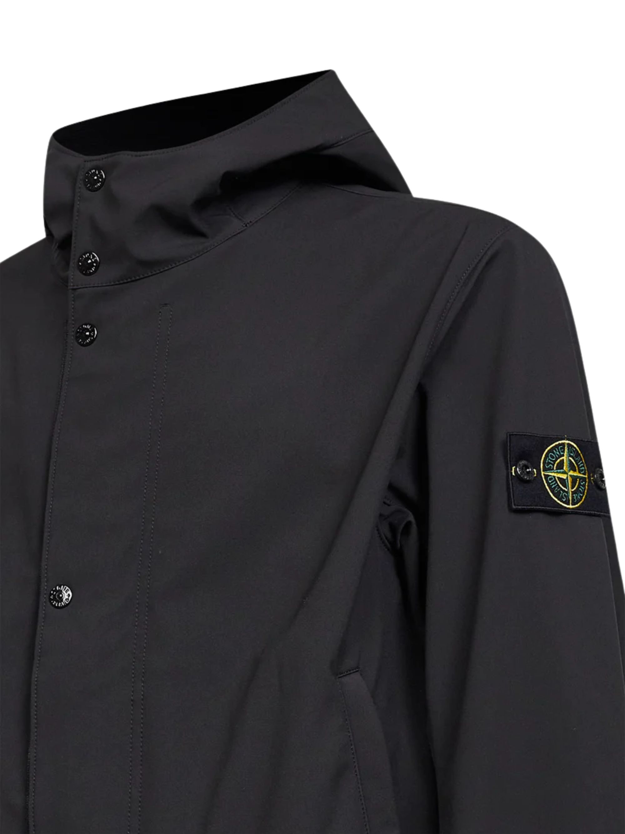Giacca Shell-R E.Dye di STONE ISLAND nera in materiale tecnico, caratterizzata da tasche con bottoni automatici, polsini elasticizzati, chiusura con zip a doppio cursore, logo sulla manica e collo alto.