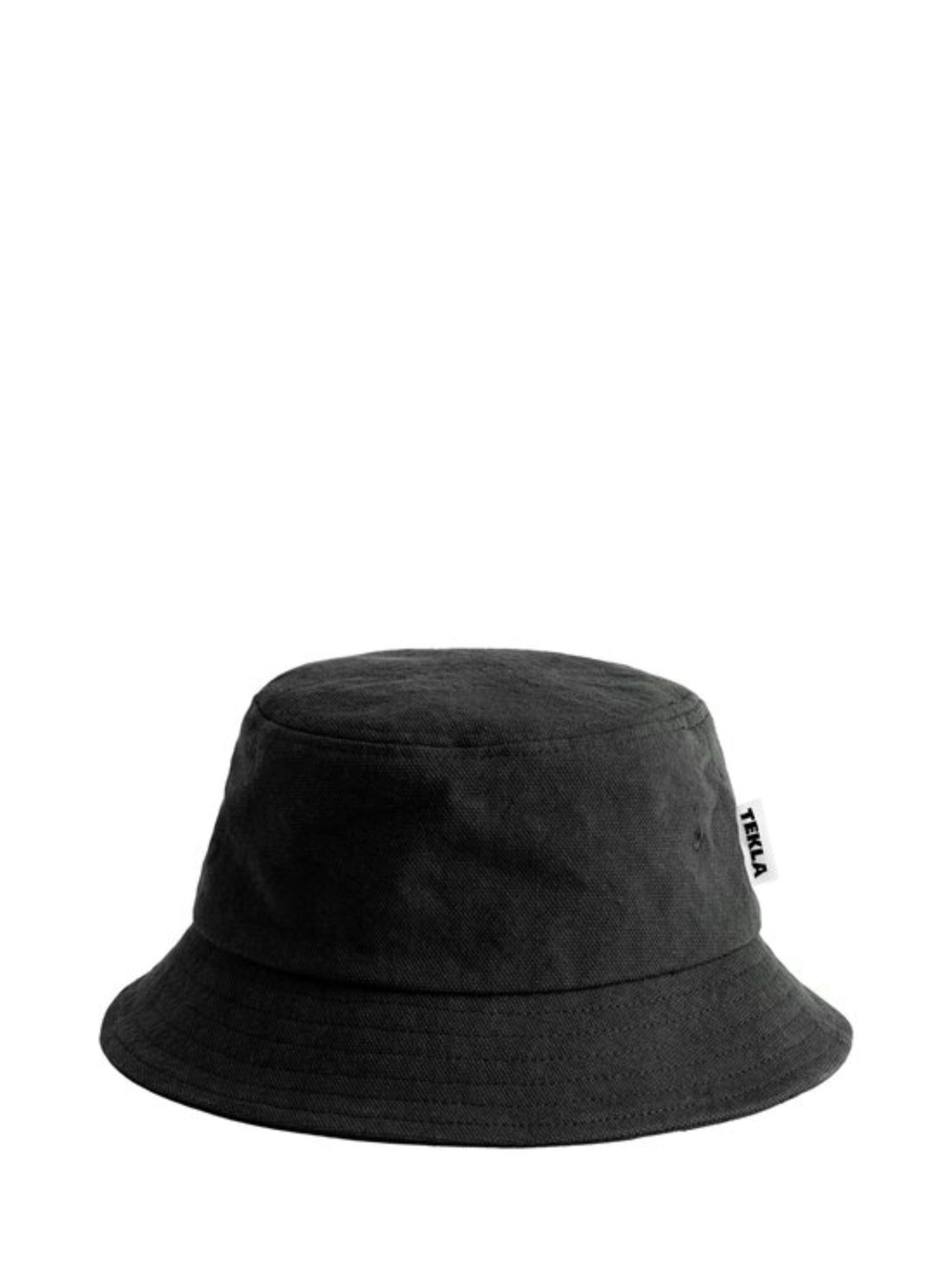 Cappello bucket di TEKLA nero in cotone con etichetta con logo.