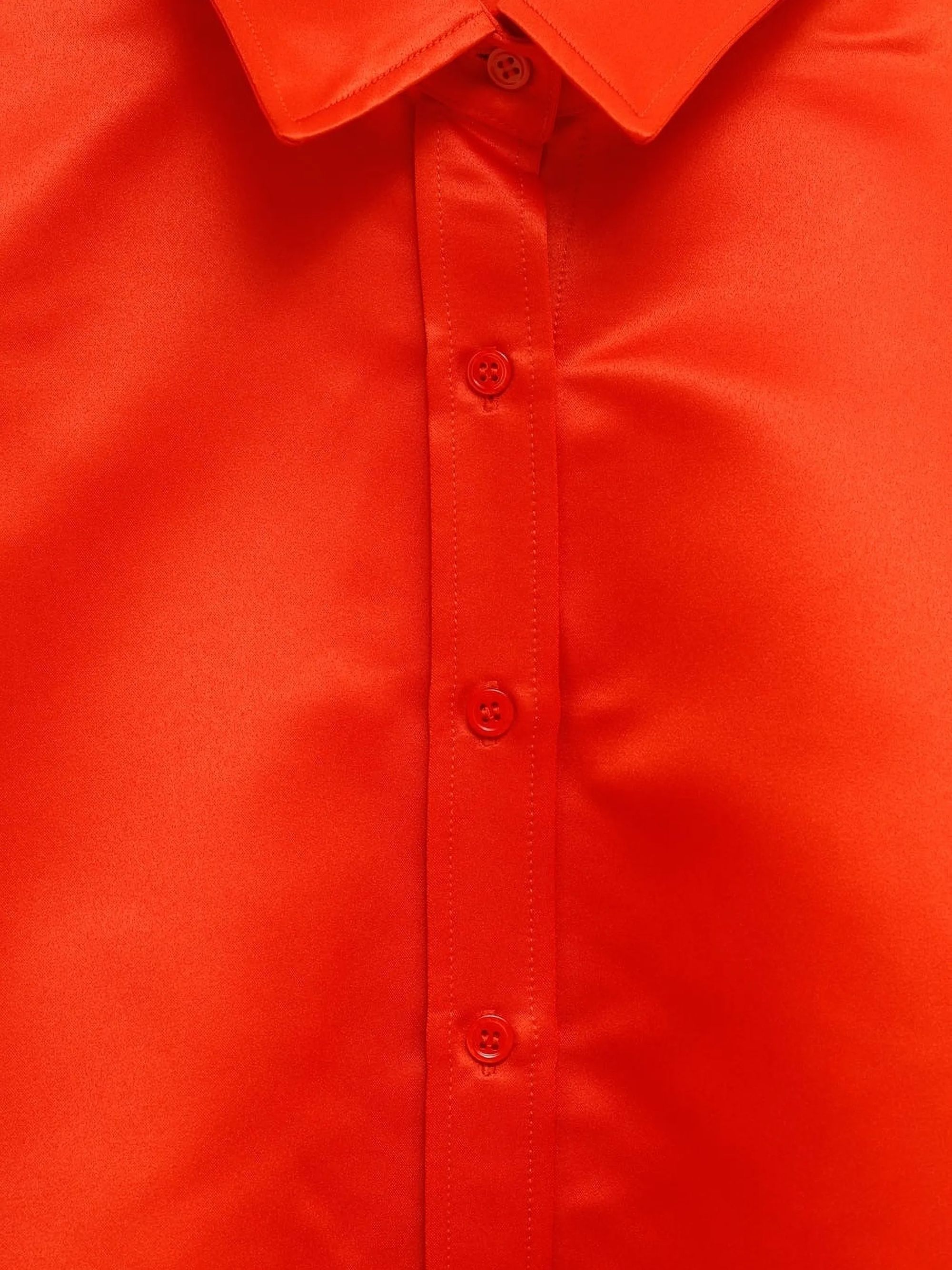 Camicia Arlen di THE FRANKIE SHOP rossa in cotone caratterizzata da taglio corto, orlo curvo, colletto, spalle scese, polsini con bottone e chiusura con bottoni.