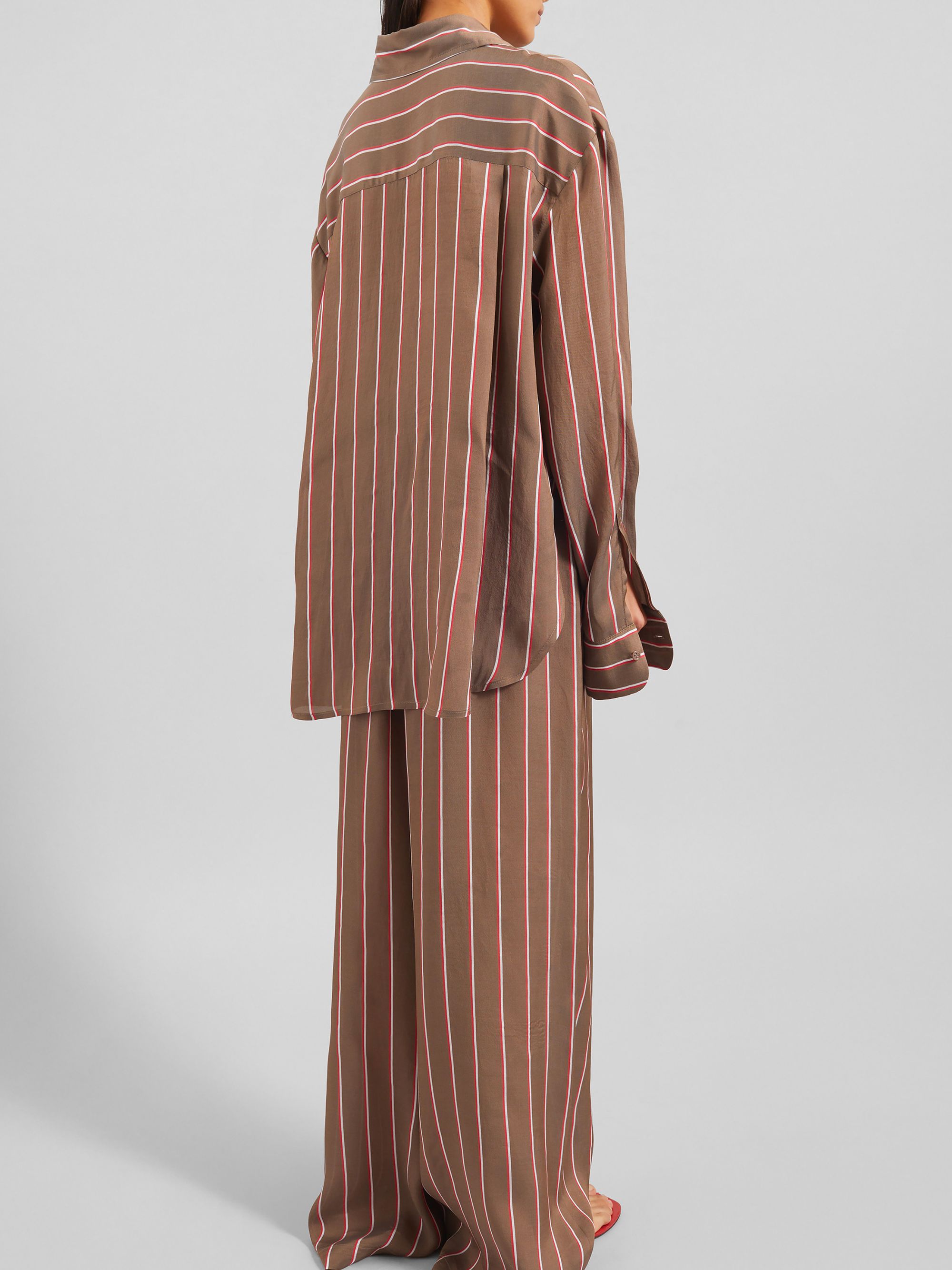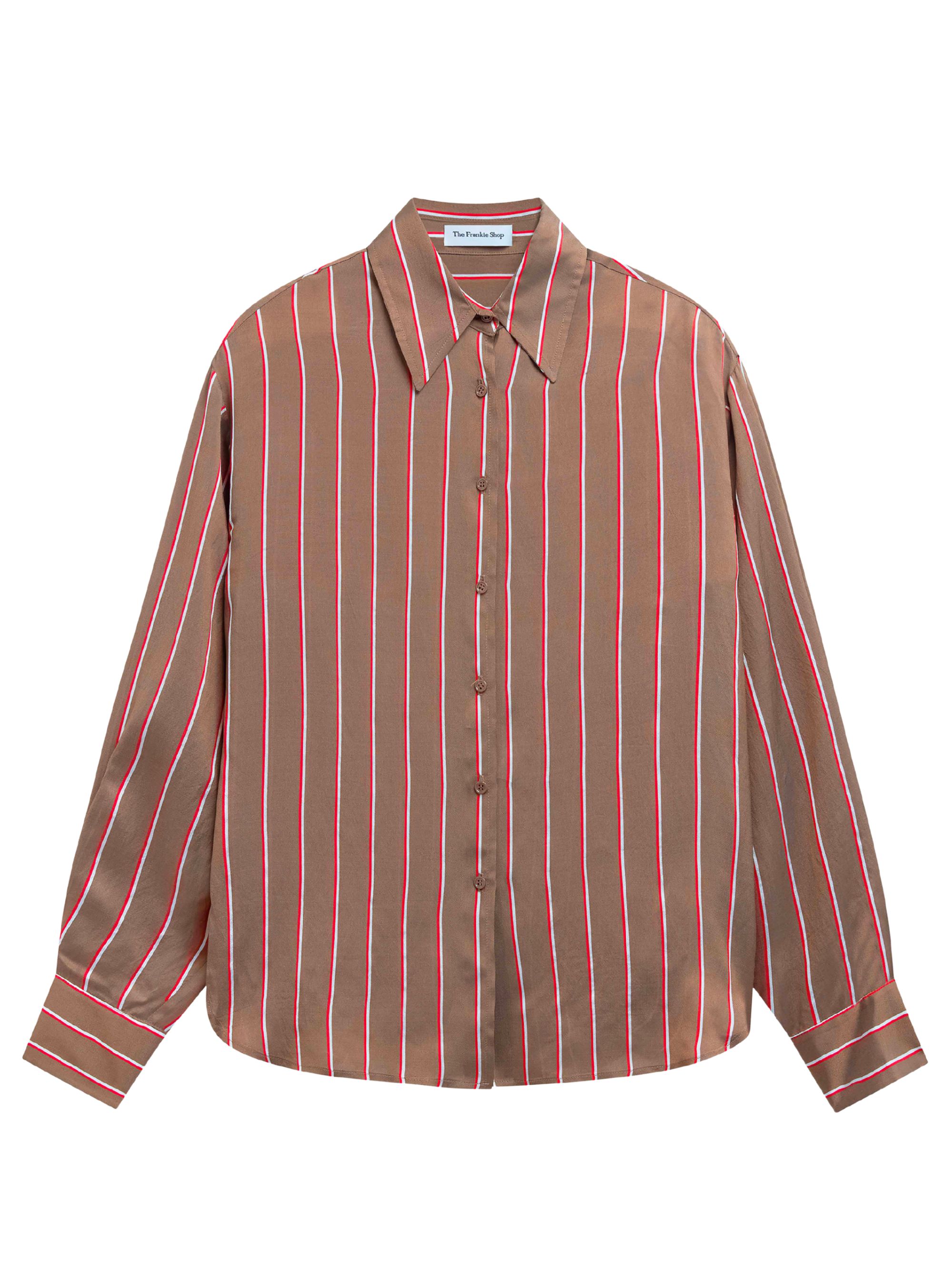 Camicia Peri di THE FRANKIE SHOP marrone in viscosa caratterizzata da motivo a righe rosse e bianche, colletto e chiusura con bottoni.