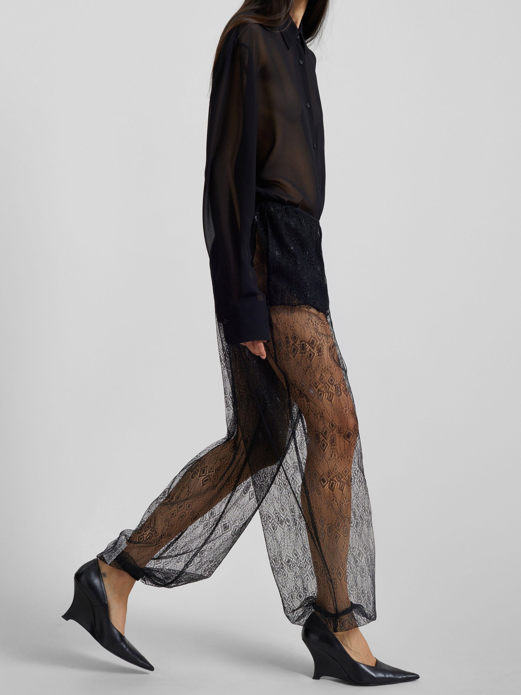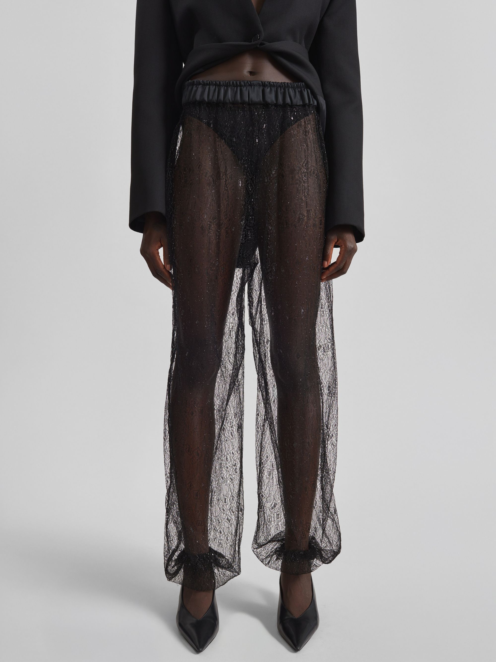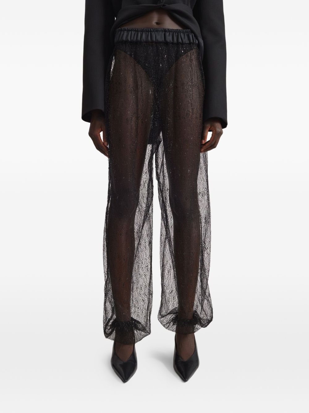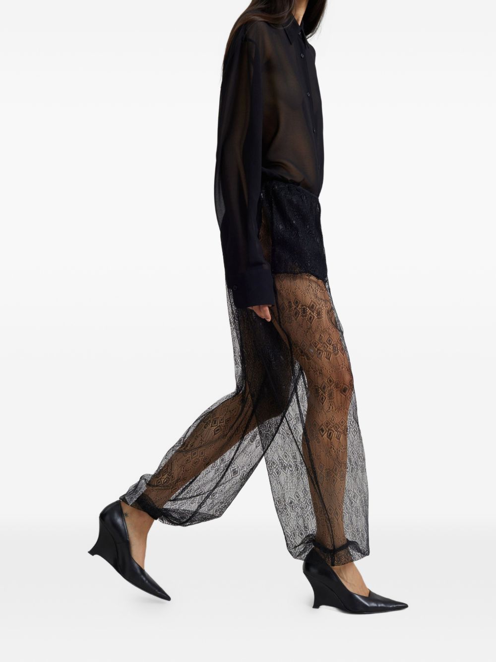 Pantalone a palloncino Orissa di THE FRANKIE SHOP nero in tessuto leggero e trasparente, caratterizzato da stampa a pois, sagoma a palloncino, vita elasticizzata e stile slip-on.
