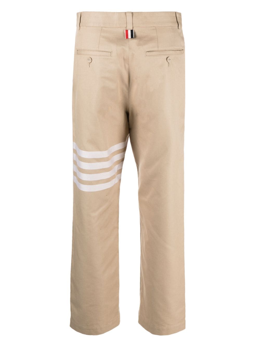 Pantalone in cotone di THOM BROWNE colore beige, caratterizzato da chiusura con zip, taglio dritto, righe web.