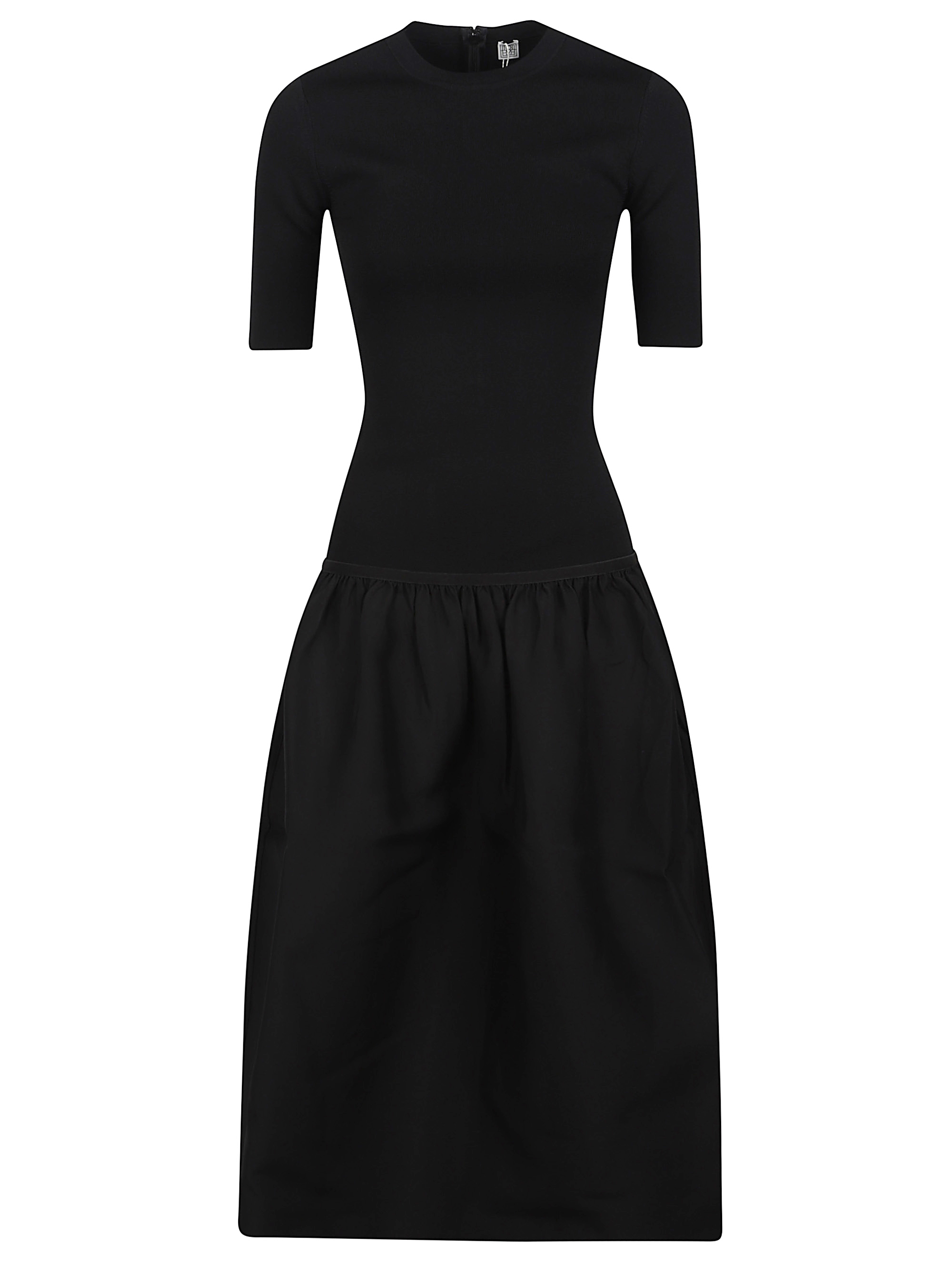 Abito midi di TOTEME nero in maglia con gonna plissettata e maniche corte.