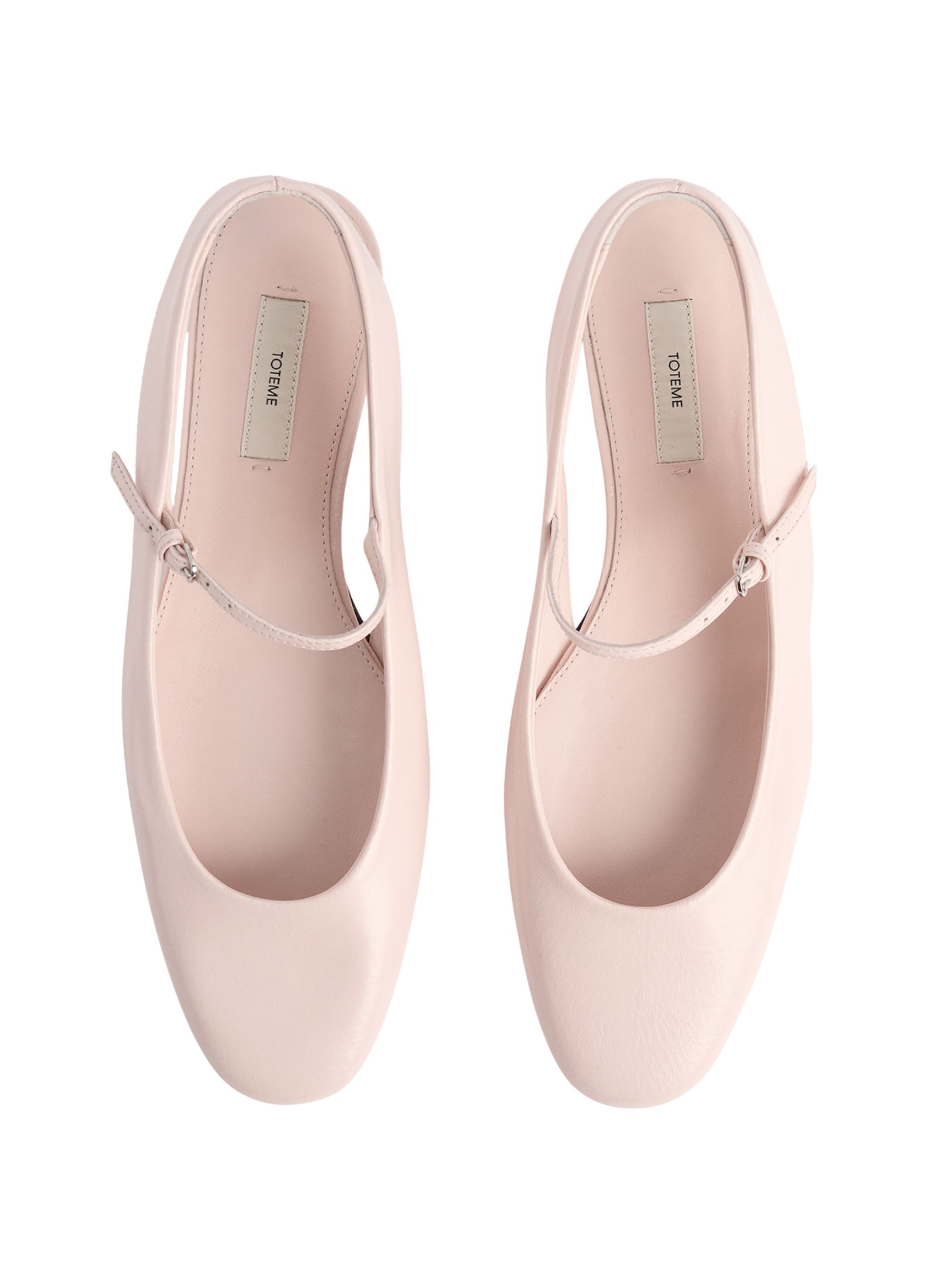 Ballerina con fibbia di TOTEME rosa in pelle con punta tonda, dettagli argento e chiusura con cinturino con fibbia.