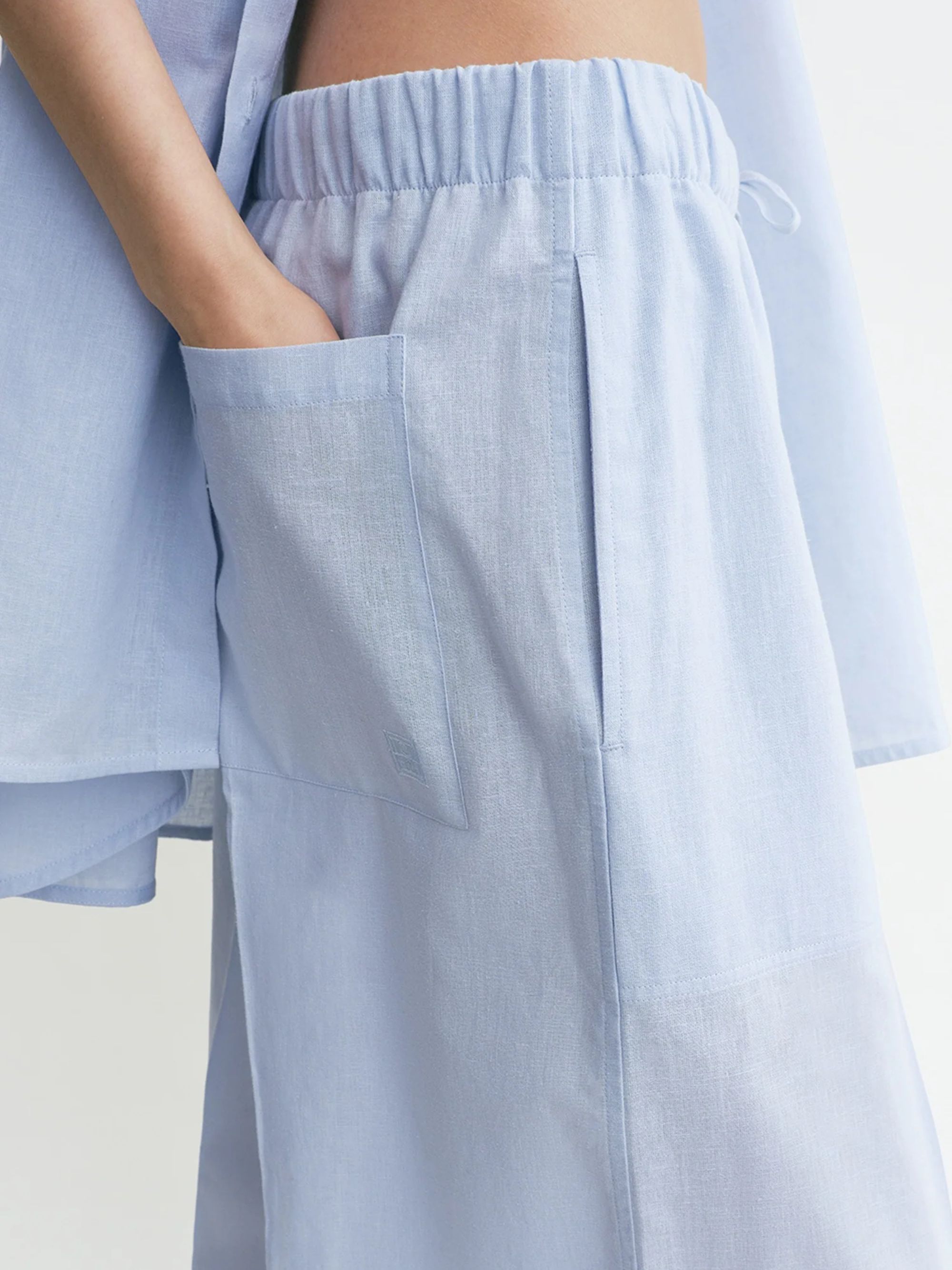 Pantalone a palazzo di TOTEME azzurro in misto cotone e lino caratterizzato da gamba larga e vita elasticizzata con coulisse.