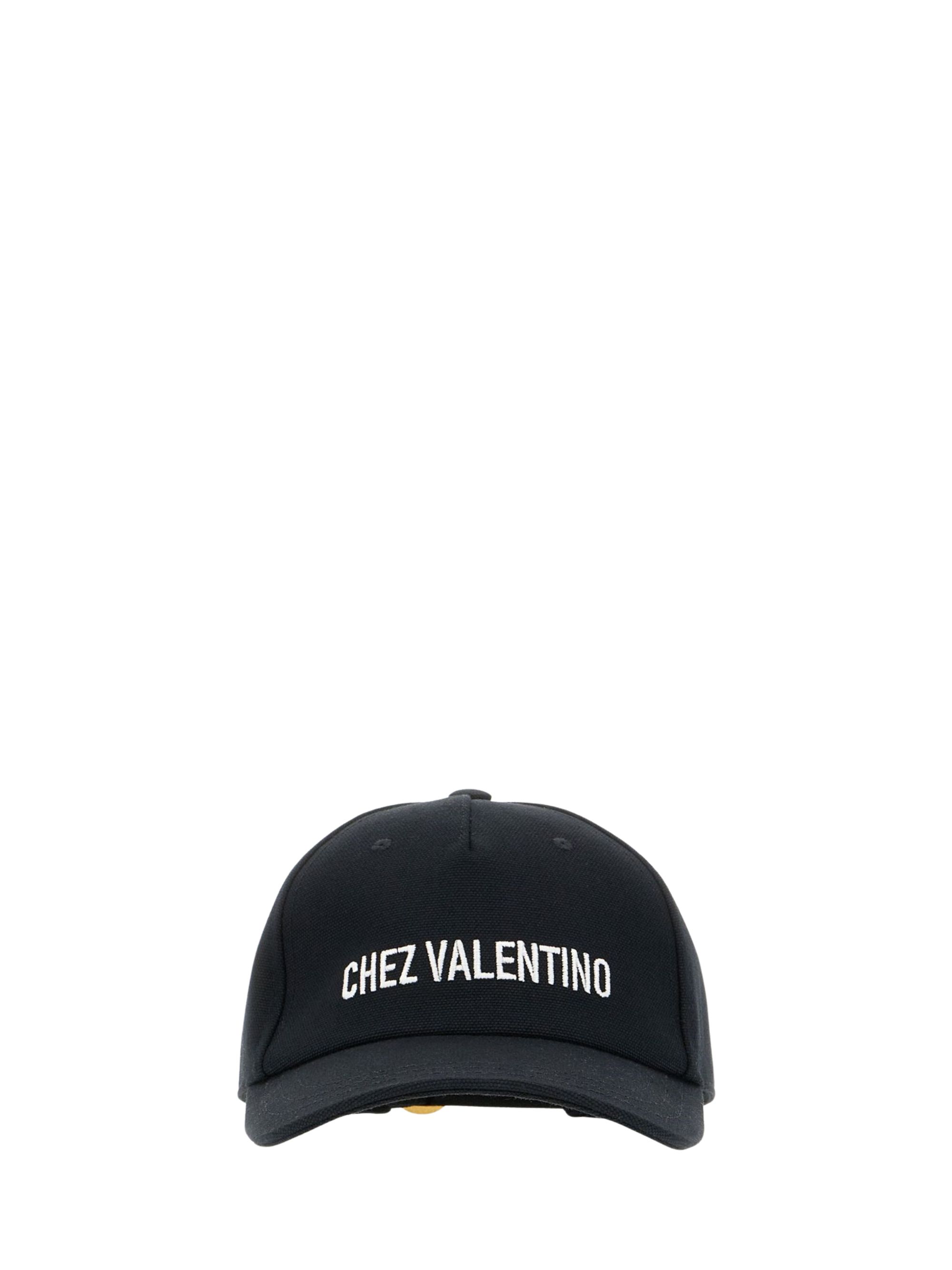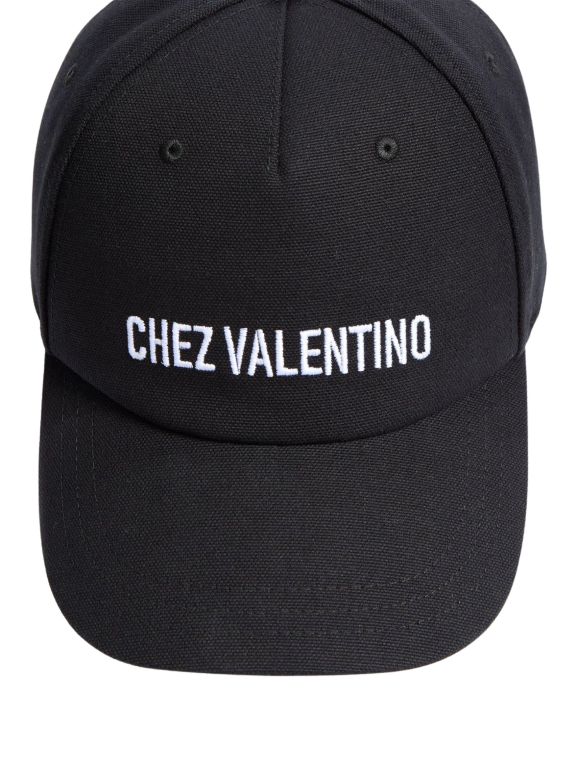 Cappello Chez Valentino di VALENTINO GARAVANI nero in cotone, caratterizzato da logo sul fronte e chiusura regolabile sul retro.