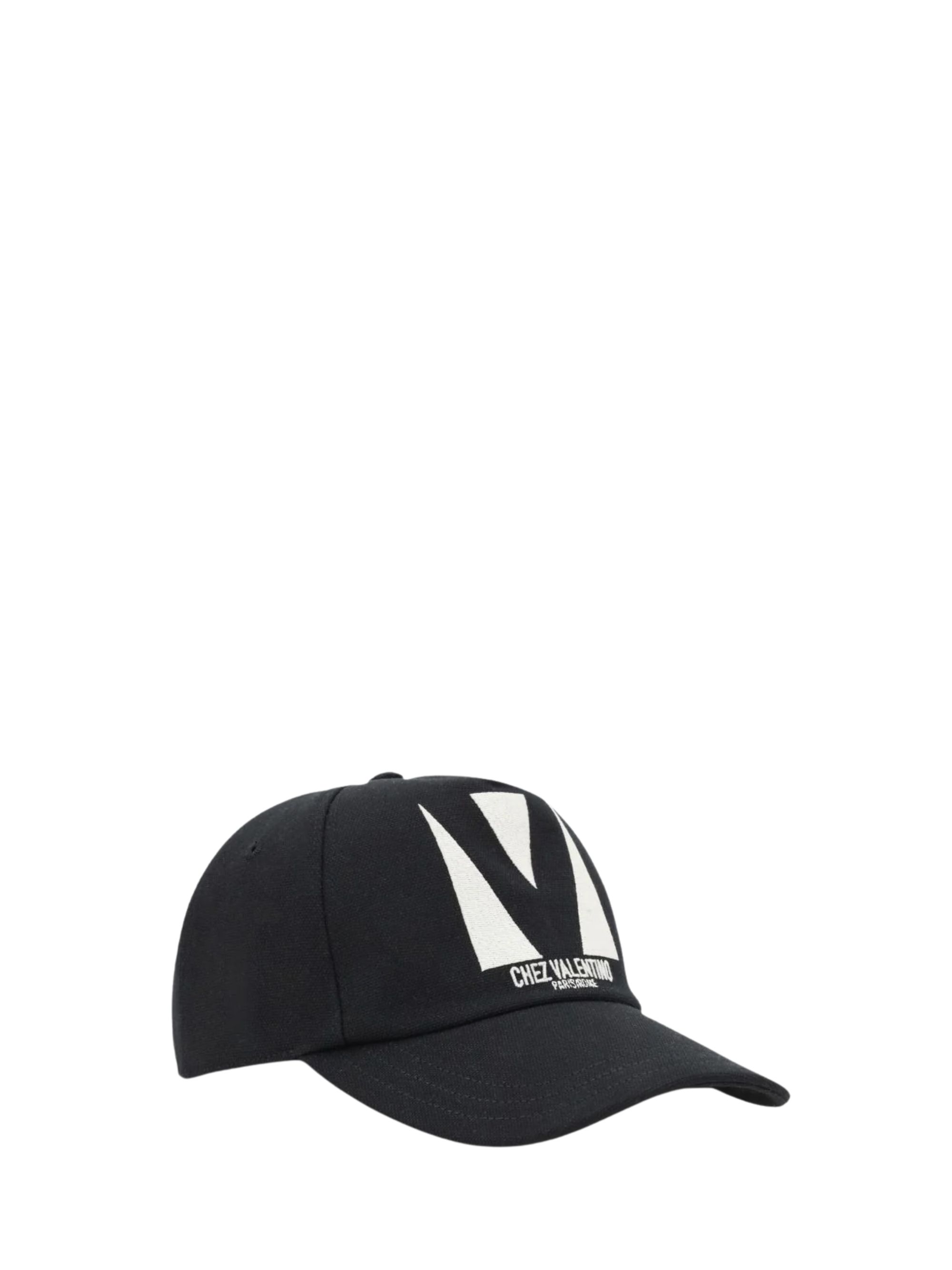 Cappello Chez Valentino di VALENTINO GARAVANI nero in cotone, caratterizzato da logo sul fronte e chiusura regolabile sul retro.