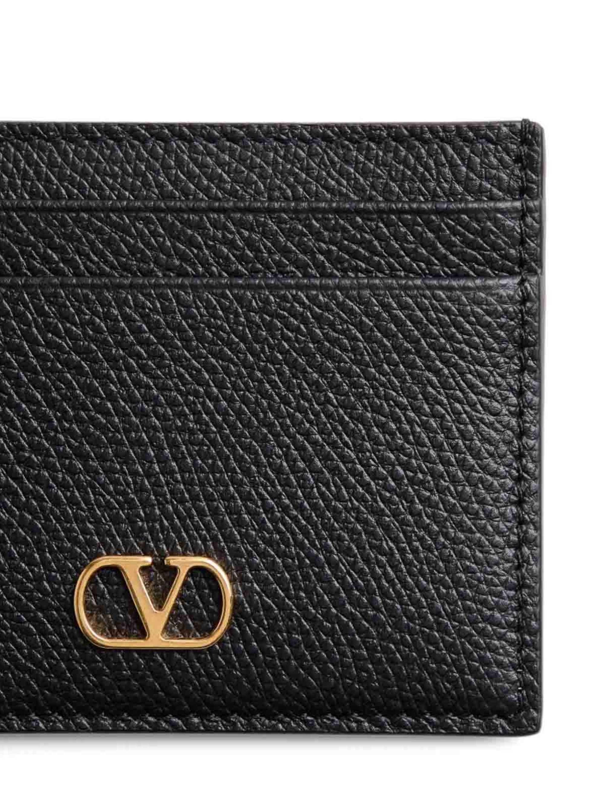 Porta carte VLogo Signature di VALENTINO GARAVANI nero in pelle, caratterizzato da quattro scomparti per carte, una tasca centrale, logo VLogo Signature sul fronte e hardware oro.