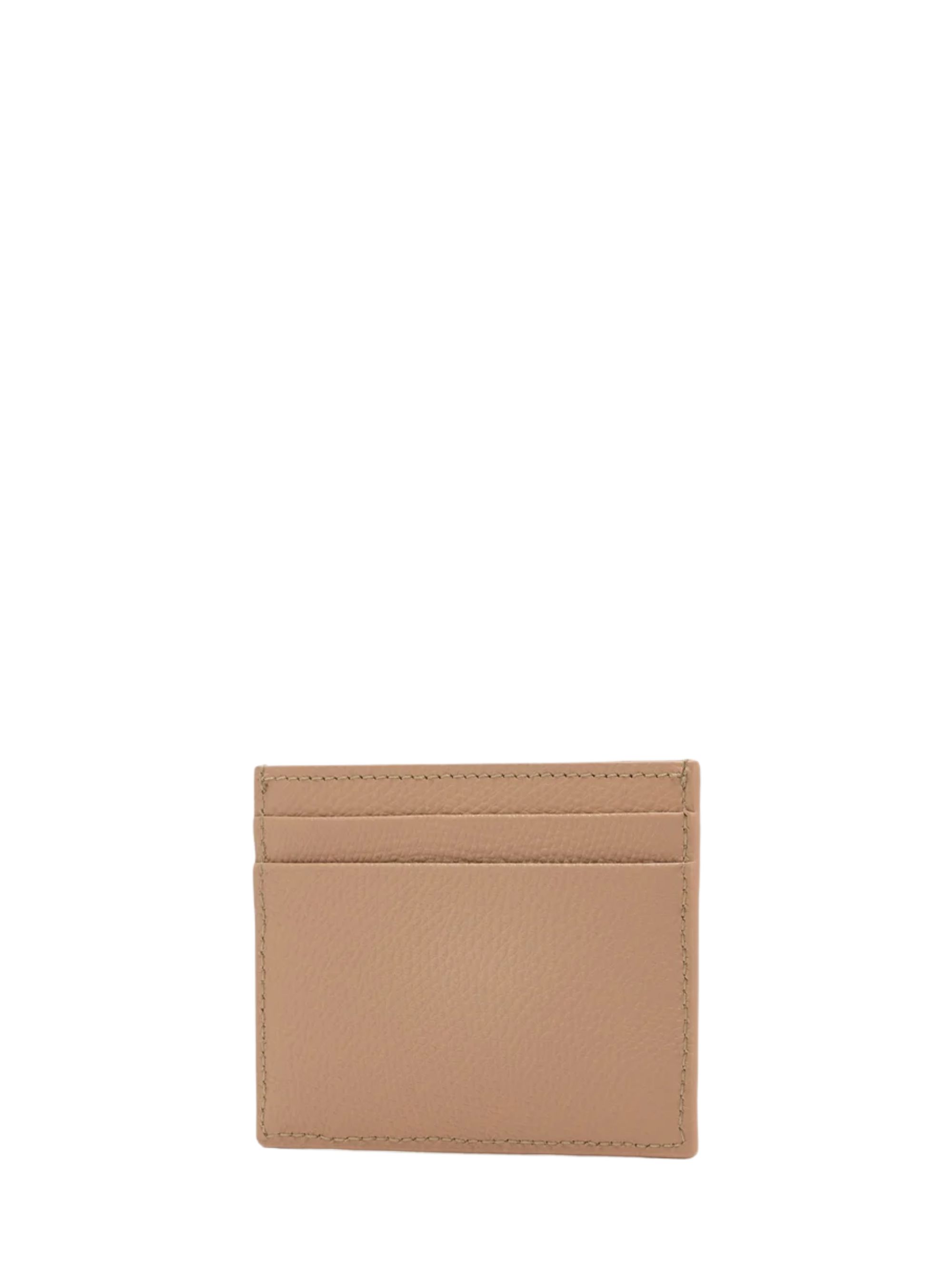 Porta carte VLogo Signature di VALENTINO beige in pelle, caratterizzato da quattro scomparti per carte, una tasca centrale, logo VLogo Signature sul fronte e hardware oro.