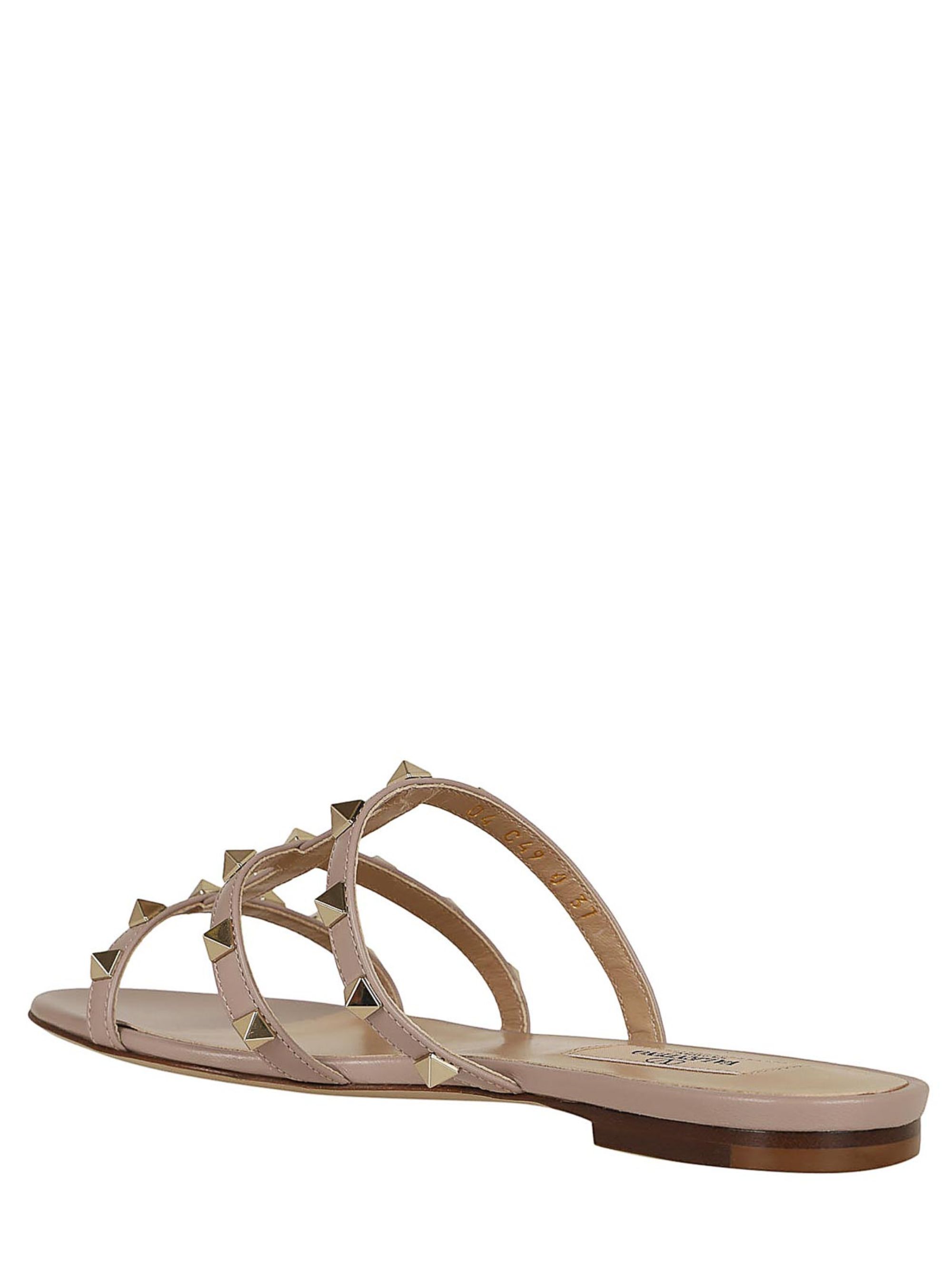 Sandalo Ruckstud di VALENTINO GARAVANI rosa in pelle con dettagli con borchie oro e slip on.