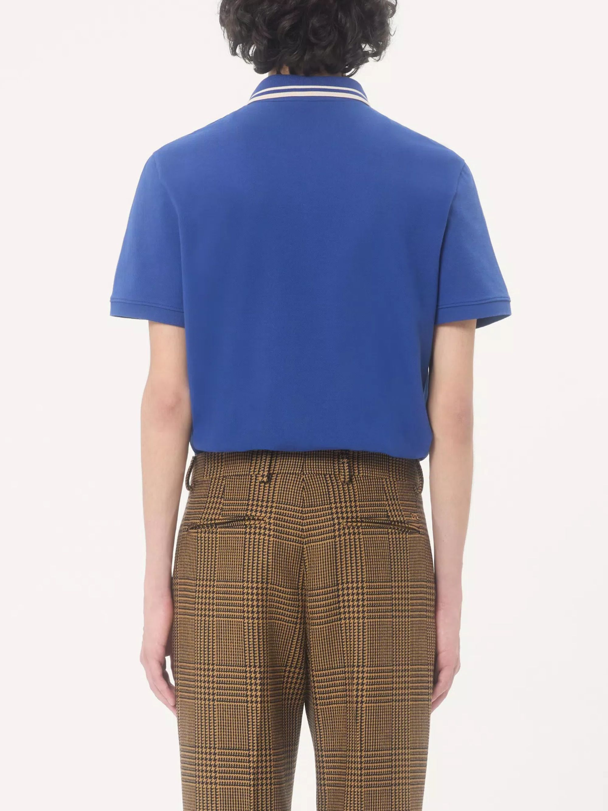 Polo m/c con logo di VALENTINO blu in cotone, caratterizzata da maniche corte, colletto classico con dettagli a contrasto, chiusura con bottoni e logo sul petto.