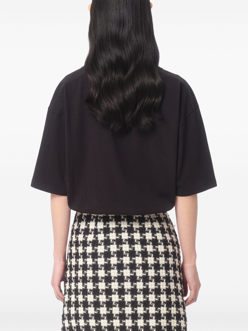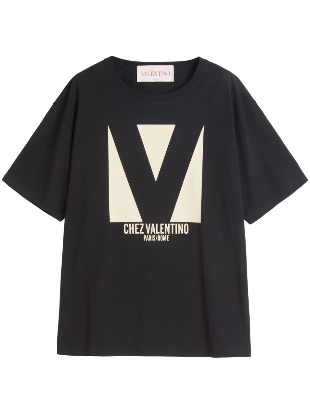 T-shirt Chez Valentino di VALENTINO nera in cotone con stampa con logo sul davanti con scollo rotondo e maniche corte con spalle scese.