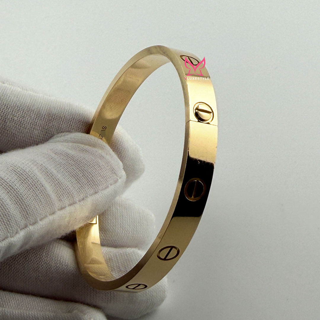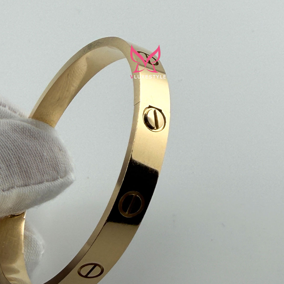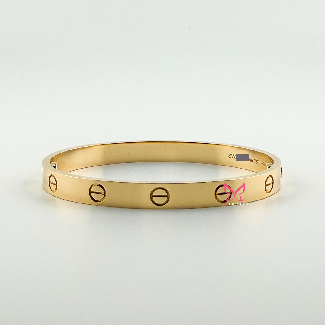The CARTIER Love Bracelet in 18K Yellow Gold is a masterpiece of timeless elegance and opulence. It represents the exquisite craftsmanship and iconic luxury that Cartier embodies. This authentic bracelet, crafted from 18K yellow gold, symbolizes love and luxury.
