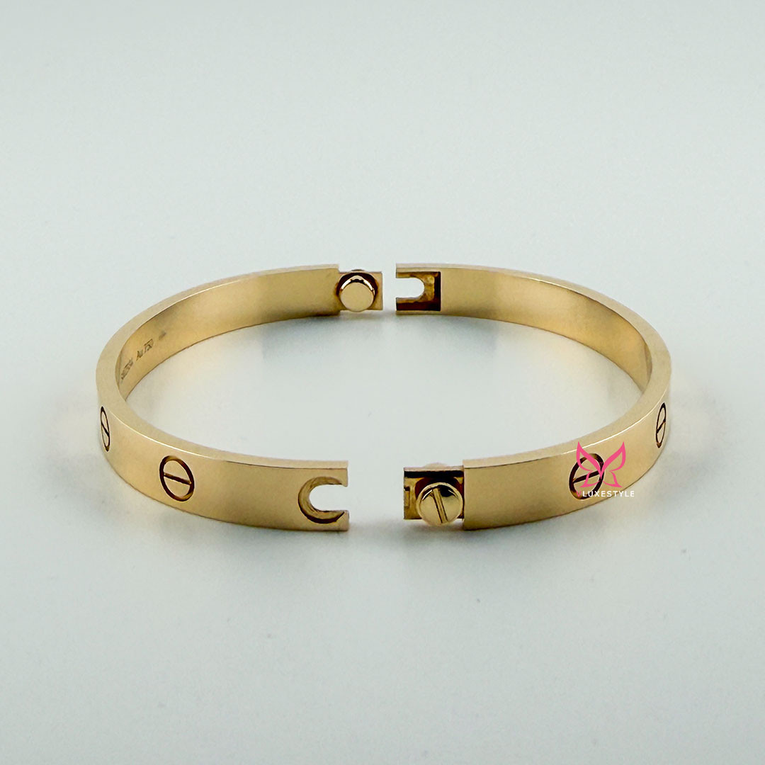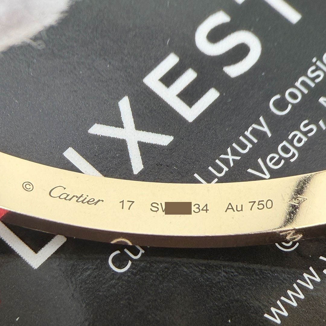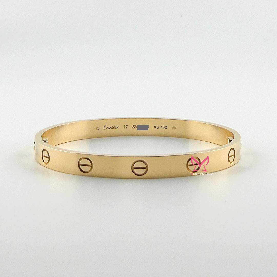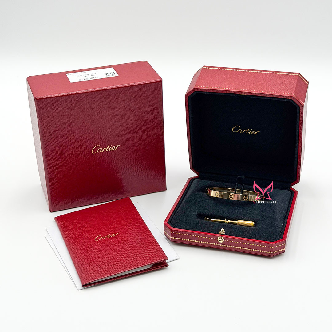 The CARTIER Love Bracelet in 18K Yellow Gold is a masterpiece of timeless elegance and opulence. It represents the exquisite craftsmanship and iconic luxury that Cartier embodies. This authentic bracelet, crafted from 18K yellow gold, symbolizes love and luxury.