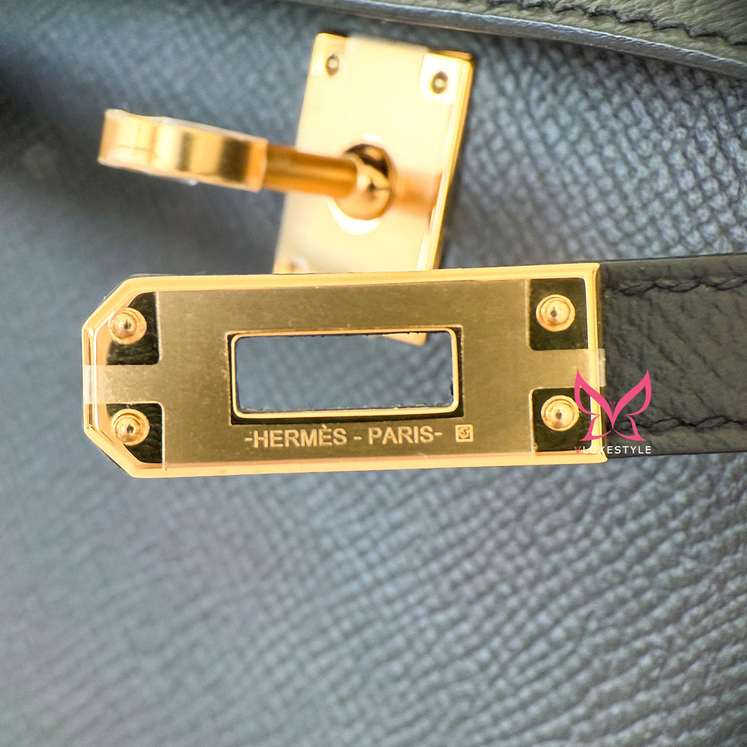 The exquisite design features an iconic Hermès turn-lock closure that elegantly secures the small flap. The single rolled-leather top handle with gold-plated hardware and an optional leather shoulder strap for versatile wear. Whether carried by the top handle, over the shoulder, or as a cross-body, this authentic Hermès Mini Kelly elevates your style to new heights, a statement piece that adds classic Hermès elegance to any ensemble.