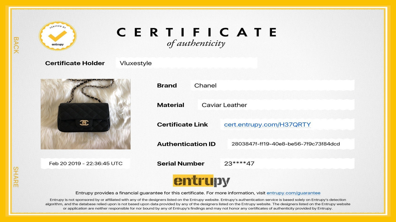 The bag comes with complete set, authenticity card, receipt, dust bag, care booklet, lace, camellia and box with additional third-party Entrupy Authenticity Certificate.