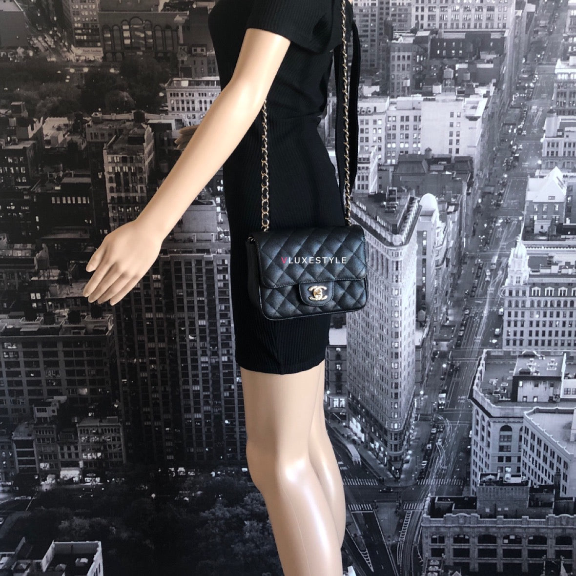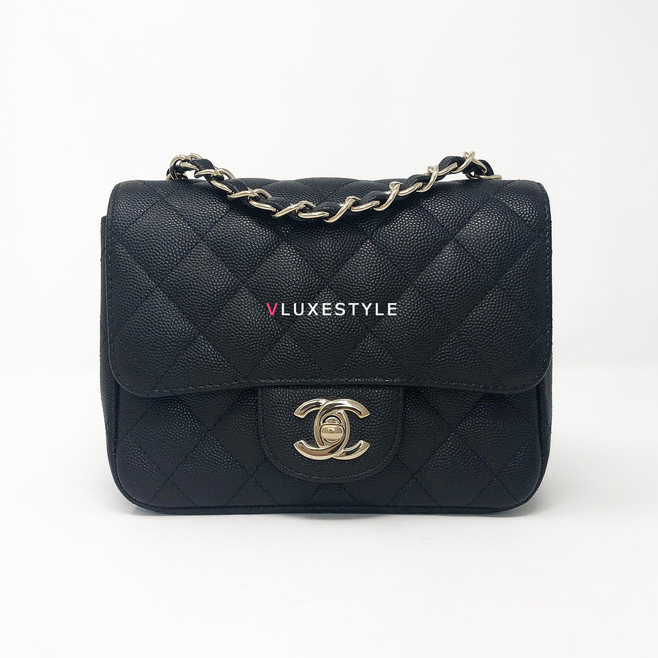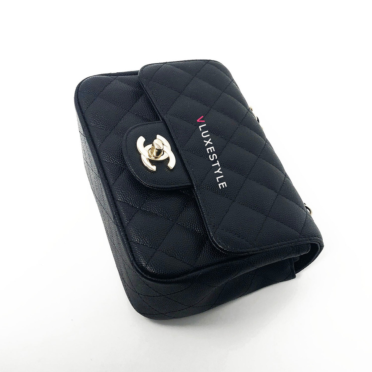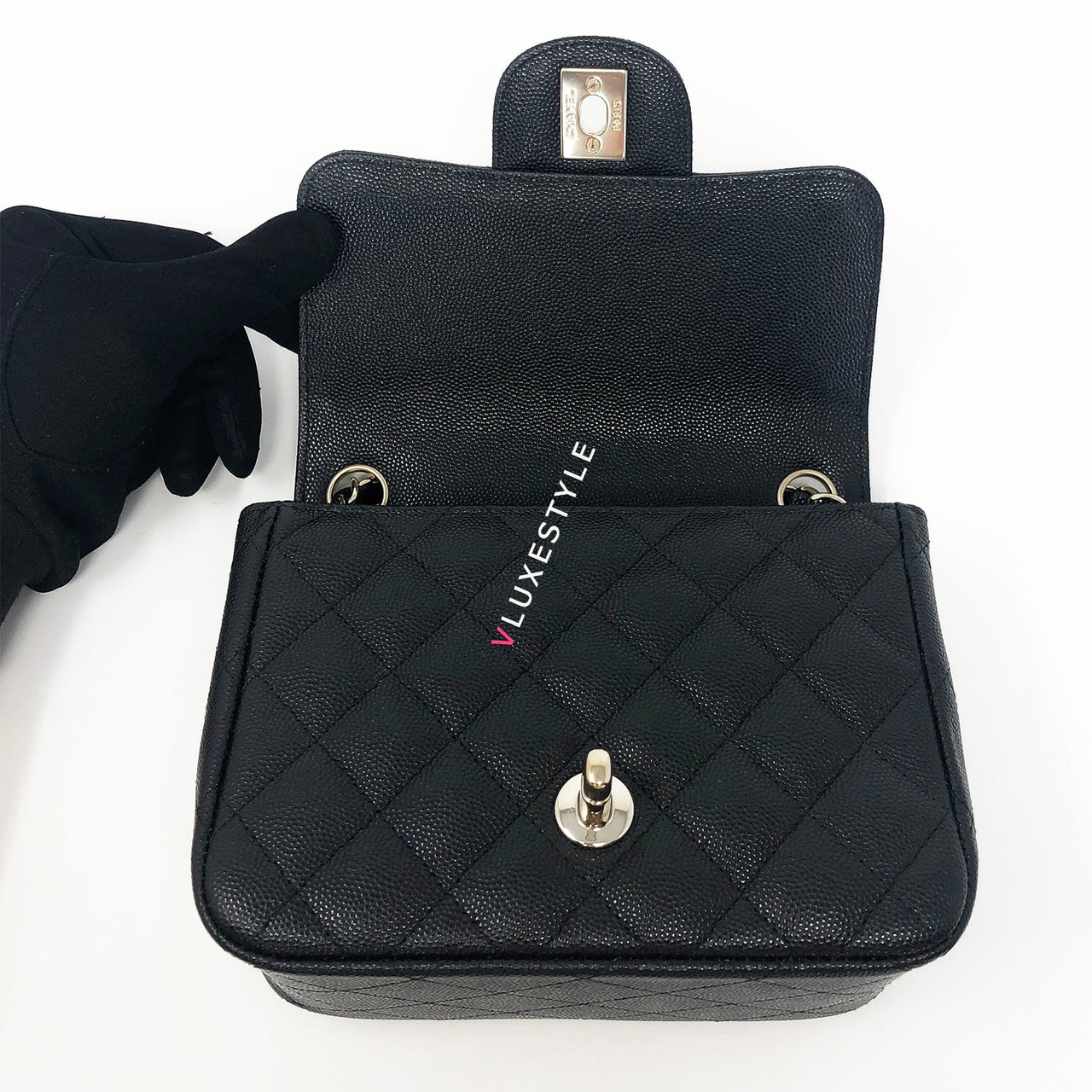 The highly sought after and very hard to find! LIKE NEW 17C Mini Square Black Caviar with EDGE STITCHING and light gold hardware. Like new/near new condition, no corner wear, leather smells brand new, the bag is clean inside and out. Made in Italy/23 series/2017.