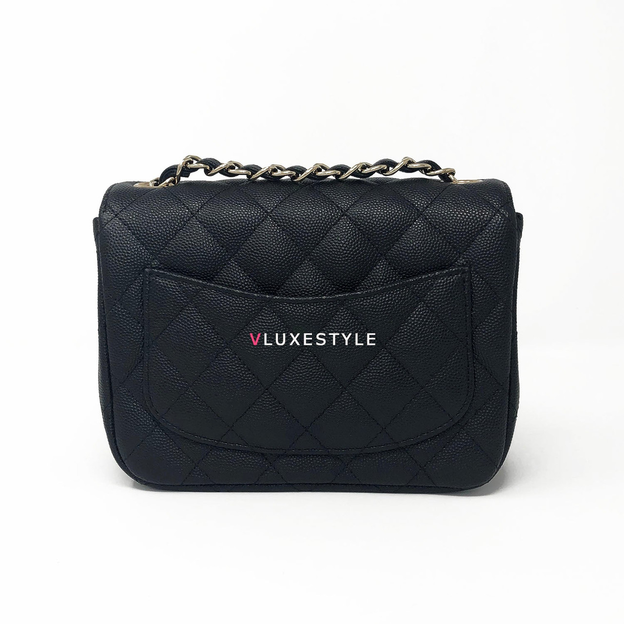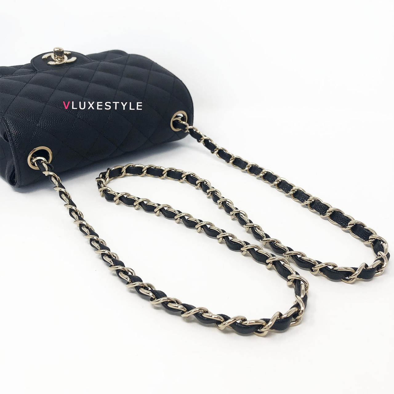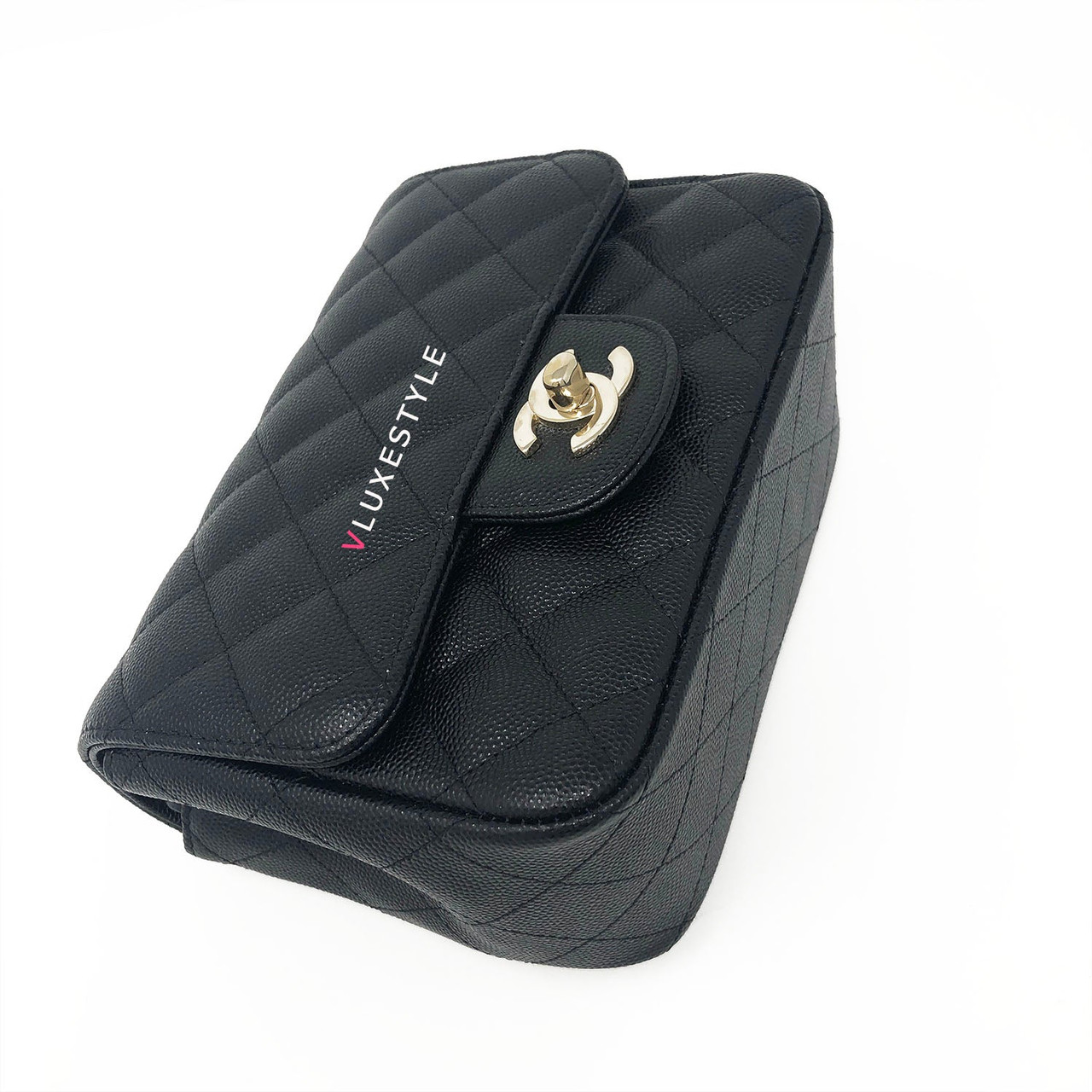 The highly sought after and very hard to find! LIKE NEW 17C Mini Square Black Caviar with EDGE STITCHING and light gold hardware. Like new/near new condition, no corner wear, leather smells brand new, the bag is clean inside and out. Made in Italy/23 series/2017.