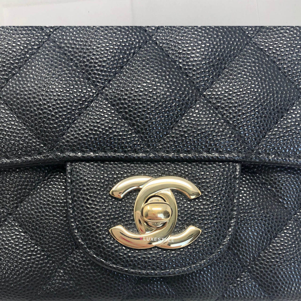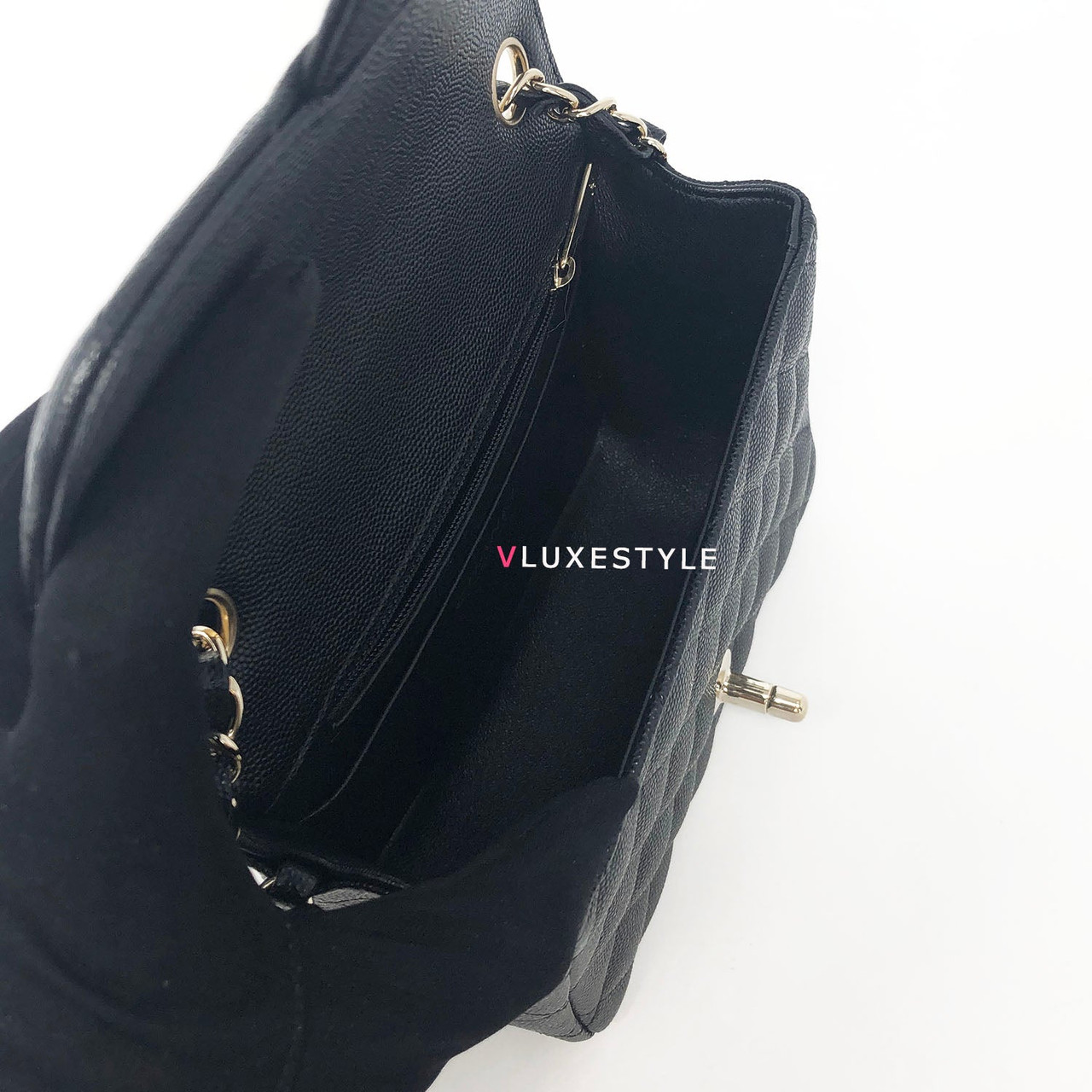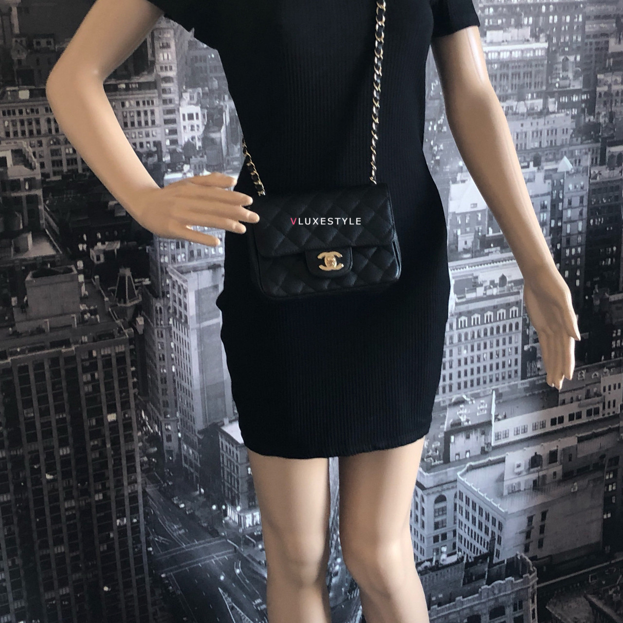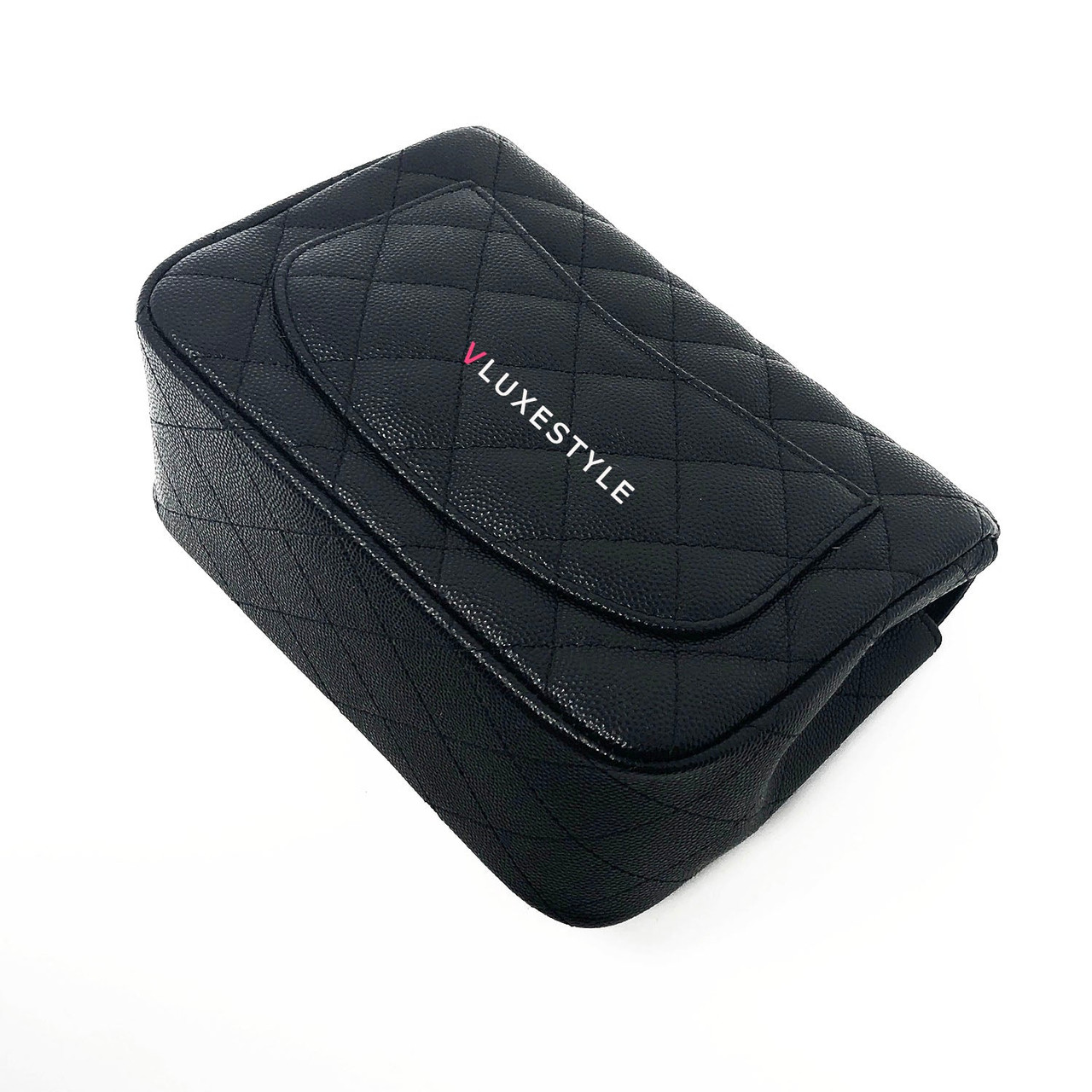 The highly sought after and very hard to find! LIKE NEW 17C Mini Square Black Caviar with EDGE STITCHING and light gold hardware. Like new/near new condition, no corner wear, leather smells brand new, the bag is clean inside and out. Made in Italy/23 series/2017.