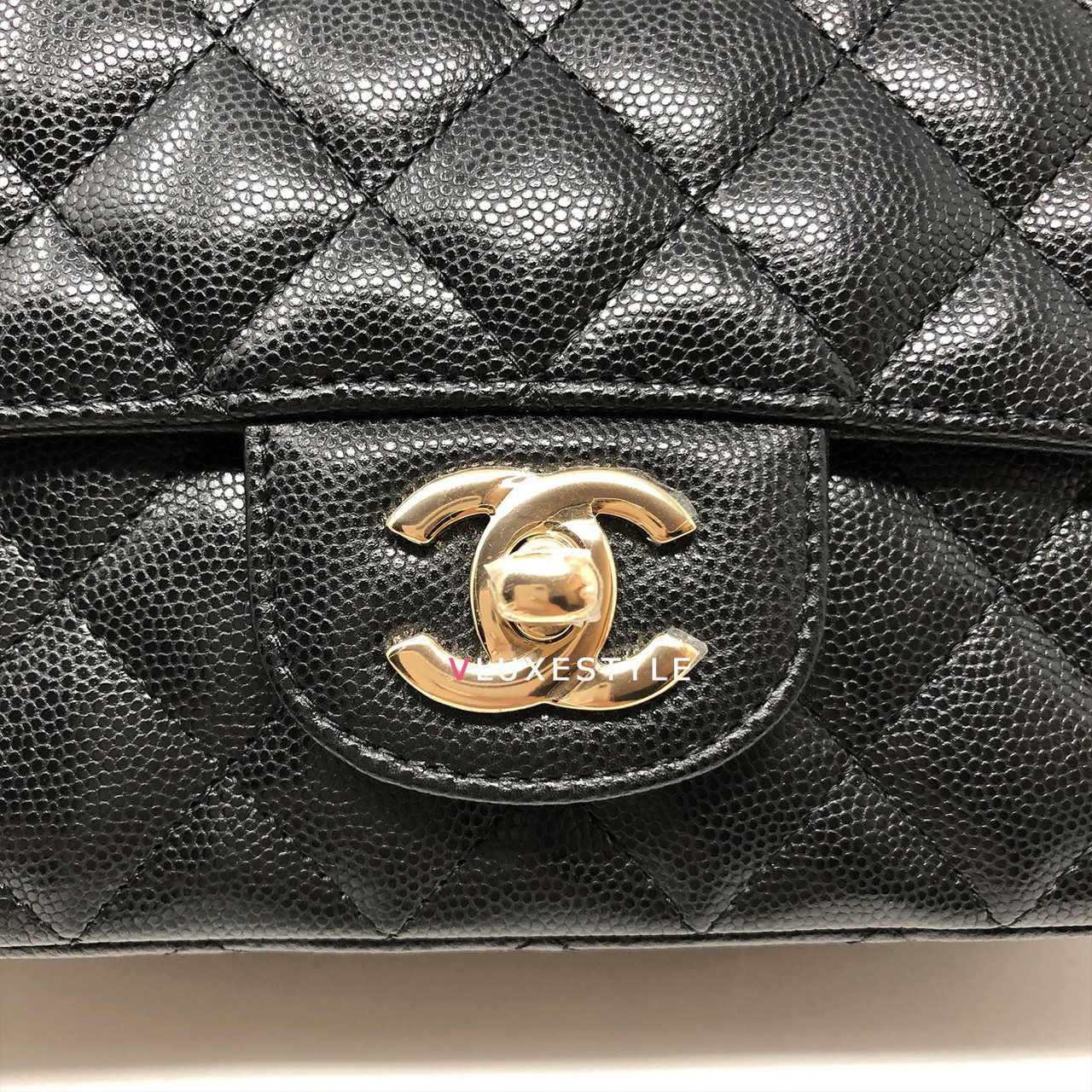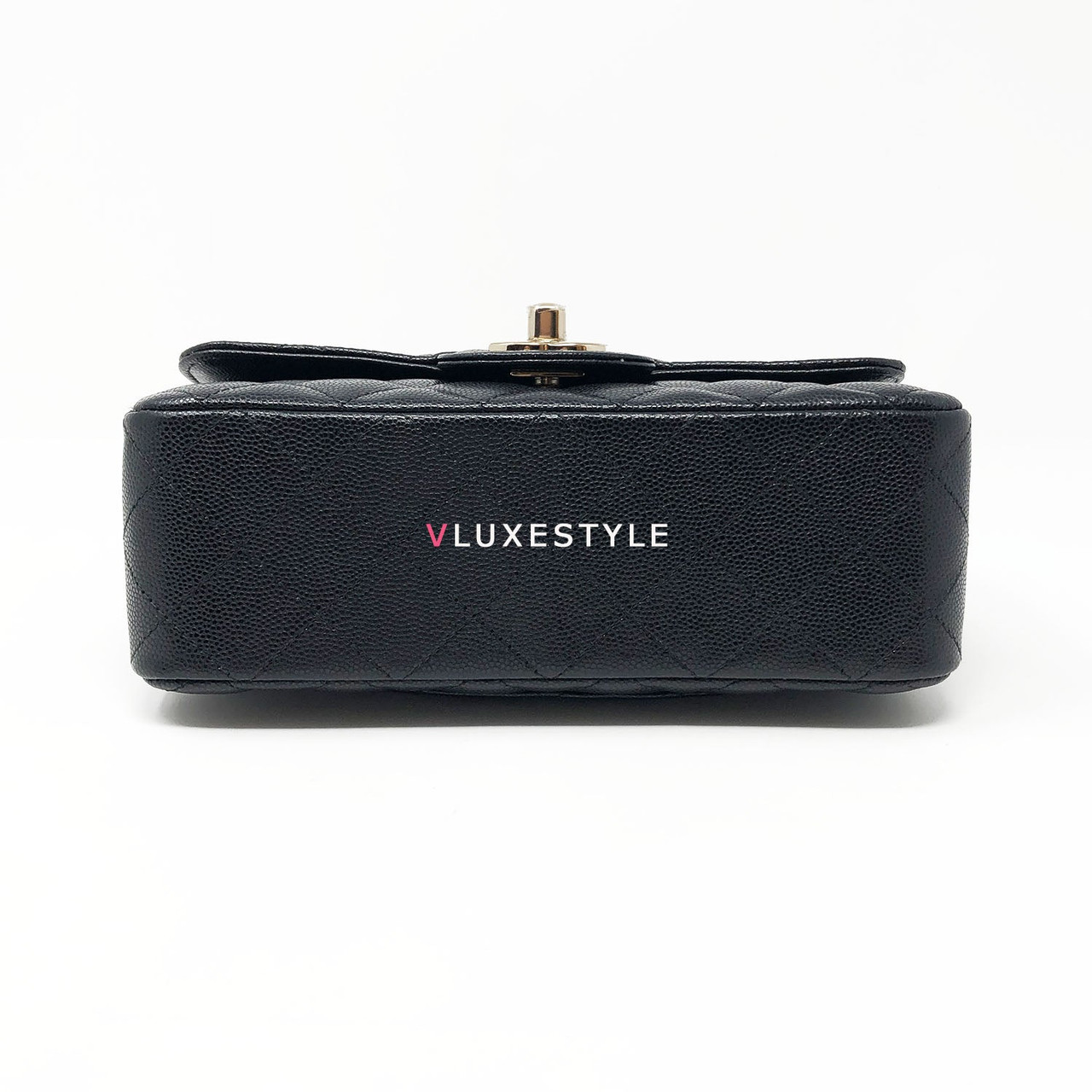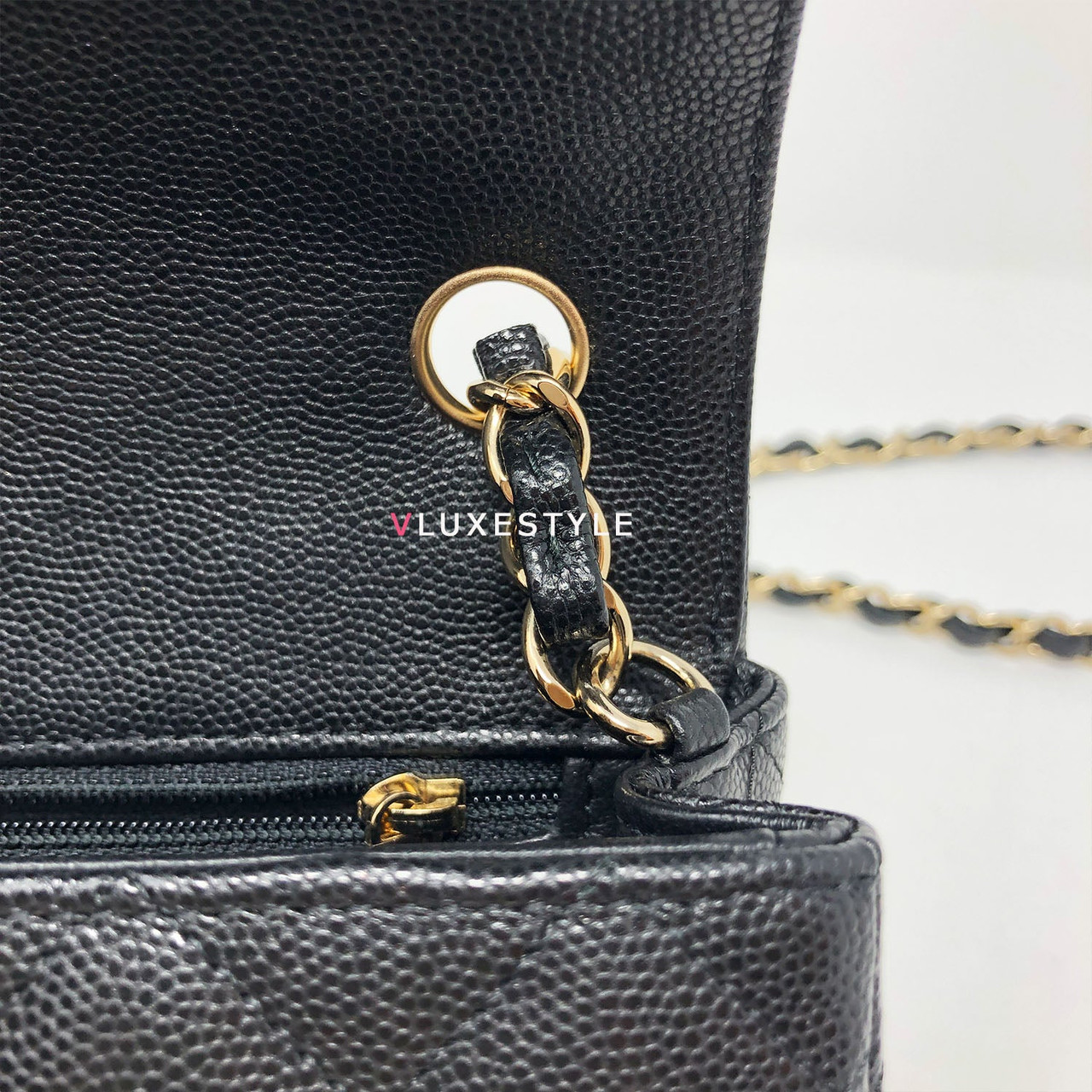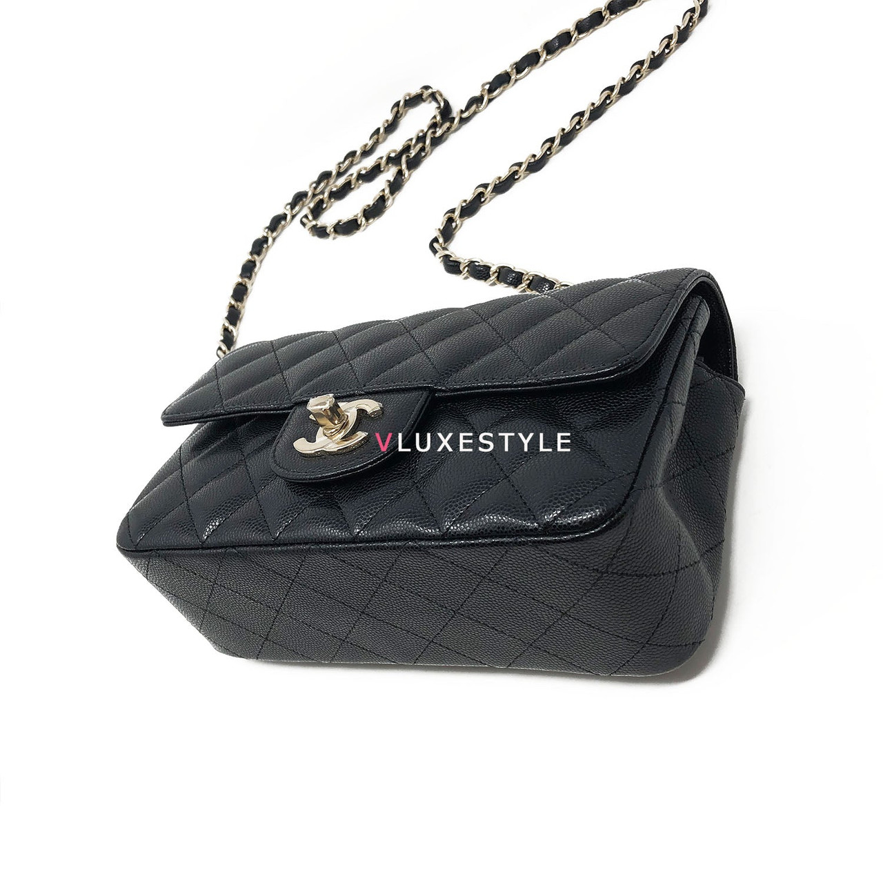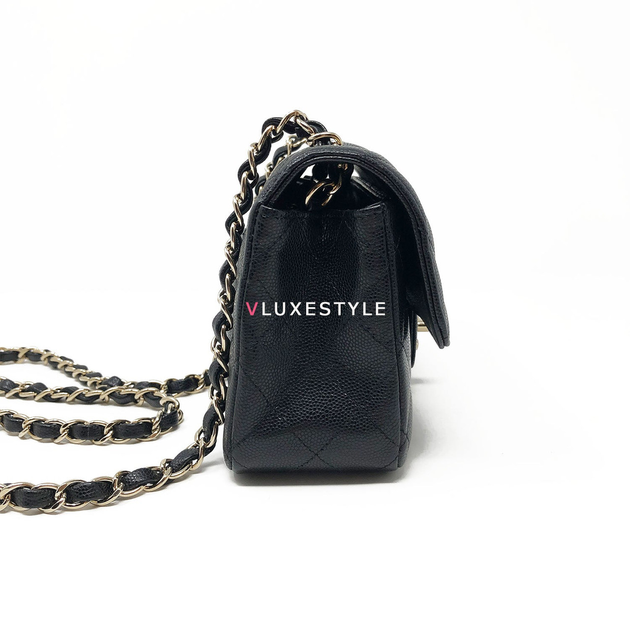 Very rare to find these days! Authentic Chanel Like New 17C Mini Rectangular Black Quilted Caviar with EDGE STITCHING. This stunning shoulder bag is crafted of luxurious and durable quilted caviar leather in black. This mini bag can be worn as a cross-body or over-the-shoulder bag. Last 2018 Chanel discontinued making minis in caviar until further notice.