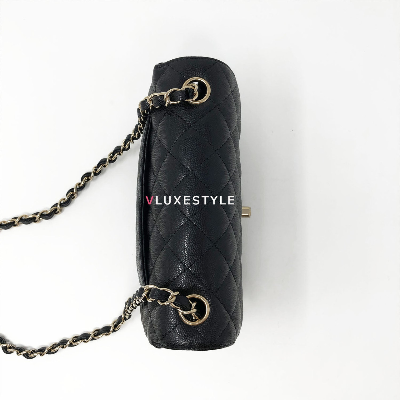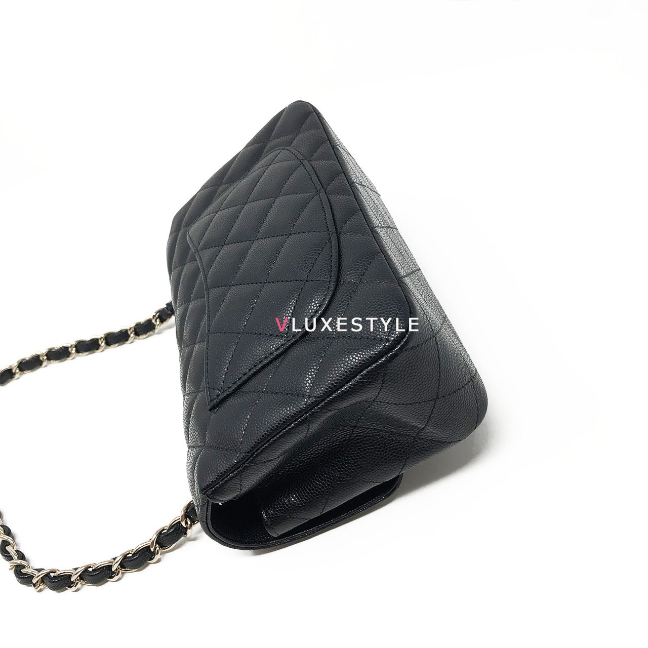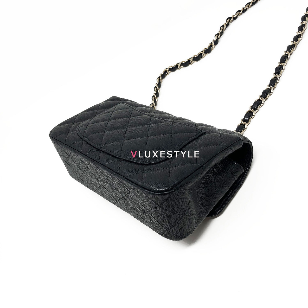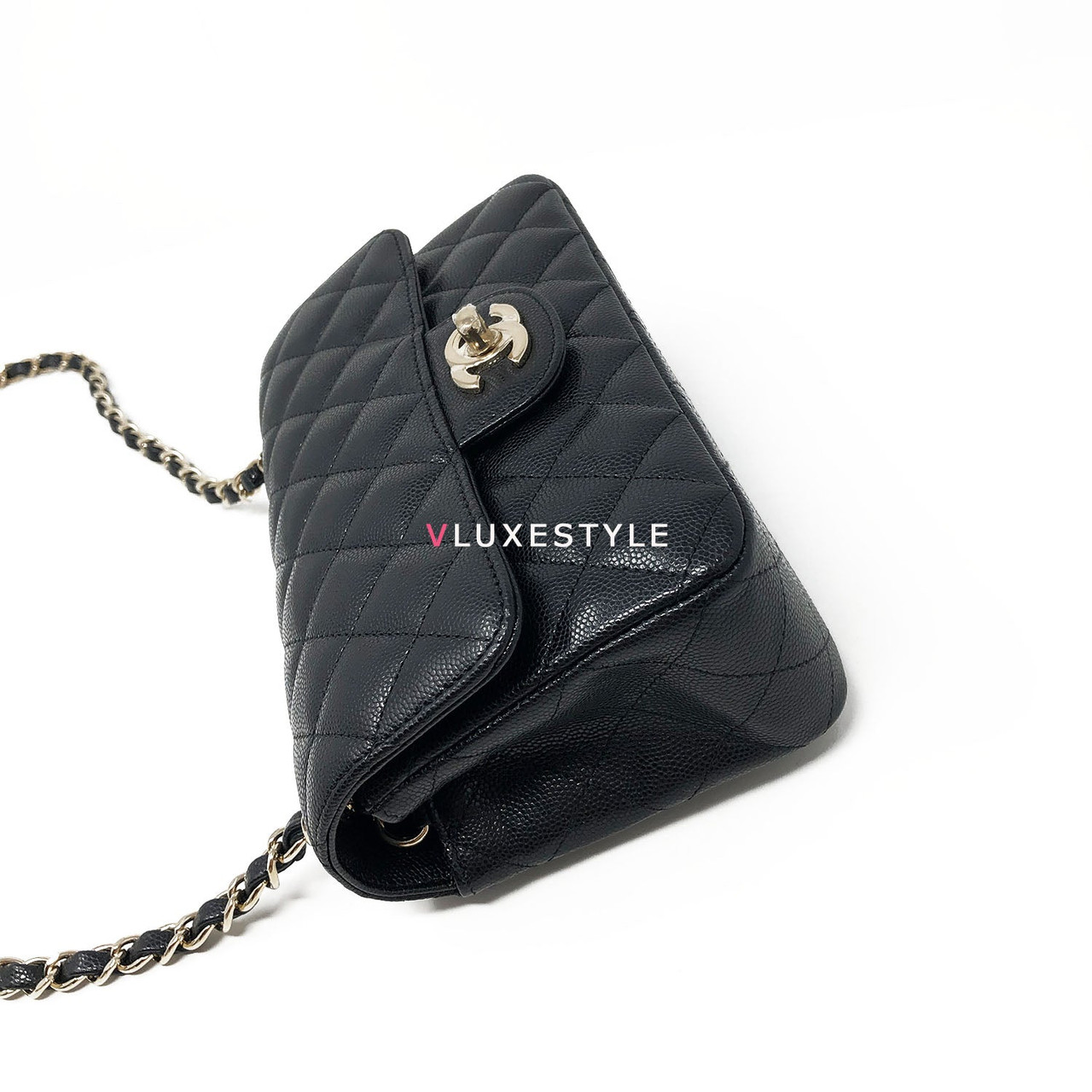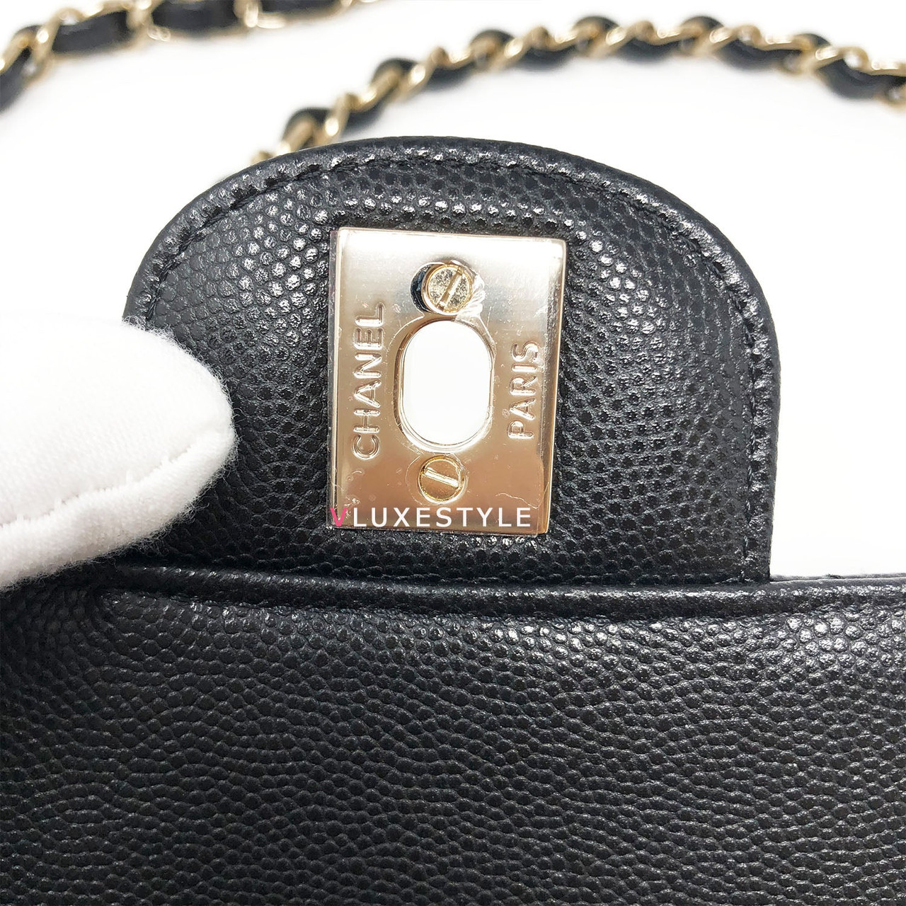 Very rare to find these days! Authentic Chanel Like New 17C Mini Rectangular Black Quilted Caviar with EDGE STITCHING. This stunning shoulder bag is crafted of luxurious and durable quilted caviar leather in black. This mini bag can be worn as a cross-body or over-the-shoulder bag. Last 2018 Chanel discontinued making minis in caviar until further notice.