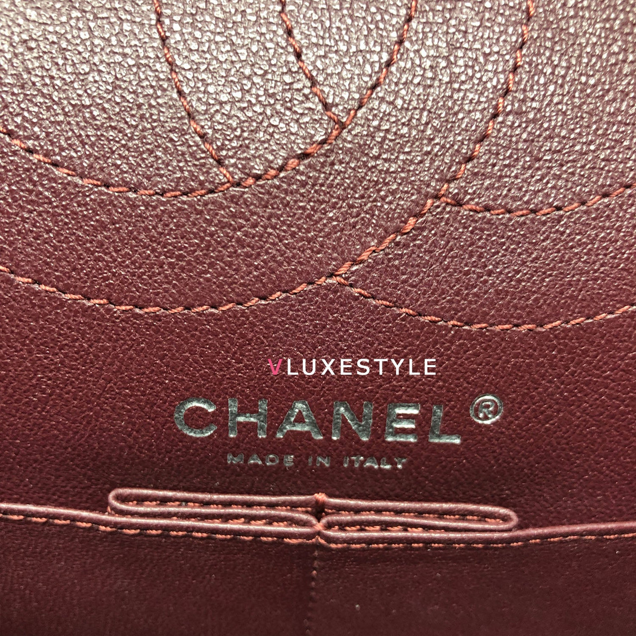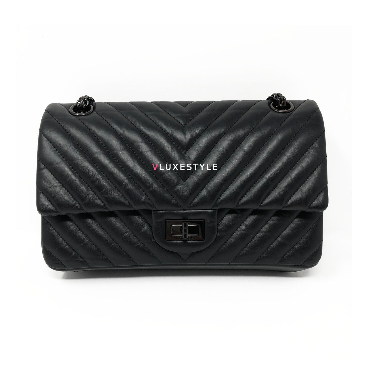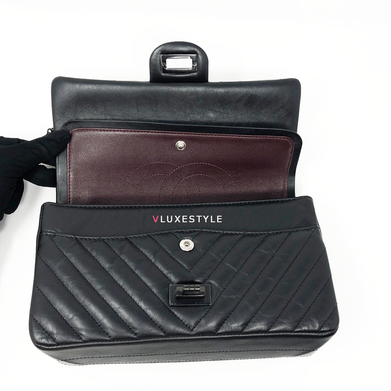 Very rare and very hard to find! LIKE NEW 17K Reissue Chevron So Black 225 with aged calfskin with BURGUNDY interior. Made in Italy/ 24 series/2017, protective sticker on the inside hardware still intact, like new to brand new condition. Strap drop: 21, 7Hx 9.5L x 3W