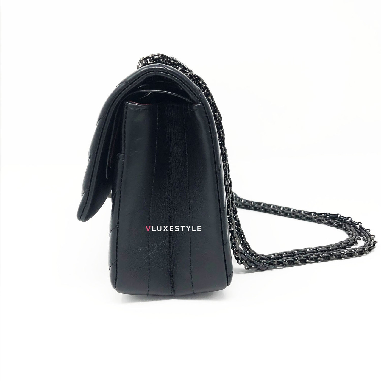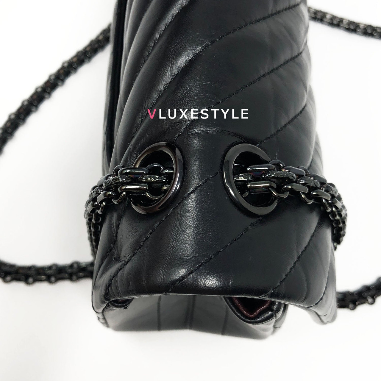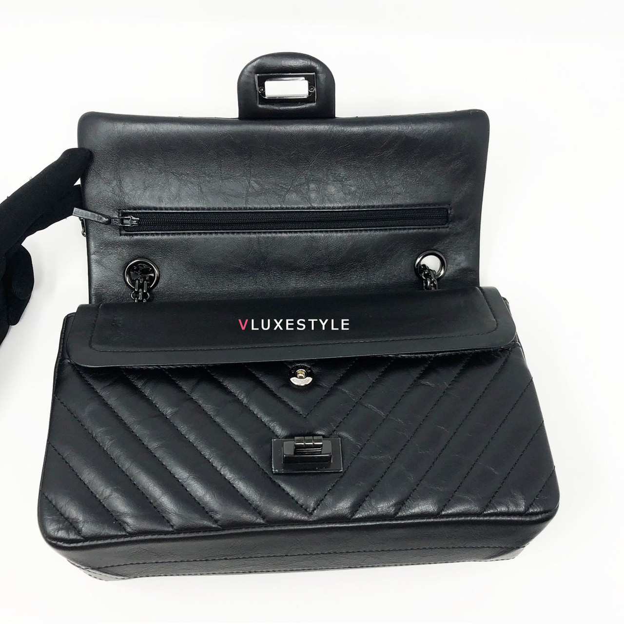 Very rare and very hard to find! LIKE NEW 17K Reissue Chevron So Black 225 with aged calfskin with BURGUNDY interior. Made in Italy/ 24 series/2017, protective sticker on the inside hardware still intact, like new to brand new condition. Strap drop: 21, 7Hx 9.5L x 3W