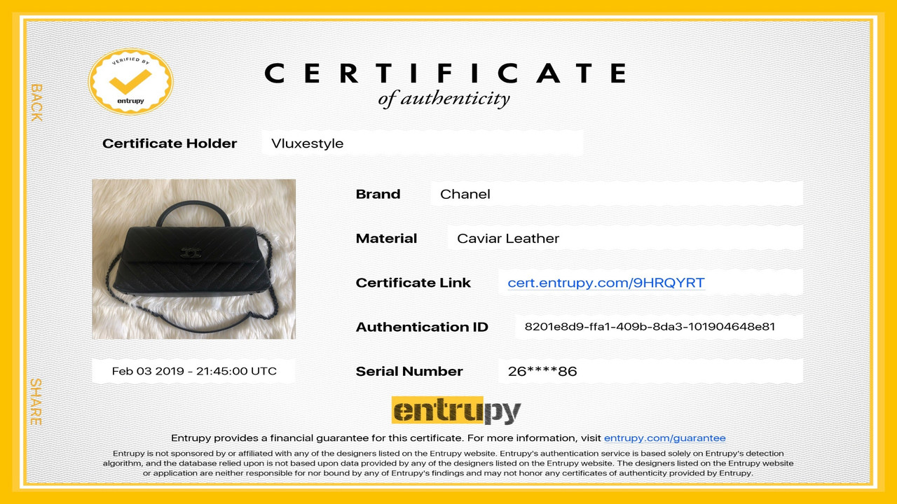 The bag comes with complete set, authenticity card, copy of receipt, dust bag, box, care booklet, lace, camellia with additional third party Authenticity Certificate from Entrupy.