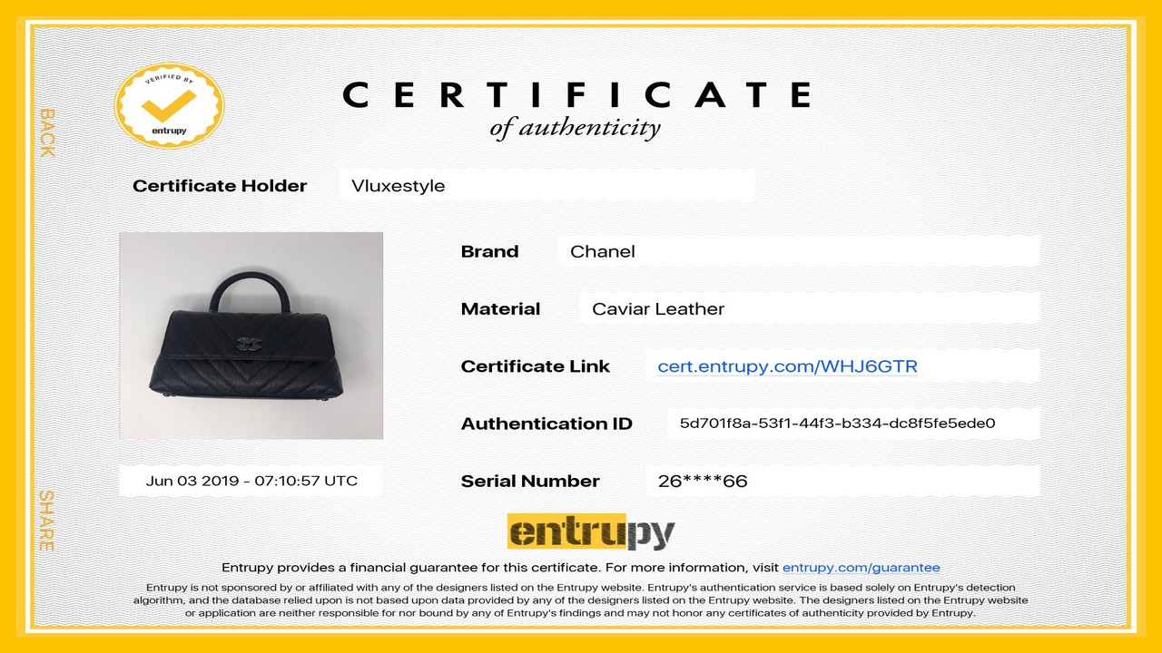 Comes with: Complete set with receipt, tags attached, authenticity card, receipt, dust bag, care booklet, felt, camellia, lace, and box with additional Entrupy Authenticity Certificate.