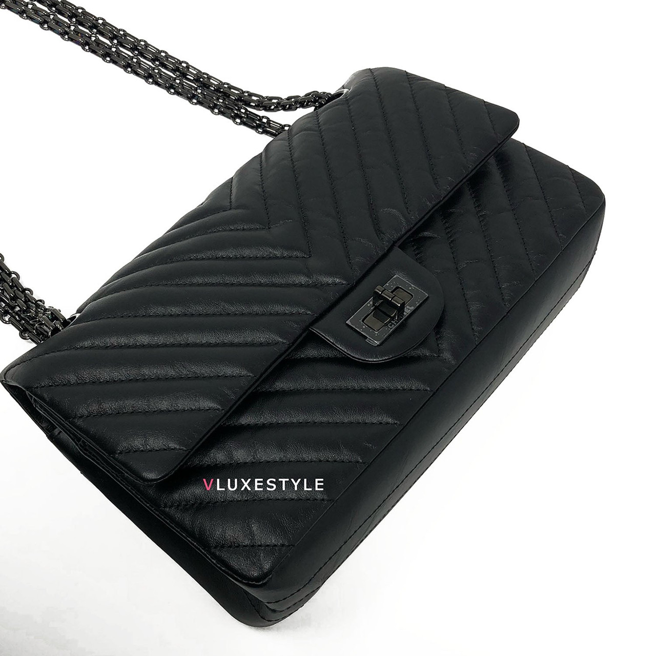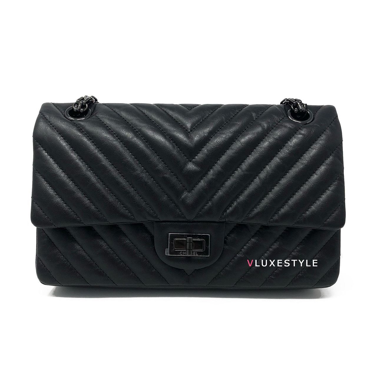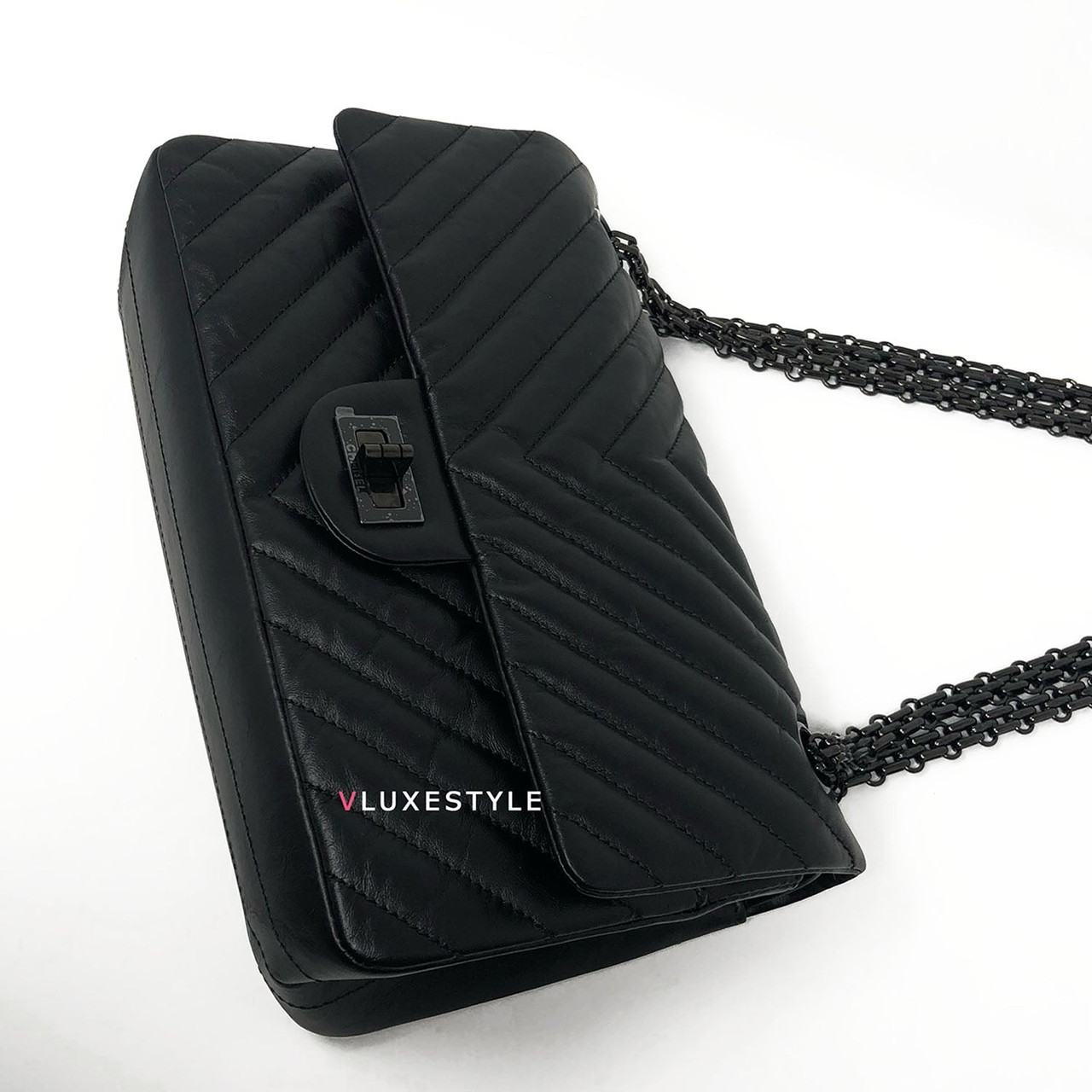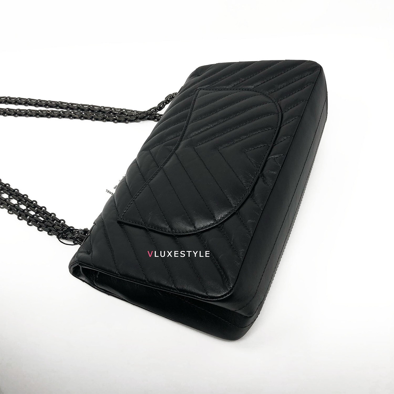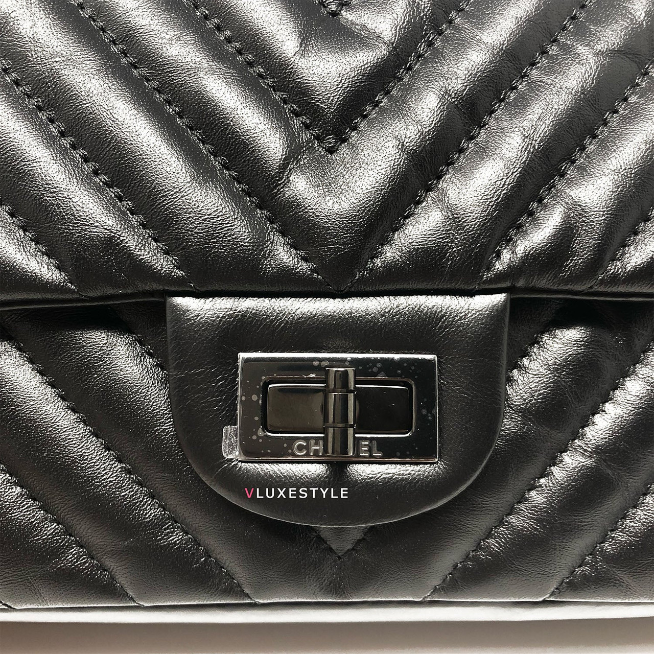 Just arrived! Boutique fresh/Brand new with tags and receipt! 18K Reissue Chevron So Black 225 Made in Italy/26 series/Nov 2018. The bag comes full set with receipt! box, authenticity card, receipt, dust bag, care booklet, camelia and lace