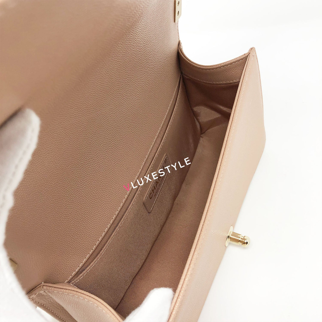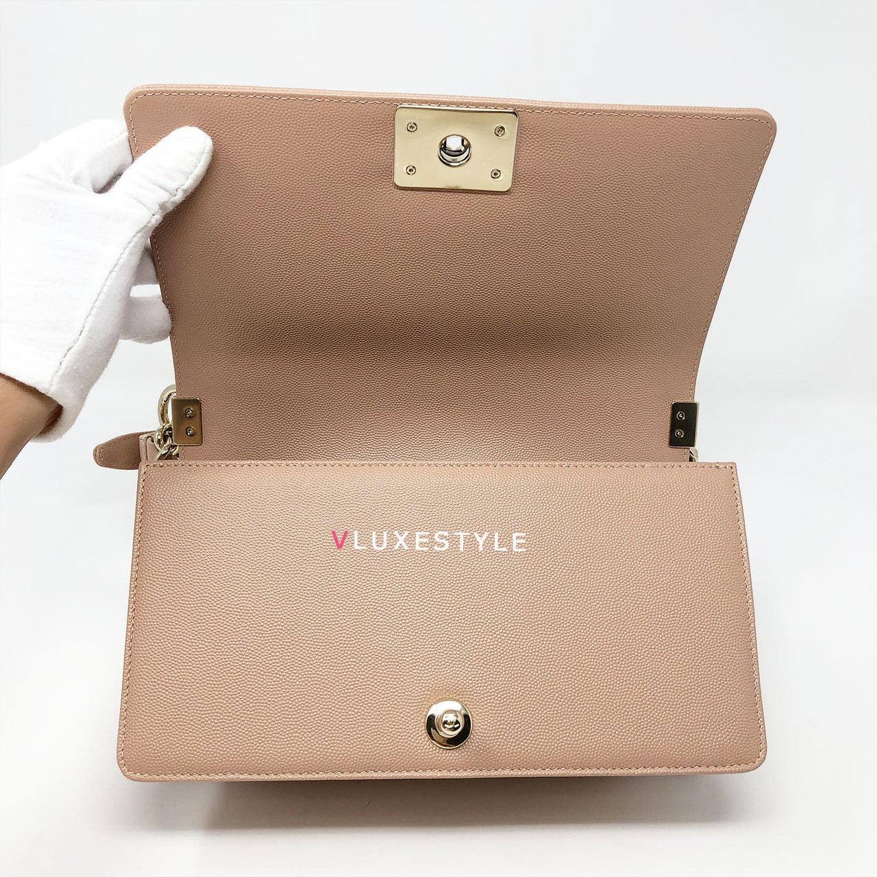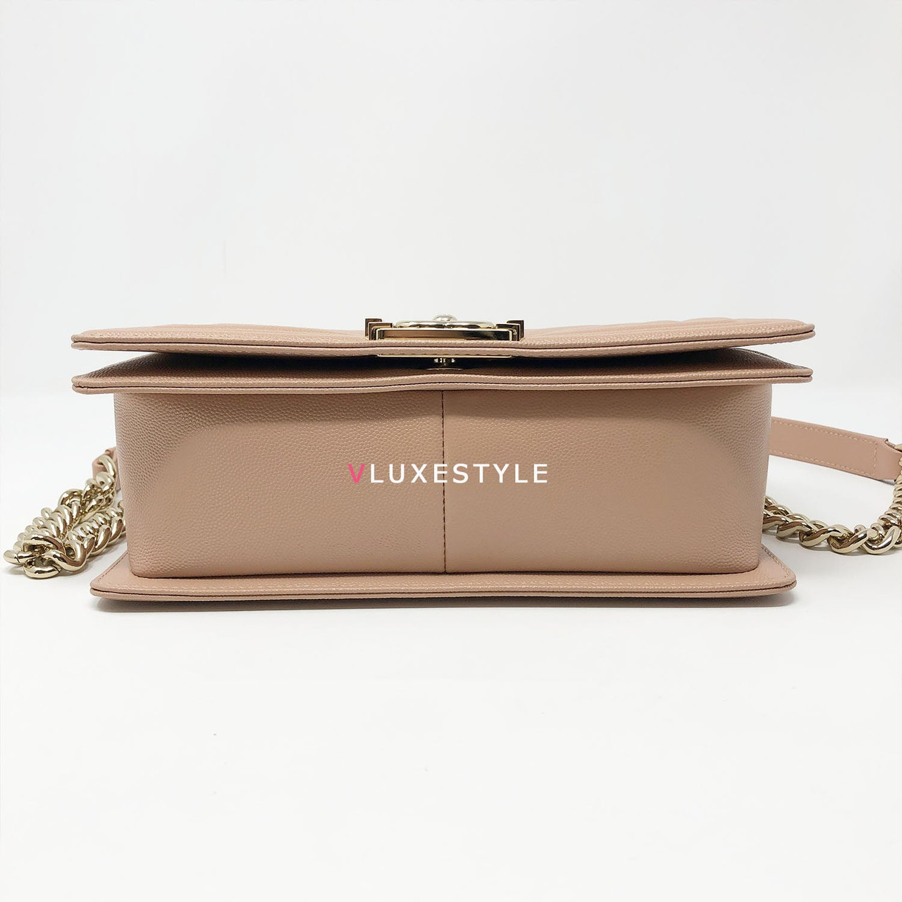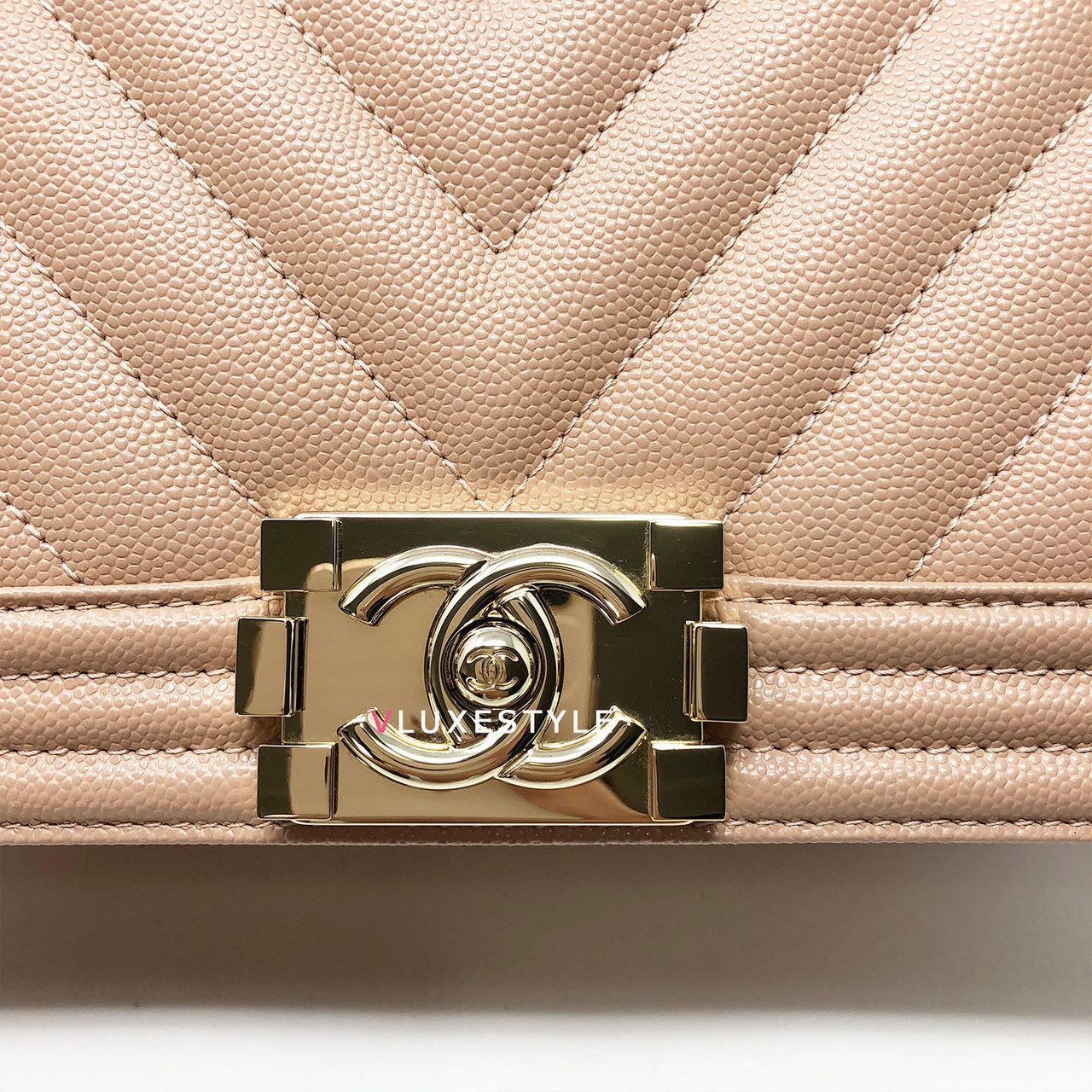 A very rare and highly sought-after combination! Authentic 18S Le Boy Old Medium Nude Blush Pink Chevron Caviar with light gold hardware. This stylish shoulder bag is crafted of luxurious and durable caviar leather in a gorgeous nude blush pink in an ultra-rare chevron pattern and light gold hardware. The bag can be worn long and short over-the-shoulder bag and crossbody. It's absolutely beautiful it's the perfect bag for every occasion.